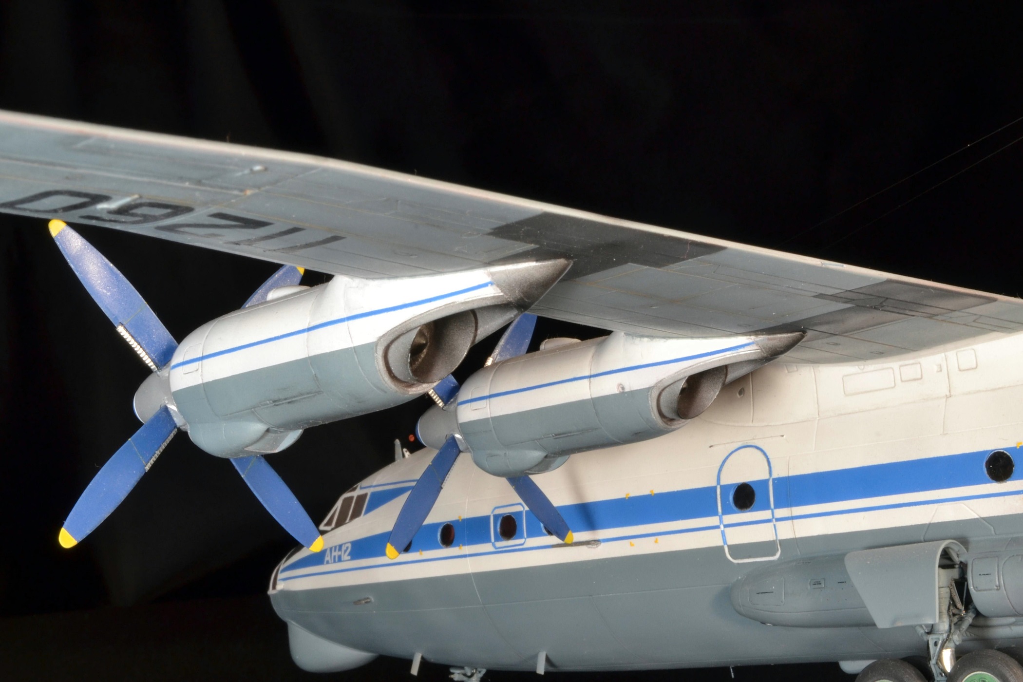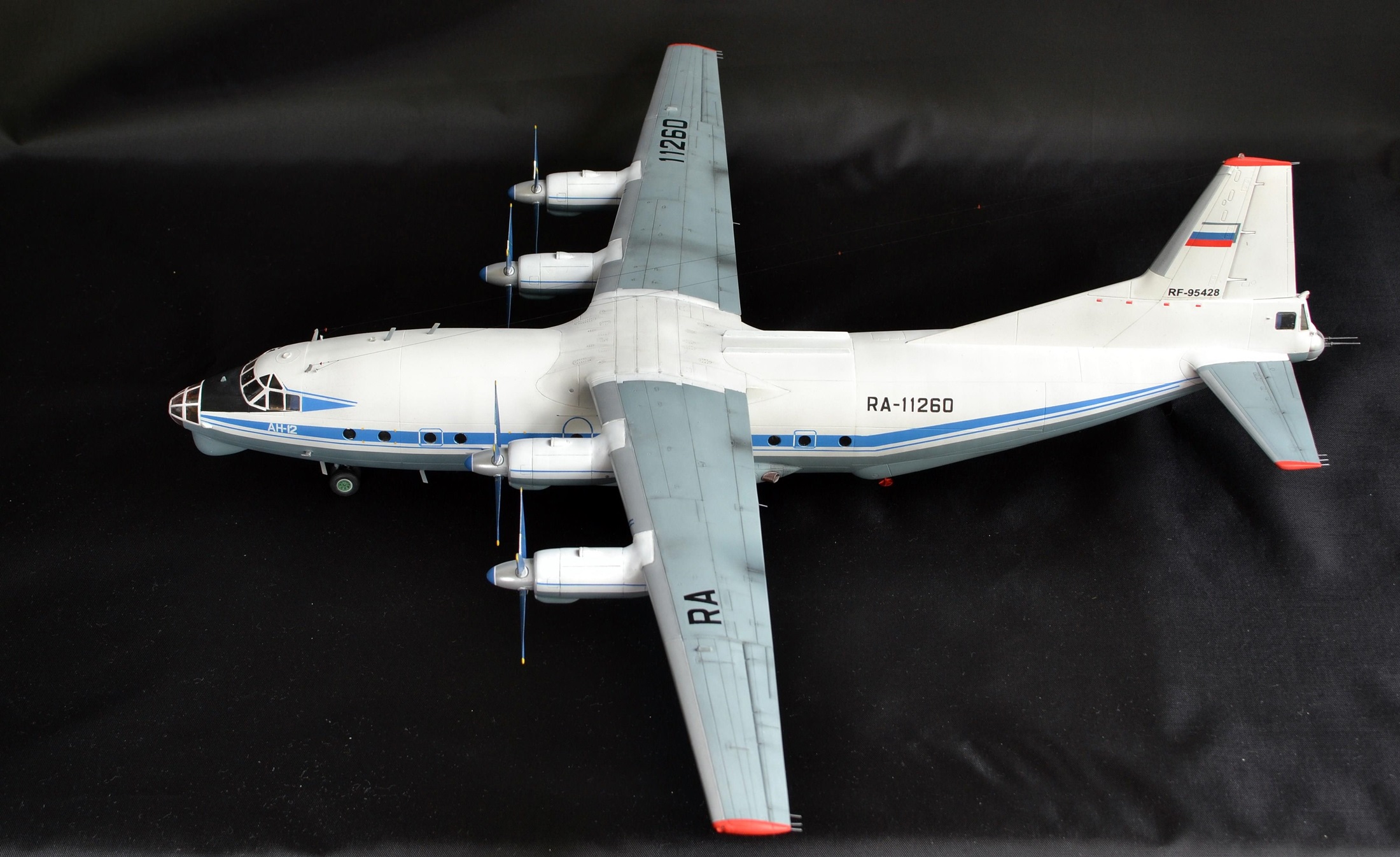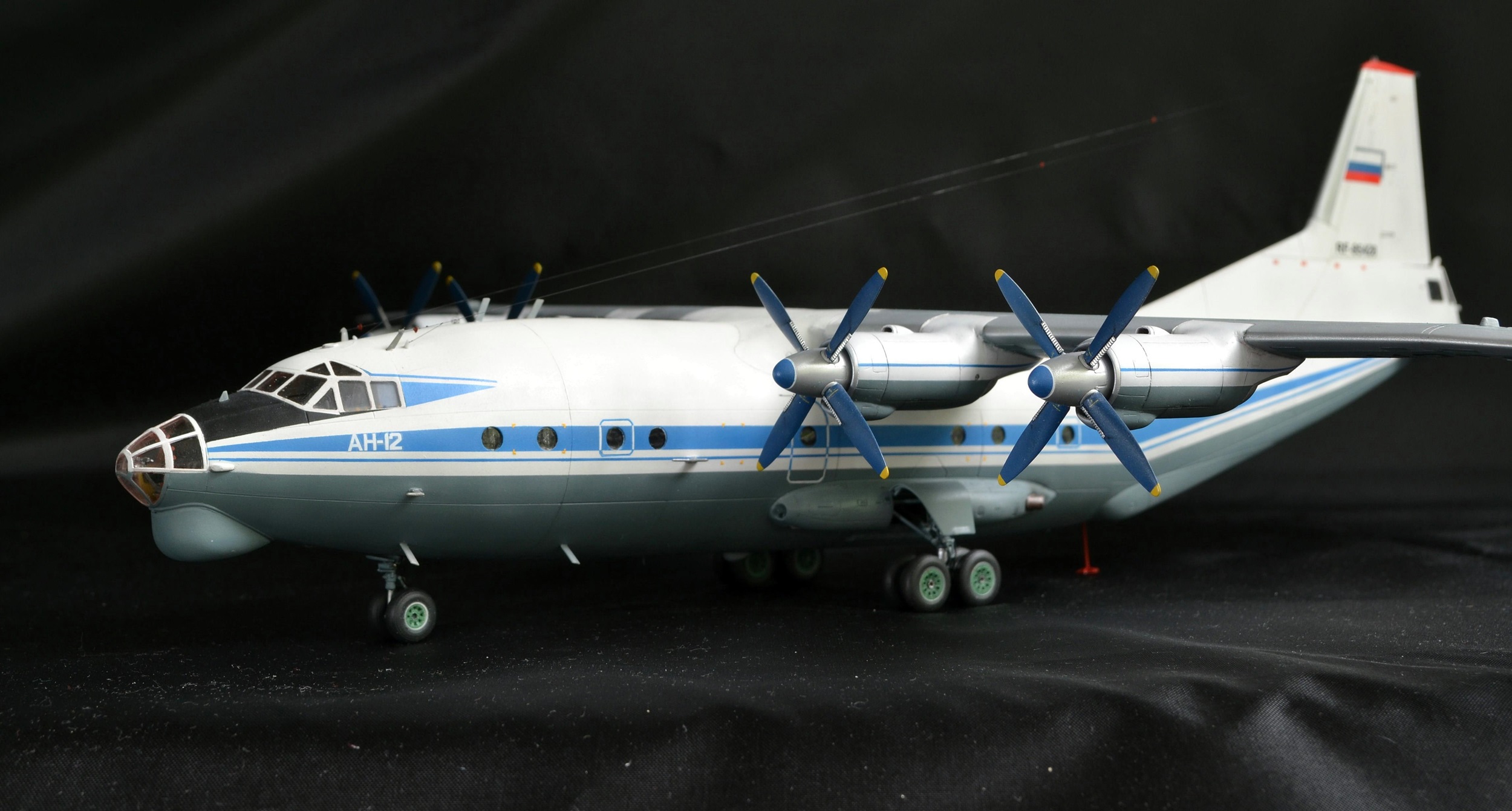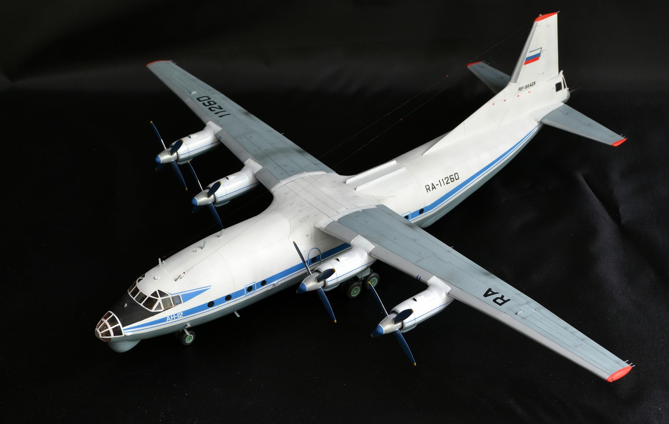 Прекрасно!Вот так нужно собирать Ан-12.Единственное,это переход двигателей на крыло сверху(белая часть)должна быть не под углом.а по линии расшивки.