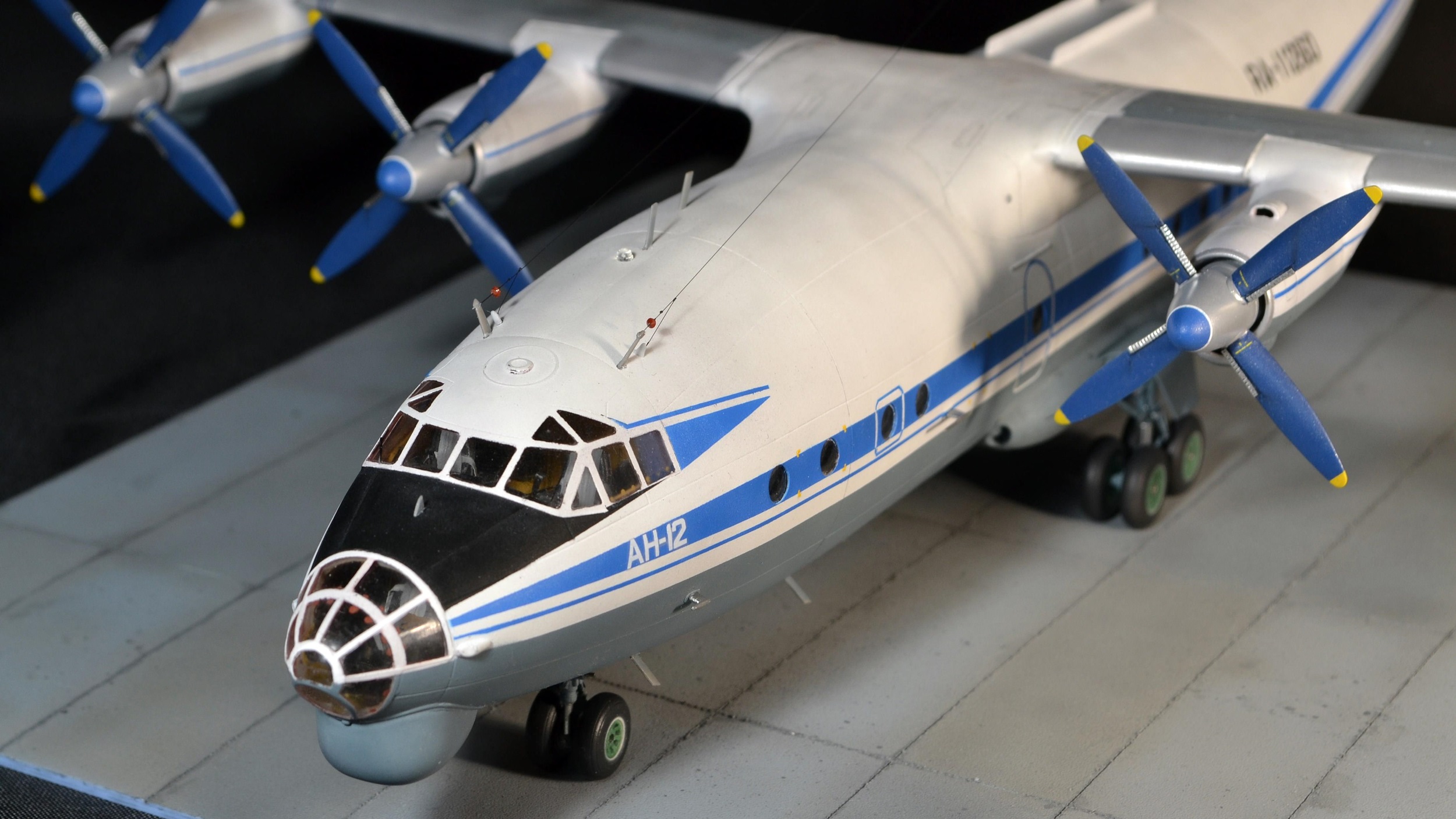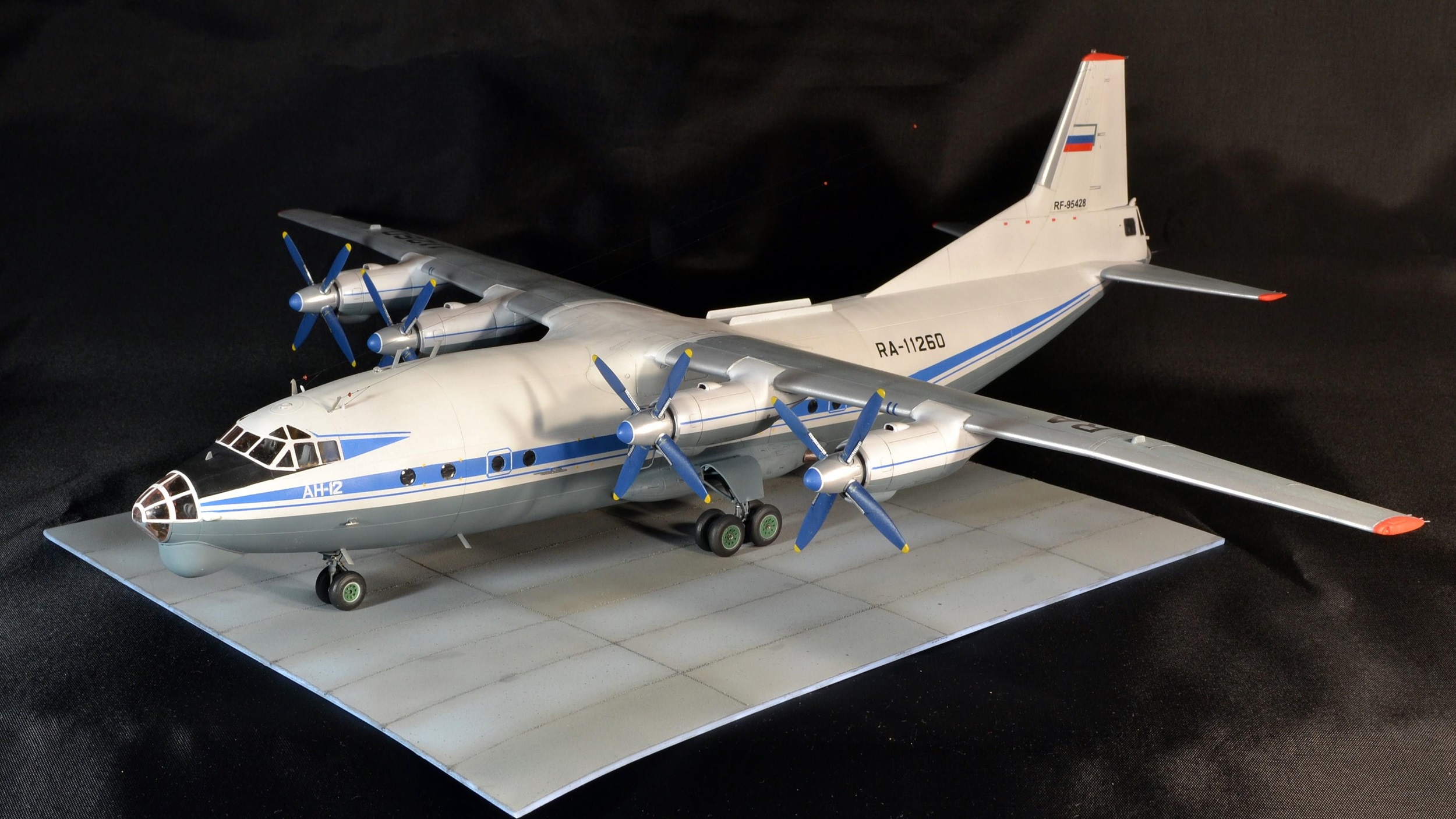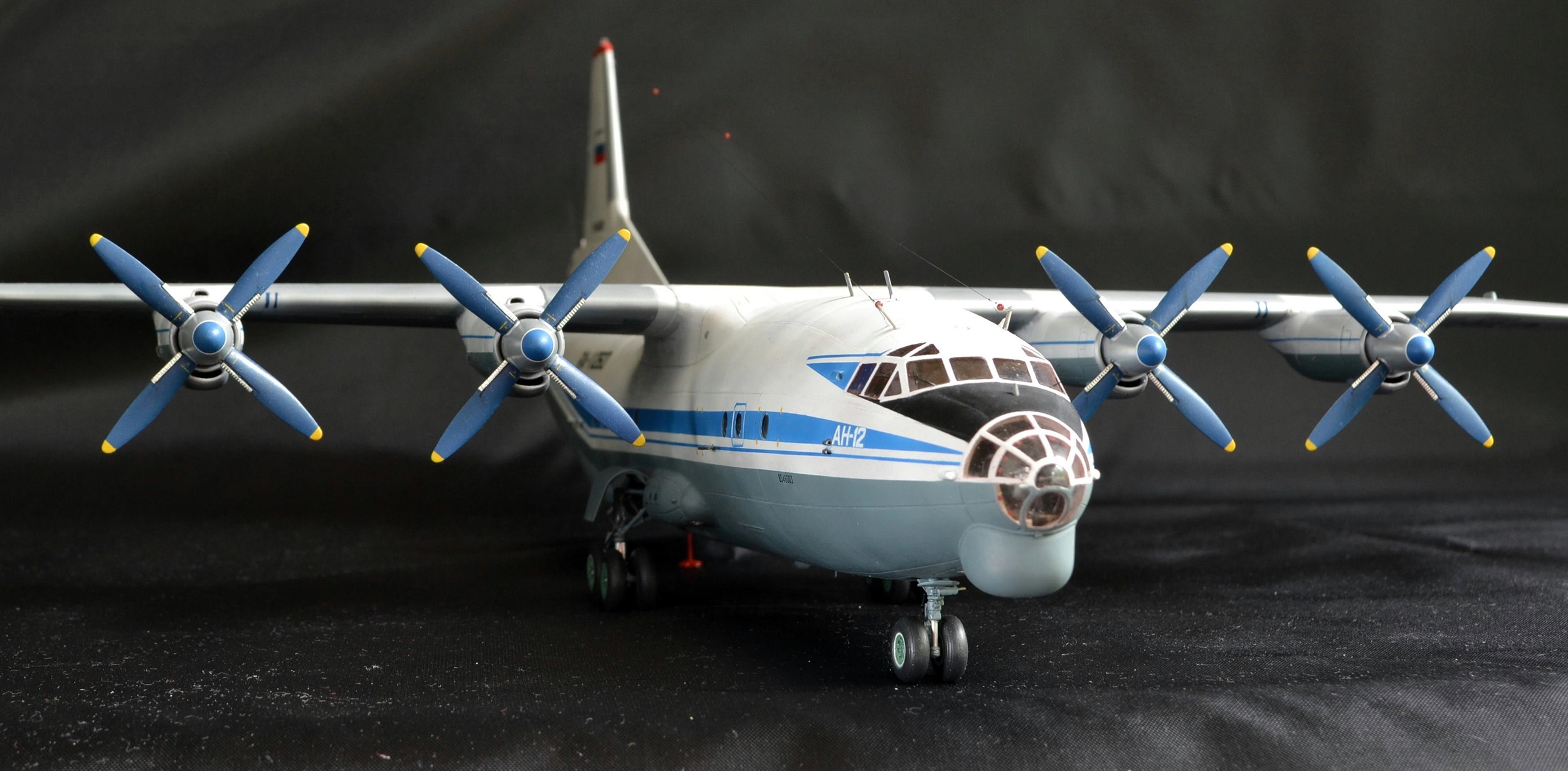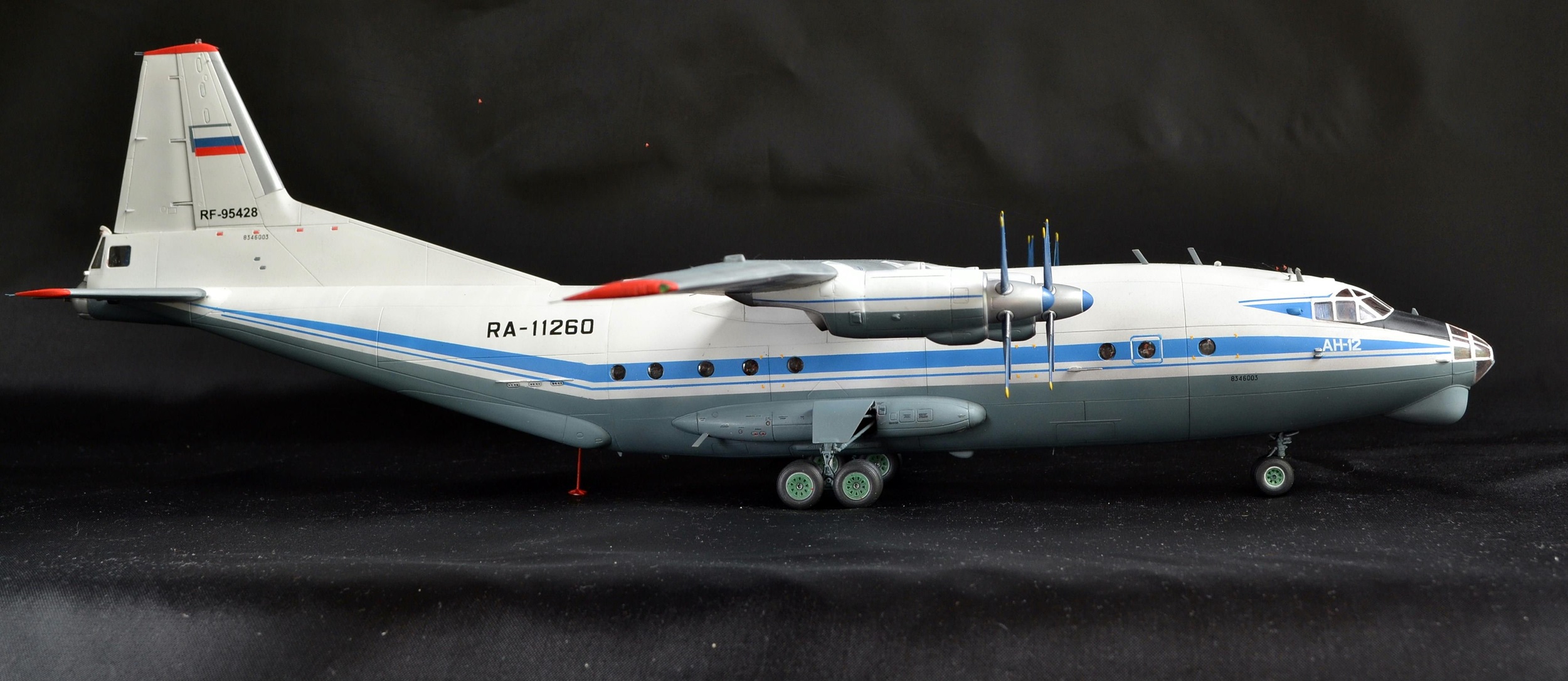 Прекрасно!Вот так нужно собирать Ан-12.Единственное,это переход двигателей на крыло сверху(белая часть)должна быть не под углом.а по линии расшивки.