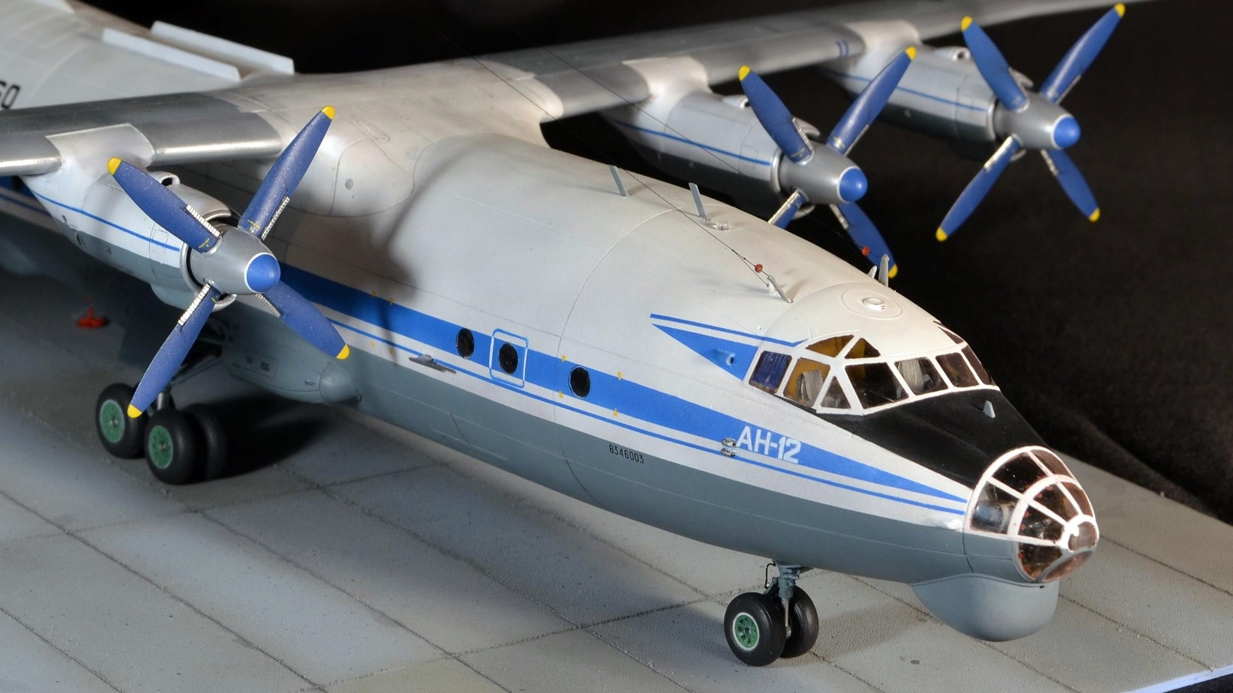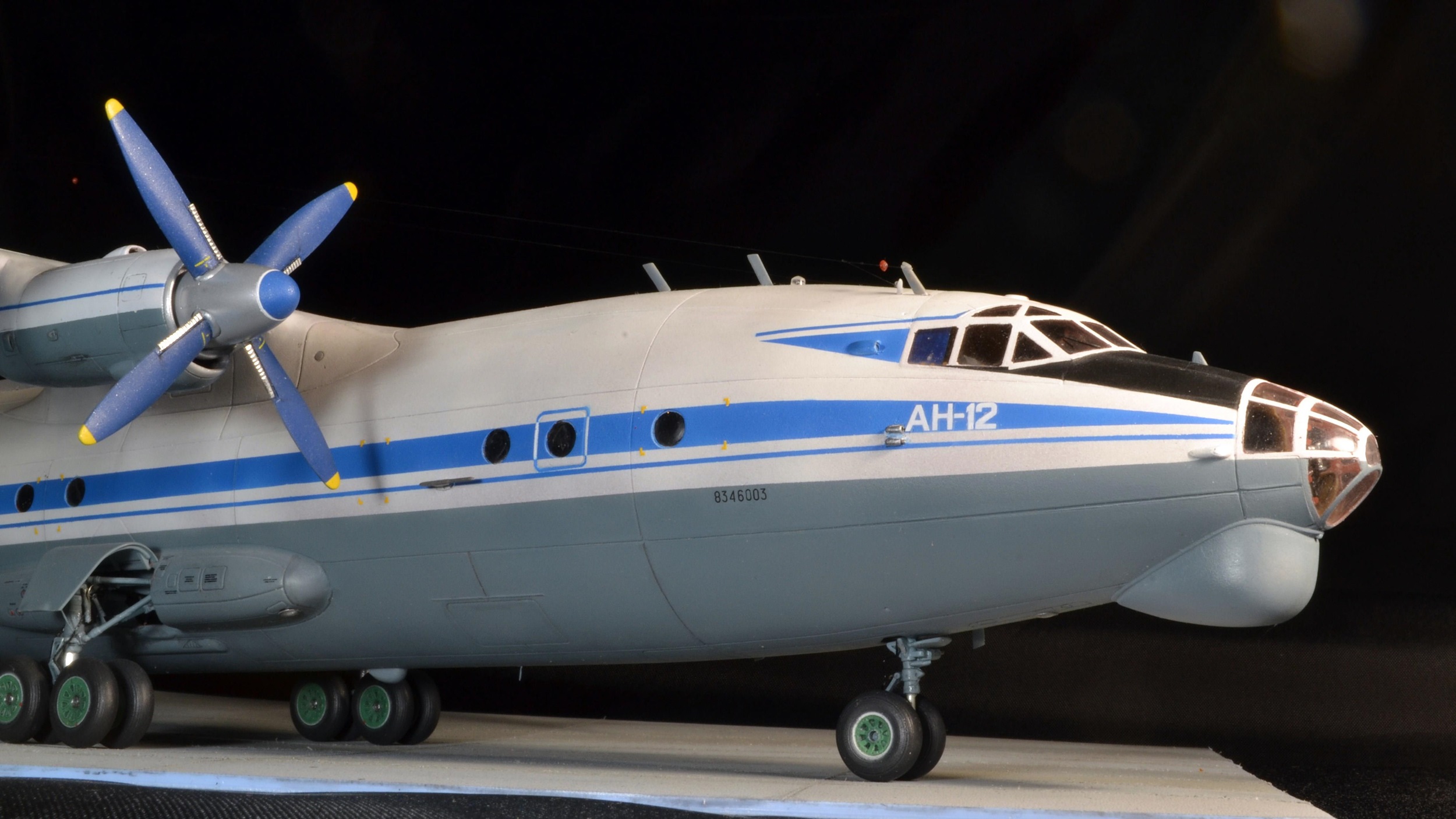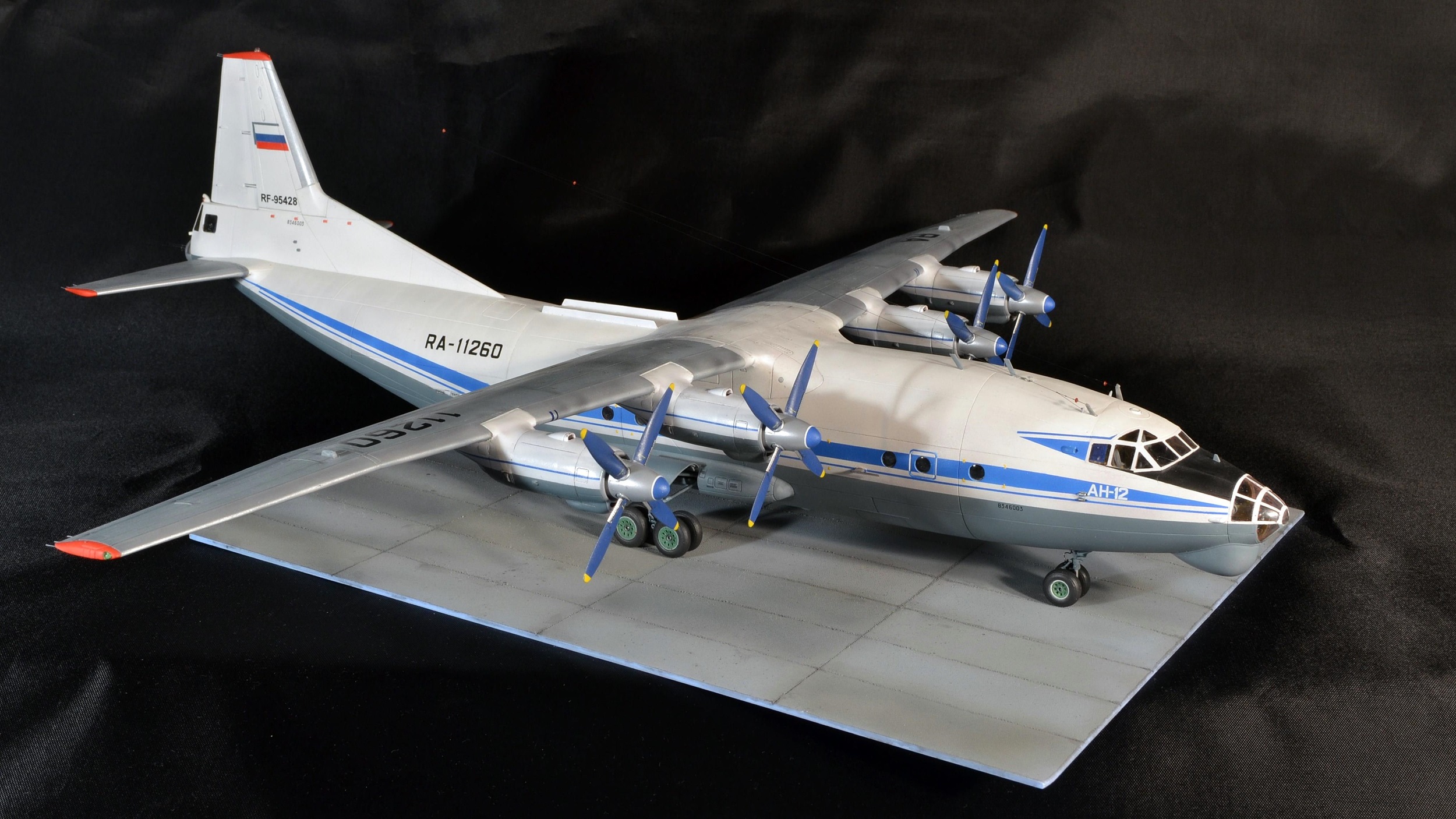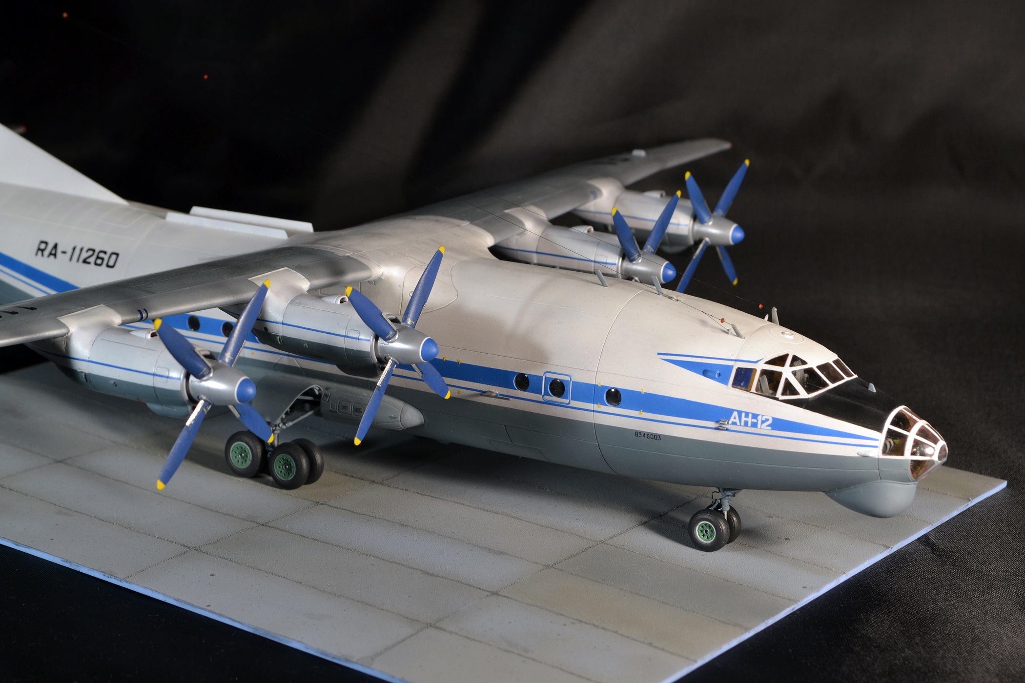 Прекрасно!Вот так нужно собирать Ан-12.Единственное,это переход двигателей на крыло сверху(белая часть)должна быть не под углом.а по линии расшивки.