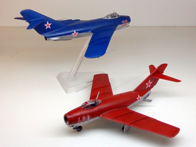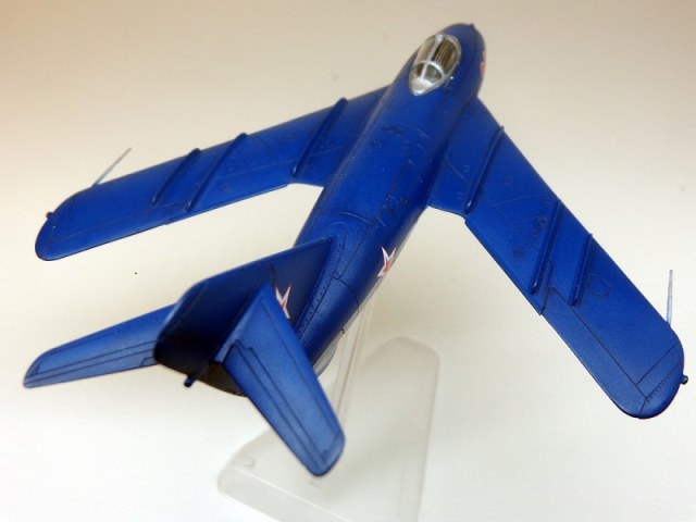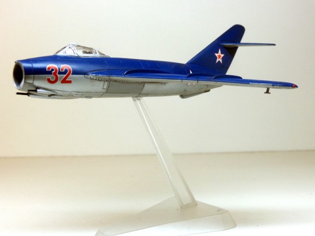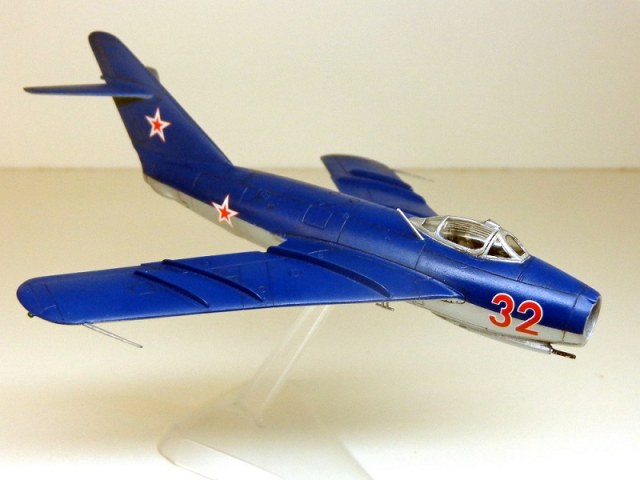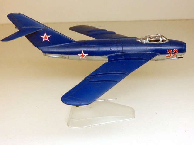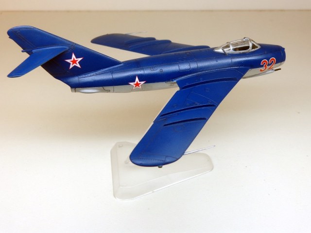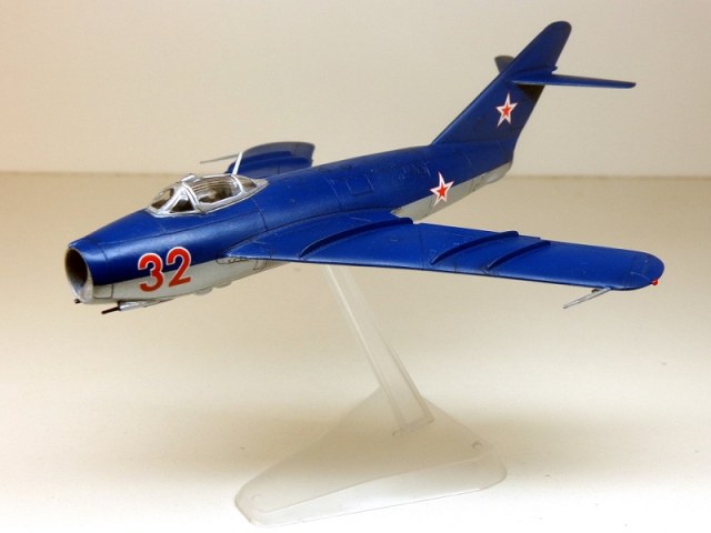 Появлению этой модели в ассортименте нашей Звезды поначалу обрадовался. Но столкнувшись подробнее при сборке, был разочарован и раздражён долгой возней со шпаклёвкой и проч. Хотя всё-таки не выбросил, достроил. Продолжая тему наших пилотажников, выбрал в качестве прототипа "борт" из состава 234-го ГИАП, раскрашенного в синий цвет для участия во "встречном пилотаже" двух звеньев "семнадцатых" (этот вариант подсмотрел в книге С.Исаева). Модель "грешит" некоторыми несоответствиями в матчасти, да и не относится к разряду первоклассно исполненных, за что извиняюсь, просто хотелось всё же её видеть в своей персональной галерее.