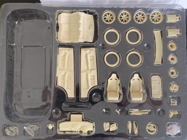 Саму Субару в текущем кузове VAB никто из массовых производителей не делает, поэтому когда увидел такой кит, прям вцепился. Я как понимаю, это смола, но сделанная как полноценный кит - с фототравлением, уже вырезанными стёклами с накрашенными уплотнителями. Даются металлические оси колёс, верх и низ модели предлагается собирать между собой на винтах, в общем очень похоже на классические коллекционные металлические модели.