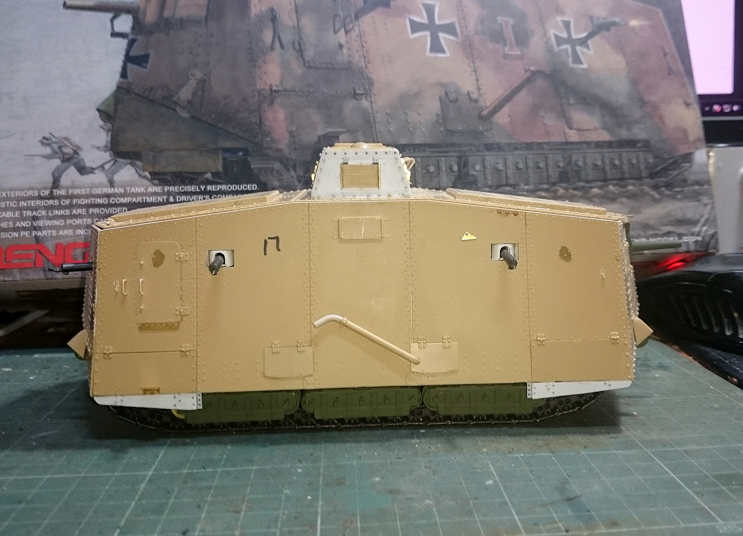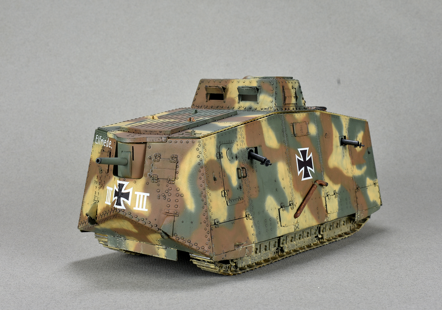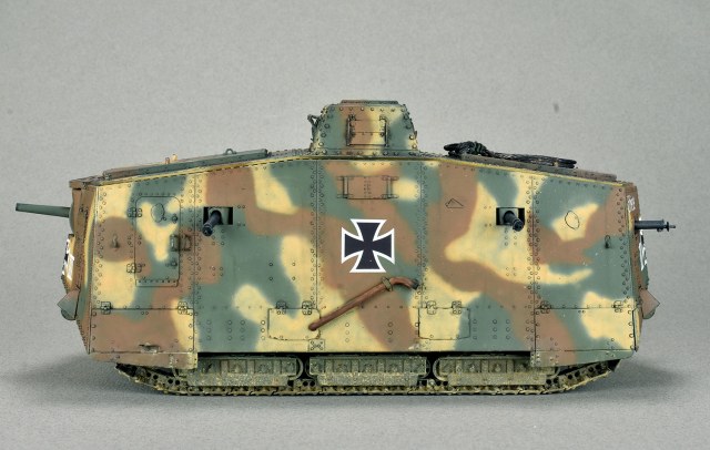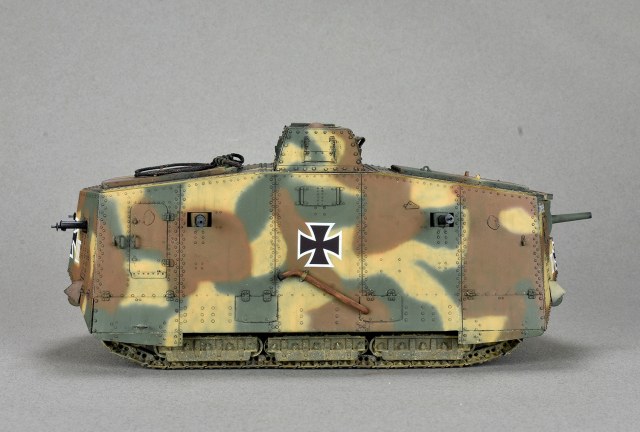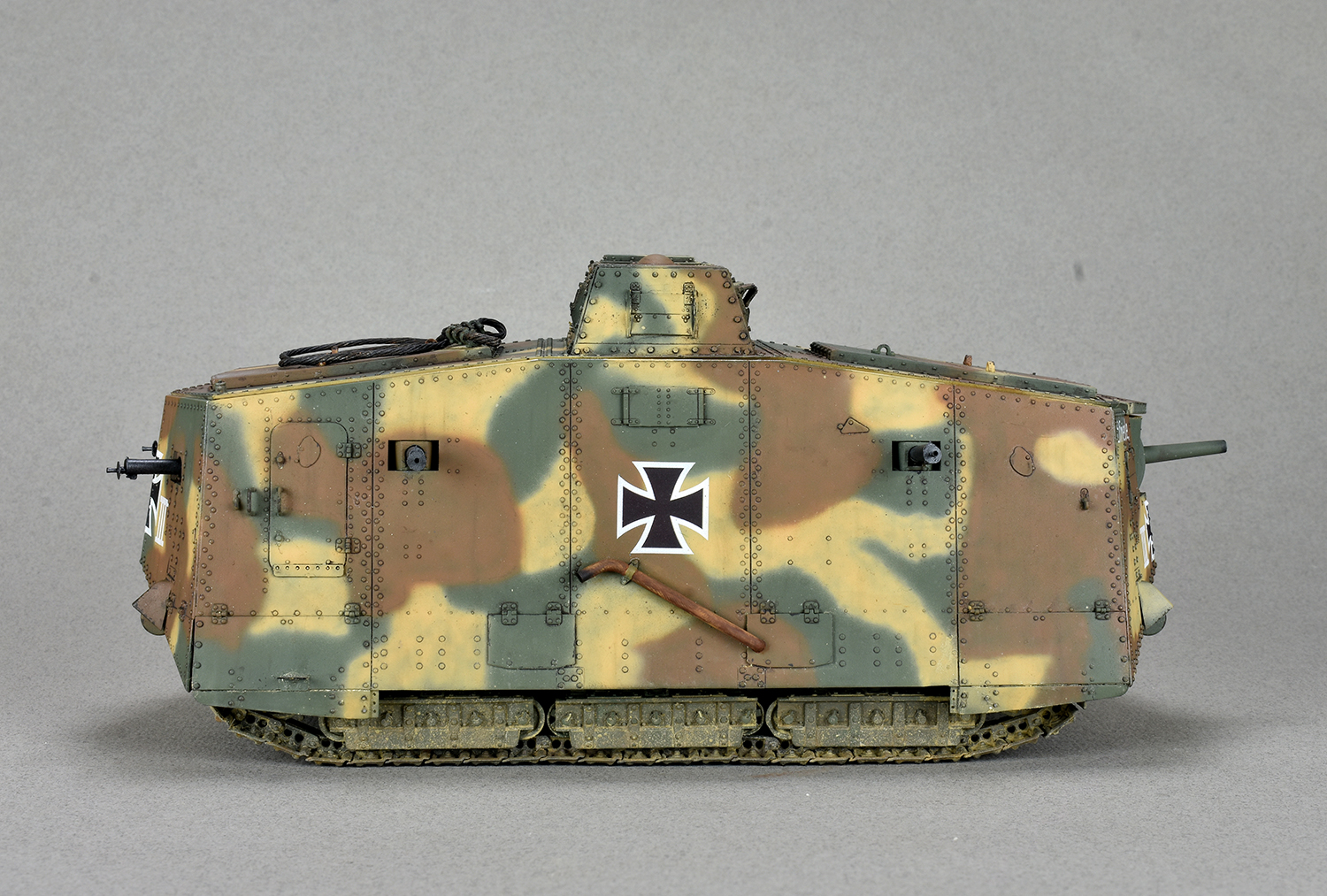 У вас отличная работа получилась, А7V выглядит очень приятно. Камуфляж прям то что надо, не пёстрый, но и не блеклый! Нутро, конечно, не всё можно разглядеть, но тоже не плохо. Так же не хочу делать Шнюк, думаю, какой прототип выбрать. Буду поглядывать на вашу работу)