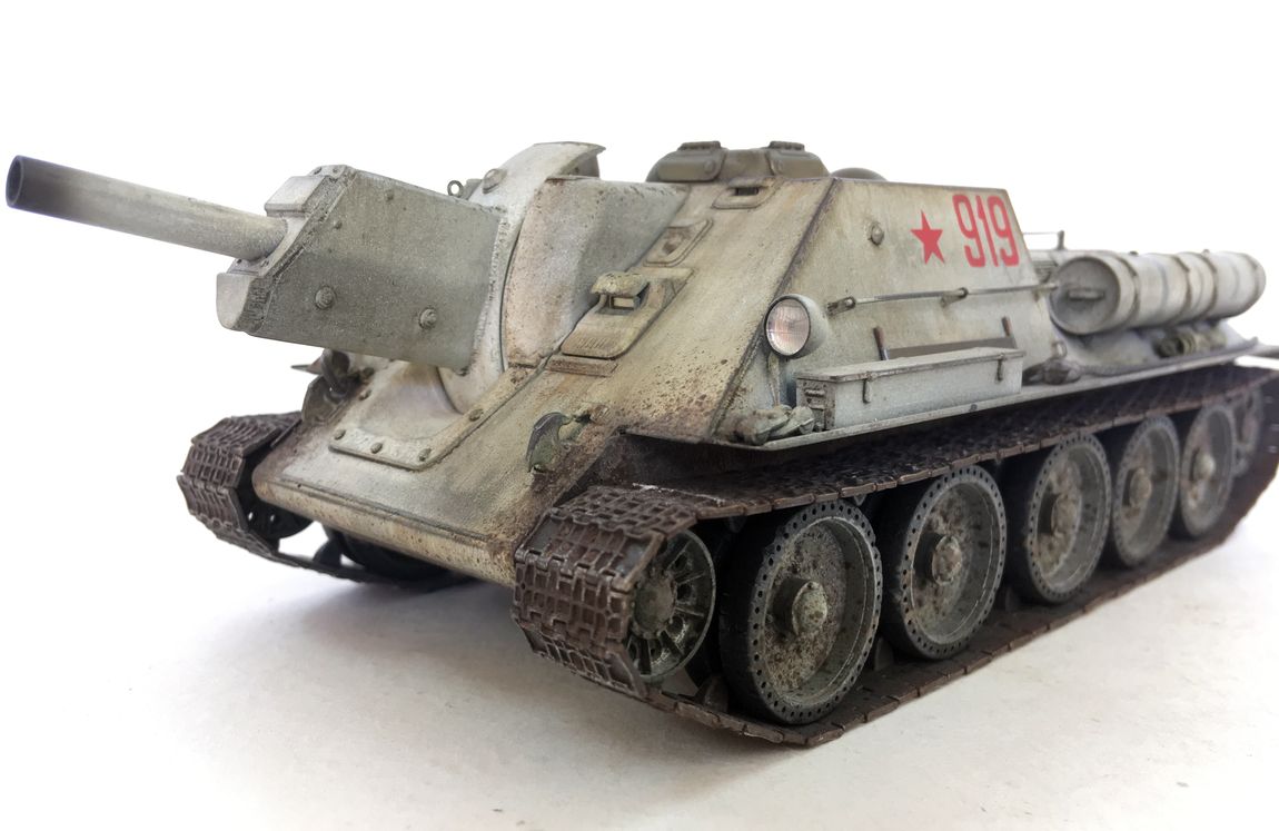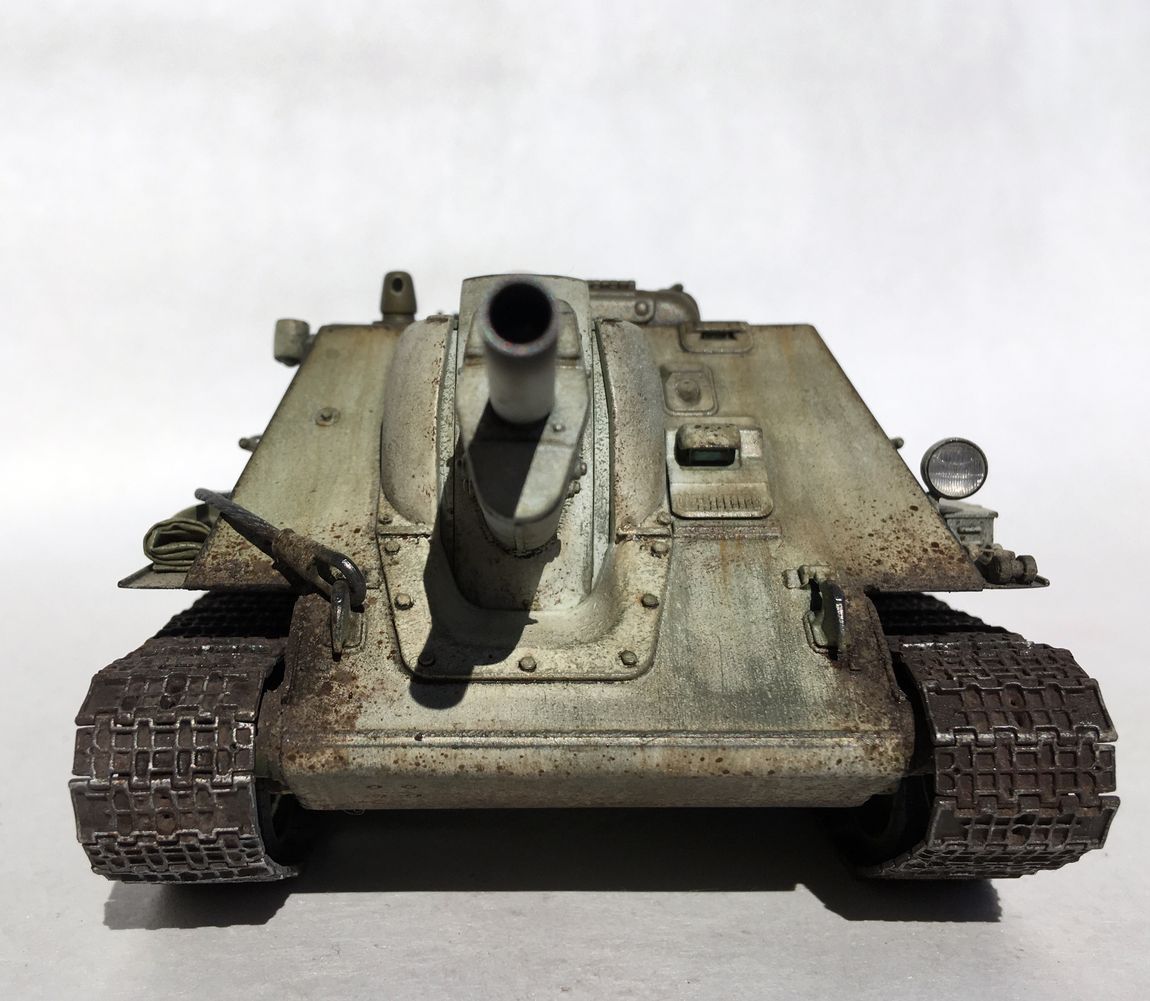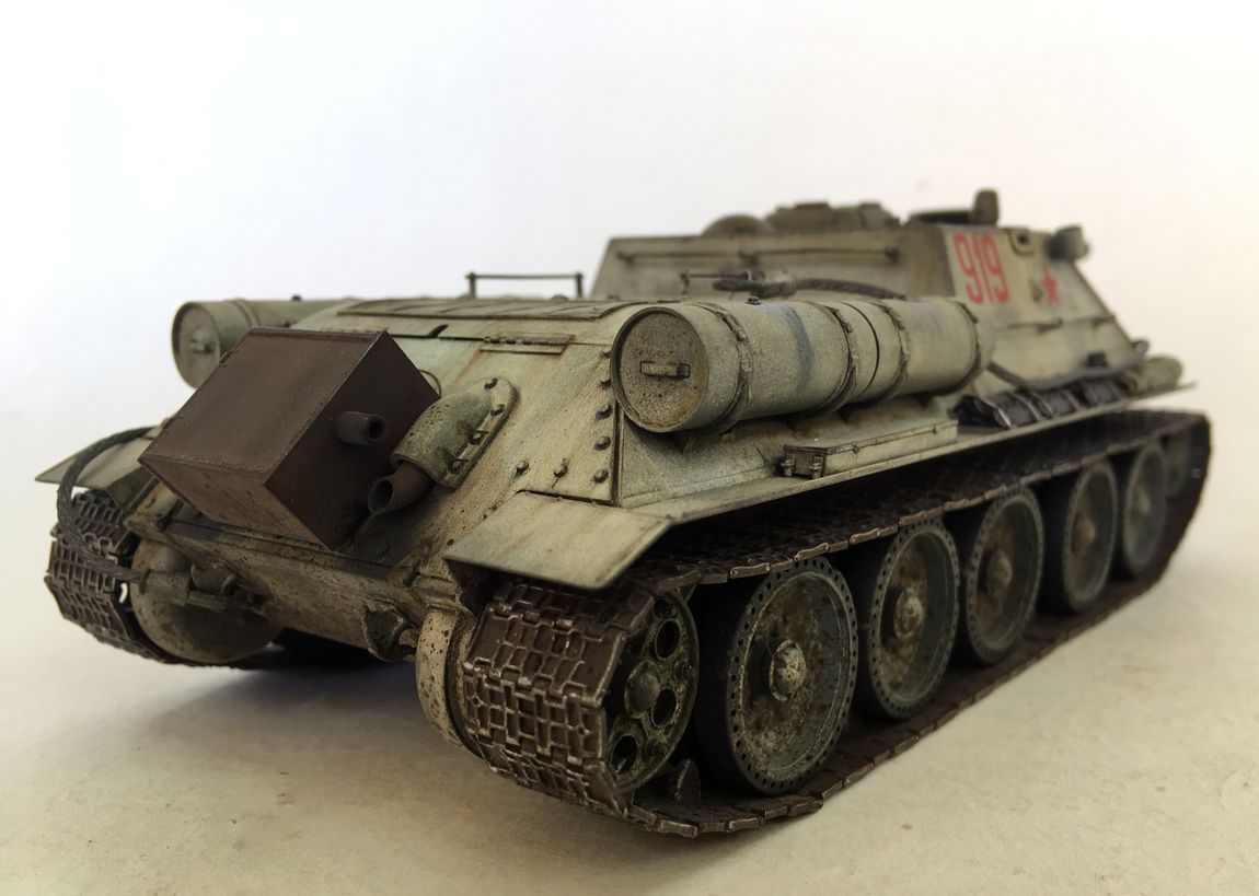 Здравствуйте уважаемые моделисты. Хочу представить вам свою модель Сау су-122.Сборка проблем не вызвала. Из дополнений использовал: траки Миниарт, сетки мто от Арма моделс, точеный ствол, фару взял от Эльф стекло из набора, тросы Микродизайн, добавил скатки, в некоторых местах добавил сварные швы, сделал фактуру брони на маске орудия,сделал жалюзи мто открытыми, но за сеткой их не видно. Красилась модель красками Арма моделс, после покраски -смывка, масляные точки, брызги делал жидкостями Аммо миг, пигменты Зип. На соответствие матчасти не претендую -собирал изкоробки. Модель прототипа не имеет, при покраски опирался на инструкцию и по фото из сети. Зимник делал во второй раз поэтому буду рад советам и замечаниям!