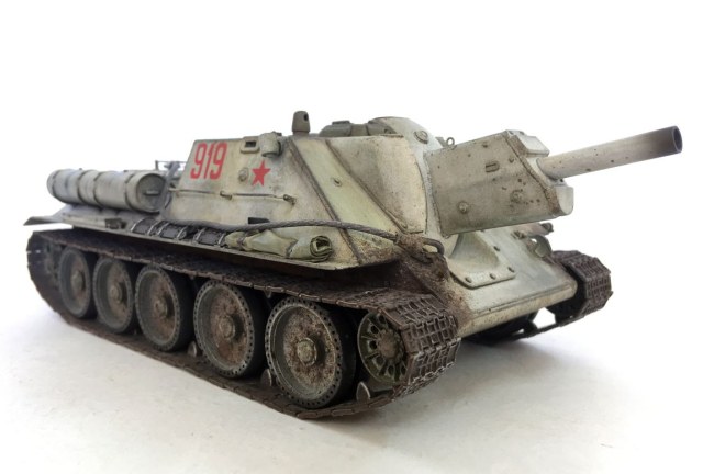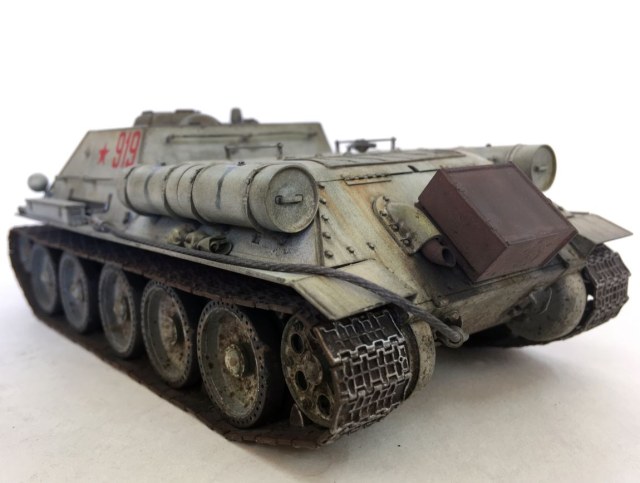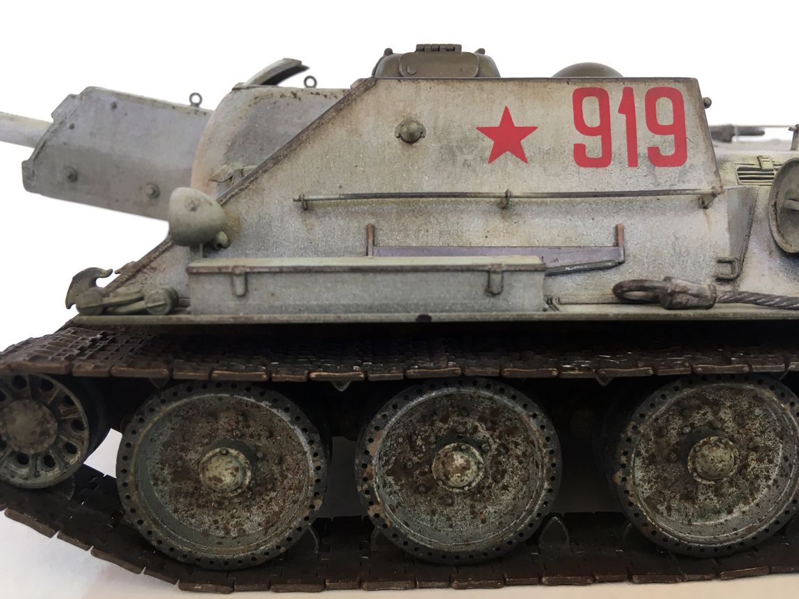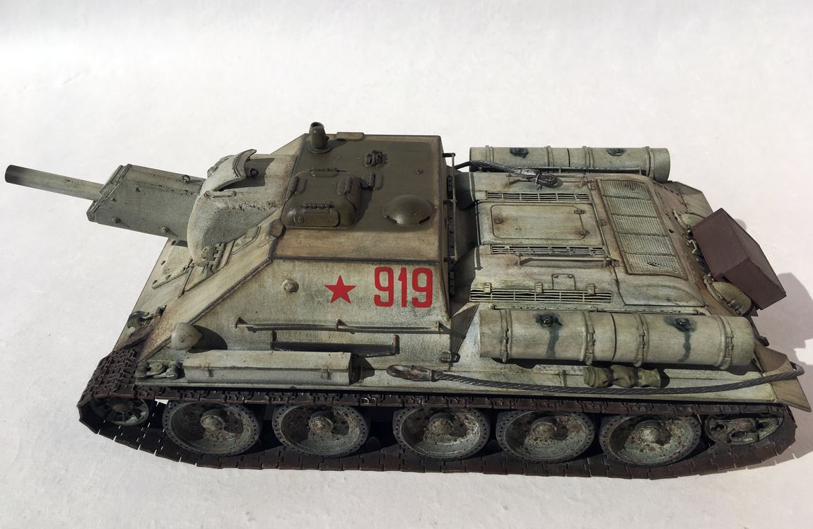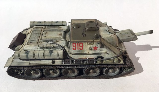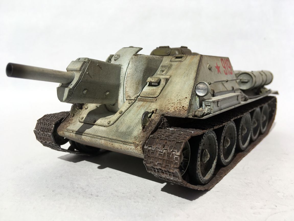 Здравствуйте уважаемые моделисты. Хочу представить вам свою модель Сау су-122.Сборка проблем не вызвала. Из дополнений использовал: траки Миниарт, сетки мто от Арма моделс, точеный ствол, фару взял от Эльф стекло из набора, тросы Микродизайн, добавил скатки, в некоторых местах добавил сварные швы, сделал фактуру брони на маске орудия,сделал жалюзи мто открытыми, но за сеткой их не видно. Красилась модель красками Арма моделс, после покраски -смывка, масляные точки, брызги делал жидкостями Аммо миг, пигменты Зип. На соответствие матчасти не претендую -собирал изкоробки. Модель прототипа не имеет, при покраски опирался на инструкцию и по фото из сети. Зимник делал во второй раз поэтому буду рад советам и замечаниям!