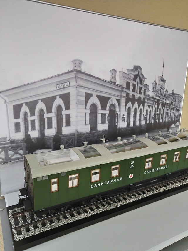 Как только началась Великая Отечественная война, Вологодский паровозовагоноремонтный завод приступил к формированию военно-санитарных поездов. Первый поезд № 312 вышел в свой первый рейс 26 июня 1941 года. В его коллективе было 75 вологжан - медицинских работников и железнодорожников. За четыре военных года этот поезд совершил десятки рейсов на все фронты, пройдя 200 тысяч километров - расстояние, равное пяти кругосветным маршрутам, - и перевез более 25 тысяч раненых. Это был уникальный поезд. За время войны его коллектив внес десятки рационализаторских предложений по организации перевозки раненых, превратив поезд в образцовое лечебное учреждение. Наряду с перевязками и уколами для раненых здесь были организованы физиотерапевтические процедуры и занятия лечебной физкультурой. Когда военно-санитарный поезд № 312 прибывал на станцию, его старались поставить на первый путь - настолько он был красивым и ухоженным.