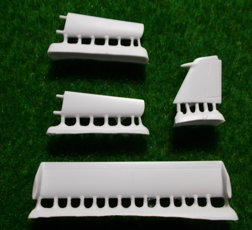 В упаковке из довольно мягкого картона обнаруживаются: детали из белого полиуретана, а также инструкция по сборке, лист с изображением деталей, входящих в комплект, схемы окраски, лист высококачественной декали и 2 идентичных вакуформированных фонаря (один – про запас).