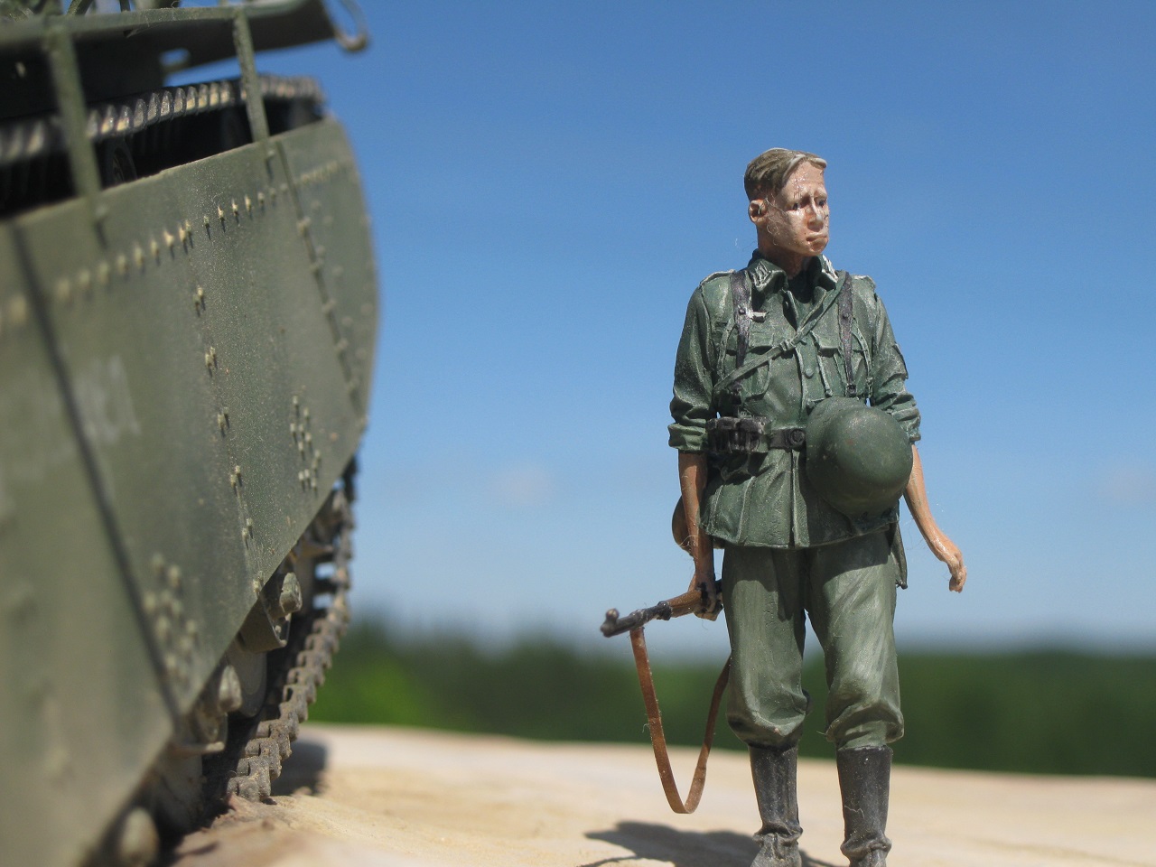 Фотографии на фоне природы хорошо получились, но цветопередача гуляет: получается на выбор либо танк бледный либо немцы зеленоватые, одновременного правильного цвета не получается.