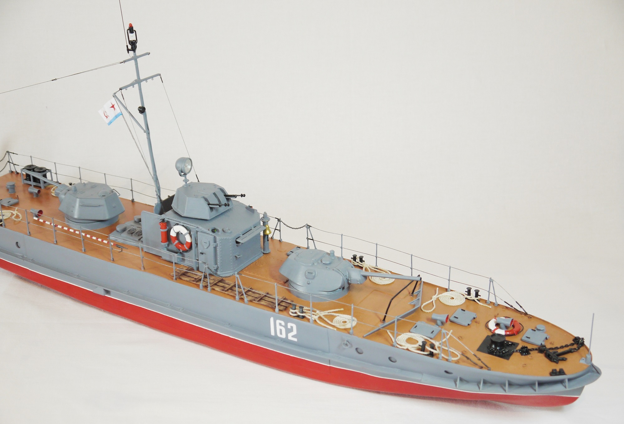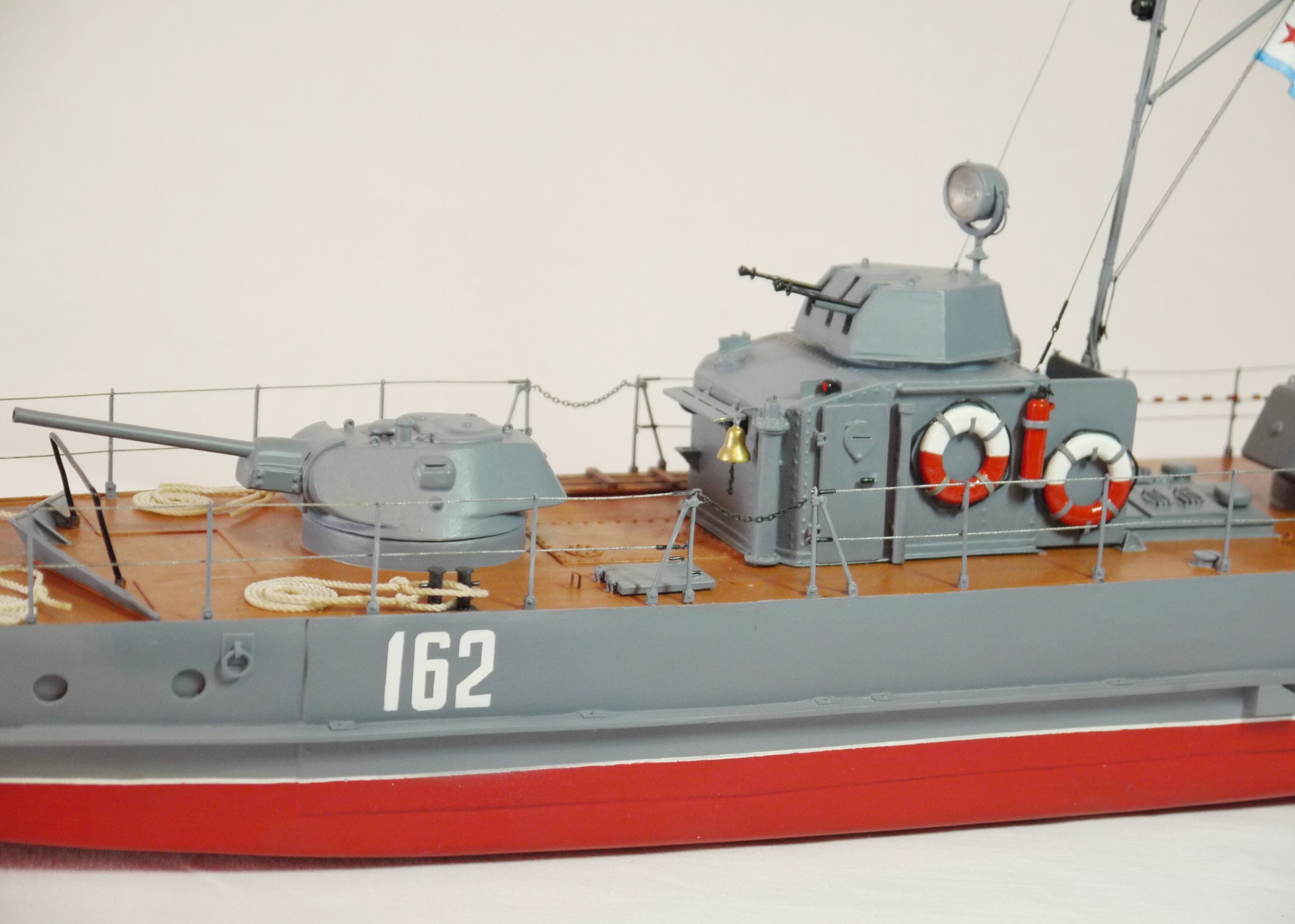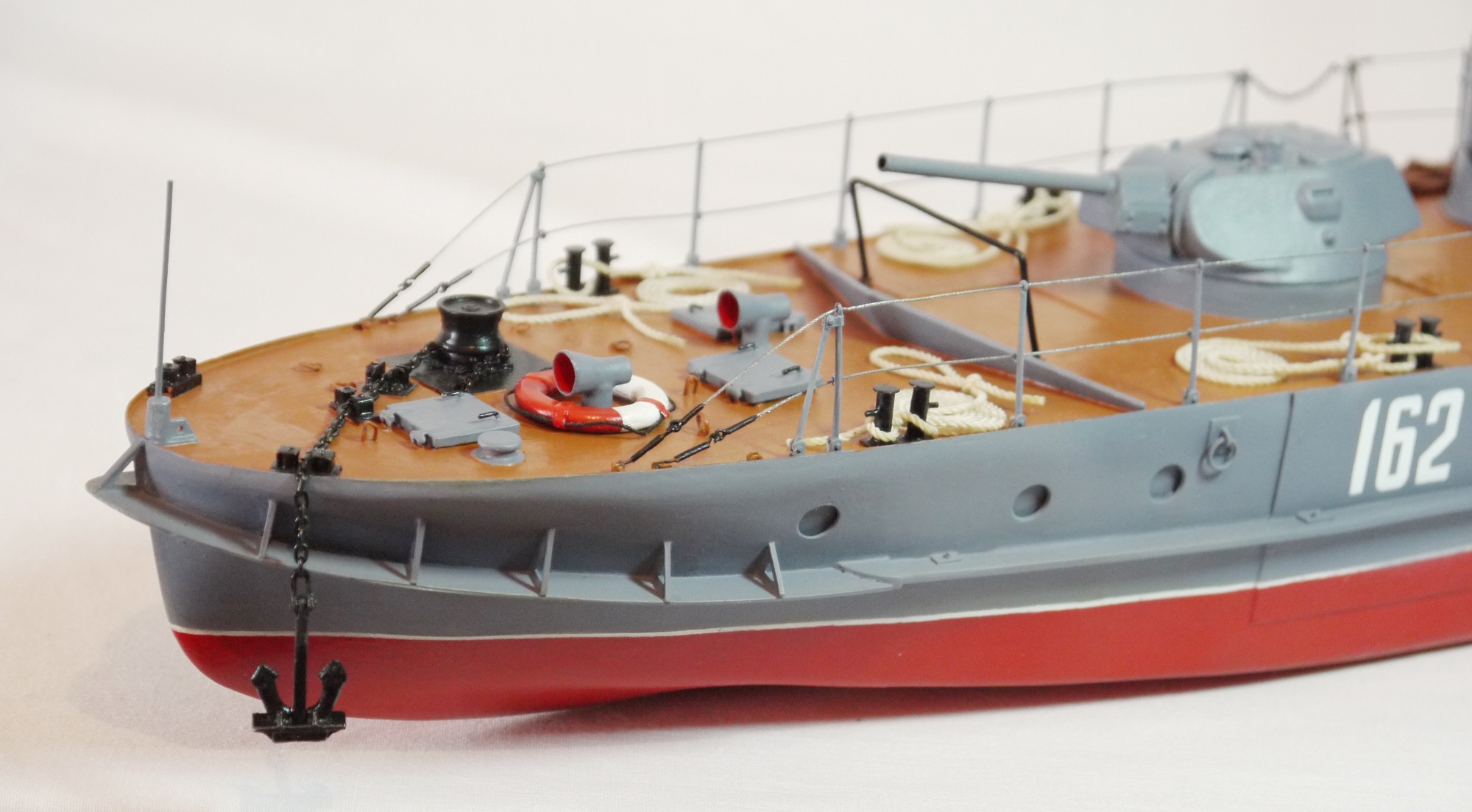 Согласен что концы длинные, сплести бы их не удалось, я хотел их связать ниткой но так руки и не дошли, по поводу того что белые швартовые, то я в художестве не мостал не хотел испортить...а то что все иллюминаторы закрашены так их специально закрашивали чтоб не демаскировать в ночное время катер, а днем просто открывали иллюминаторы...