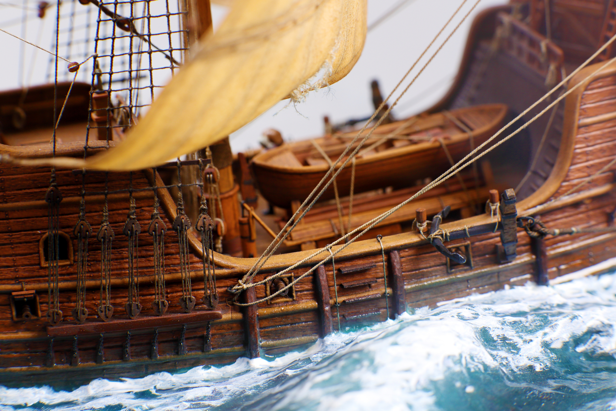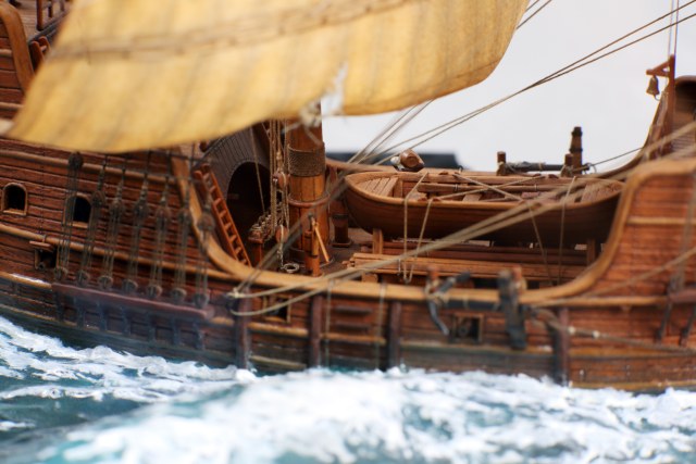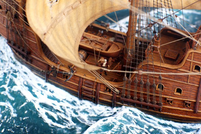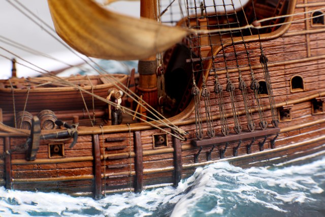 Все крайне замечательно сделано и корпус" деревянный и такелаж ,паруса " с ветром" и прорехами вообще отдельный респект!