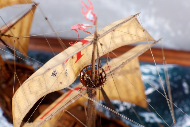 С огромным удовольствием рассматривал модель. За галерею! Доработки по такелажу и прочим снастям- БРАВО! Окраска - ЗАЧЁТ! К сожалению не видел рваных парусов в действительности, поэтому дырки на парусах не понравились.