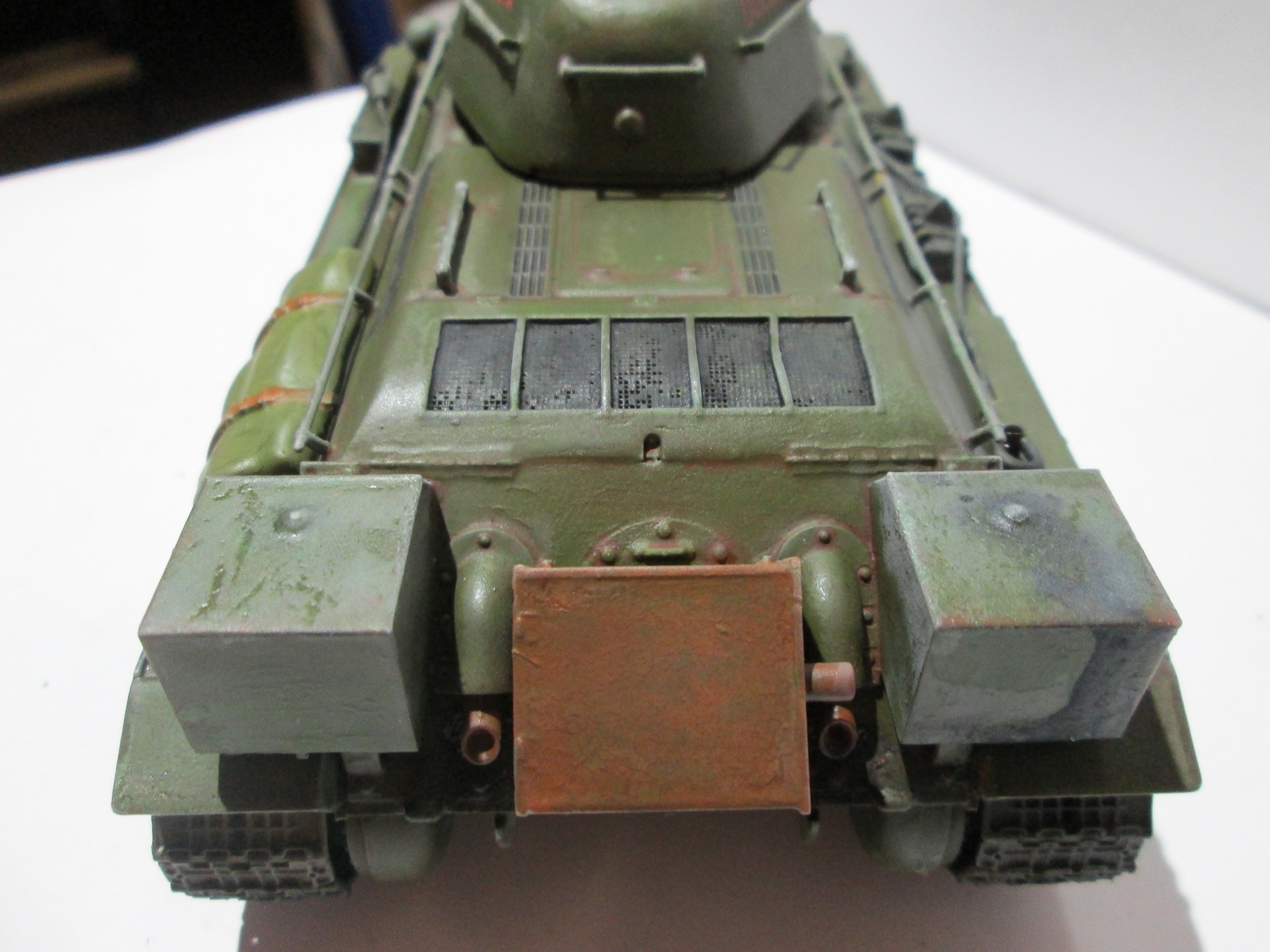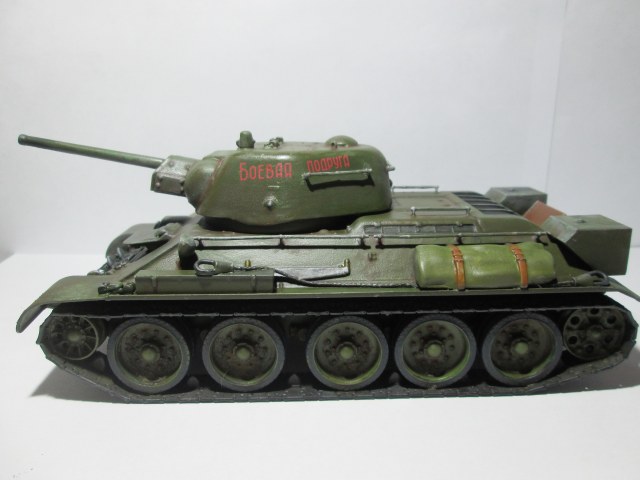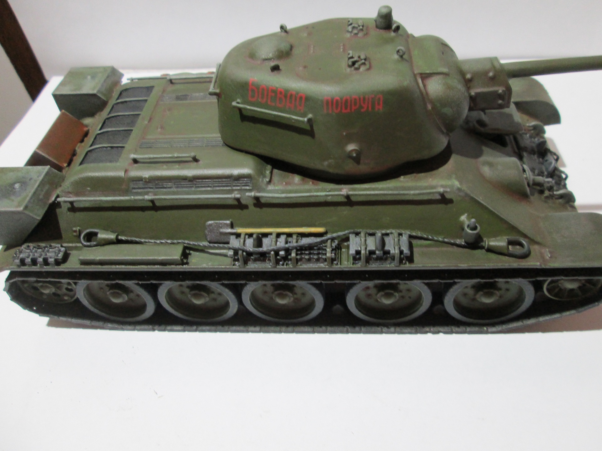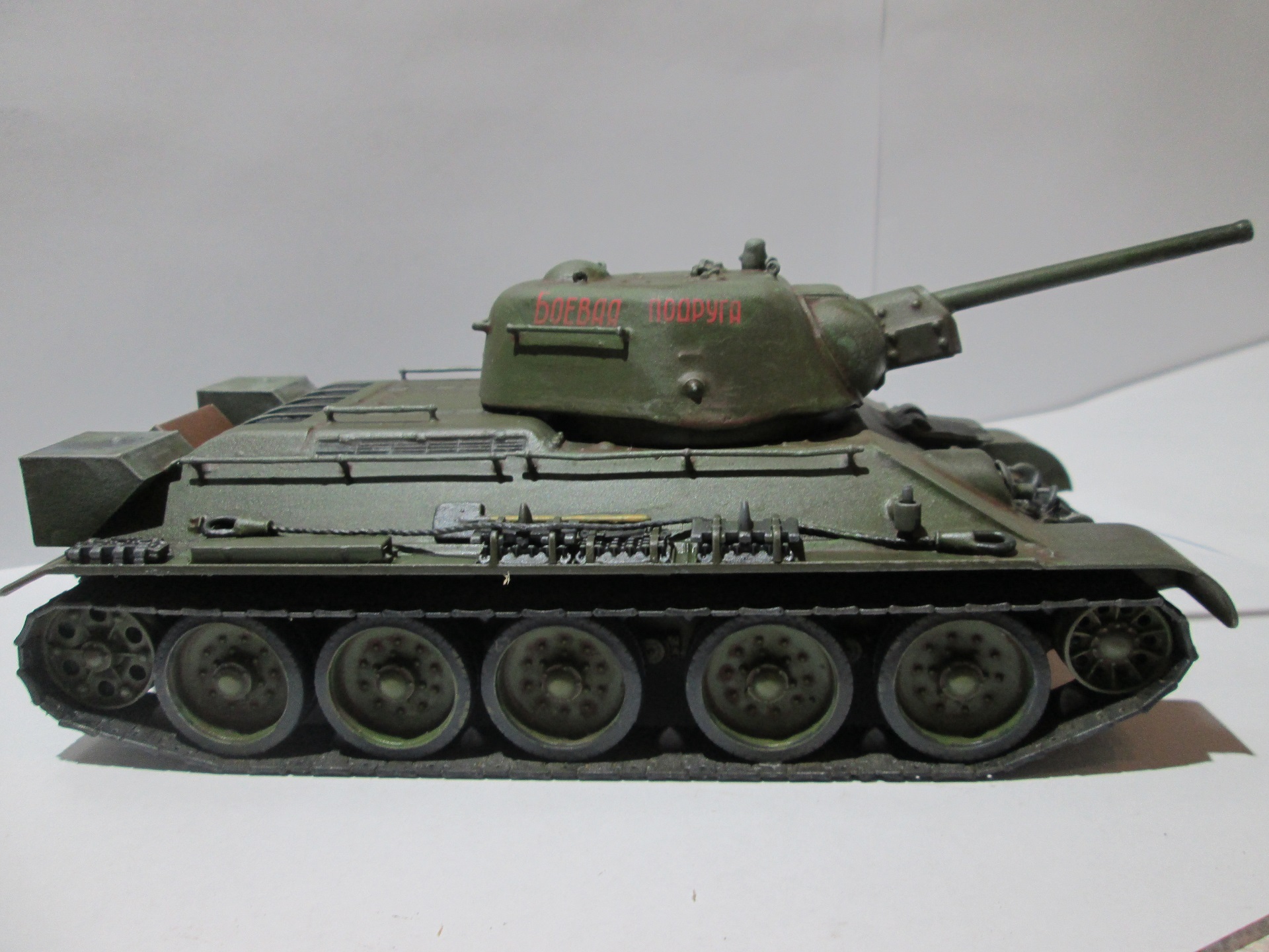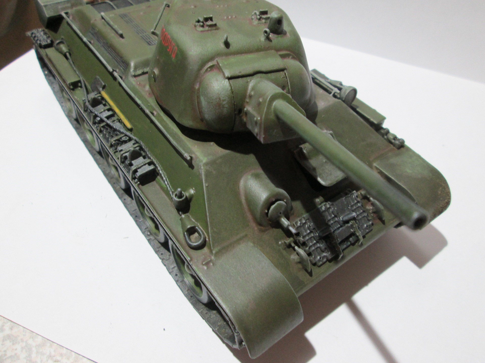 Приветствую вас,моделисты.Хочу вам представить свою первую модель танка Т-34/76,которая после затянувшейся покраски и неправильного применения фильтра и пигментов,оказалась второй доделанной.Собирал из коробки,добавил траки на лобовую бронеплиту.Красил кистями художественным акрилом "Аква-колор" цвет -хаки,фильтр и пигменты- ZIP,масло -"Невская палитра" с разбавителем KAV.К историческому прототипу,предложенному "Звездой" не привязывал,наклеил декали от зимнего камуфляжа.