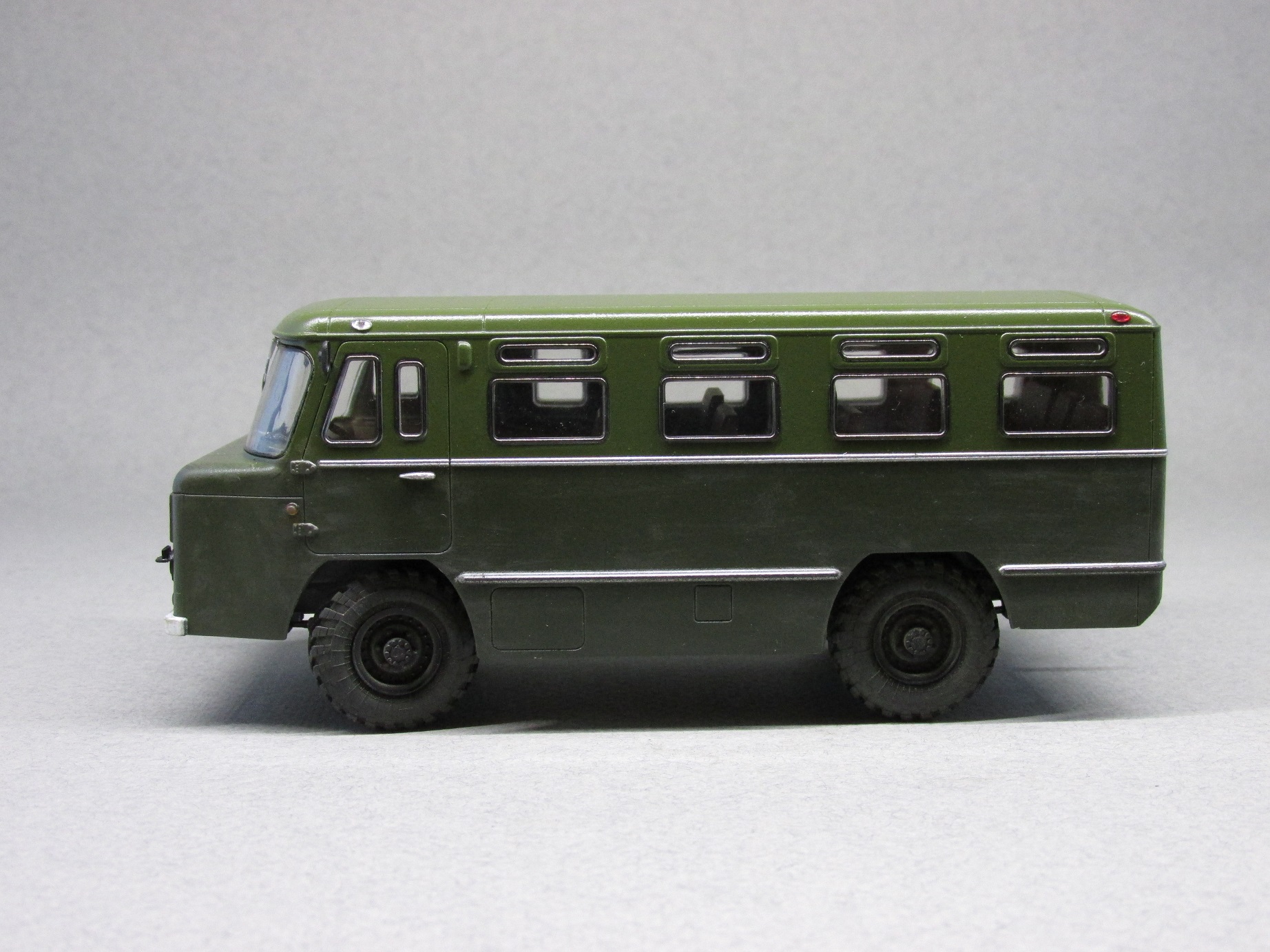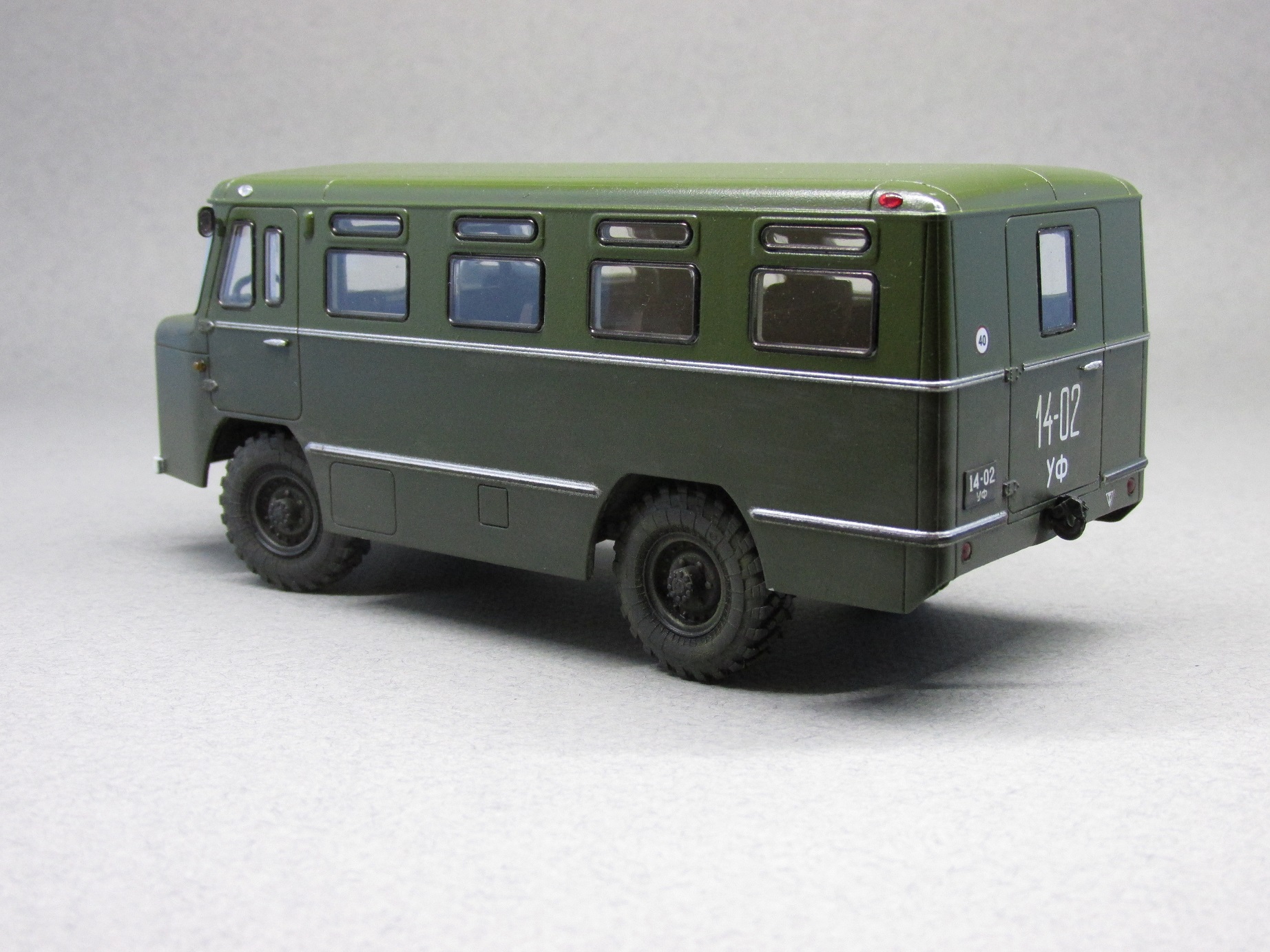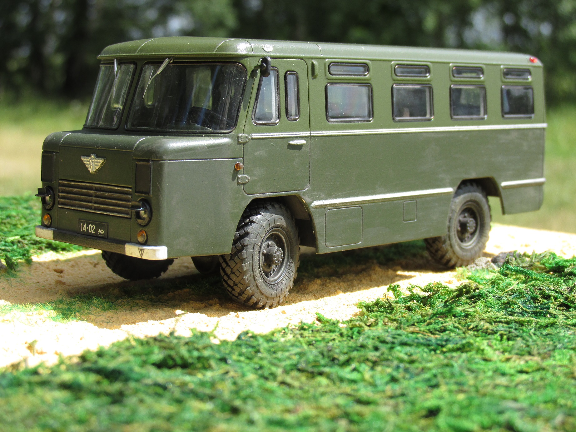 Сборка модели очень простая. Дополнительно при сборке установлены диски, шины и поворотный механизм от Маэстро моделс, дворники 3D от Петрограда и светомаскировка от Старта. Окрашена модель Тамией серии TS (28, 70), мелочевка также Тамия. По завершении слегка припылил модель сухими пигментами от той же Тамии.