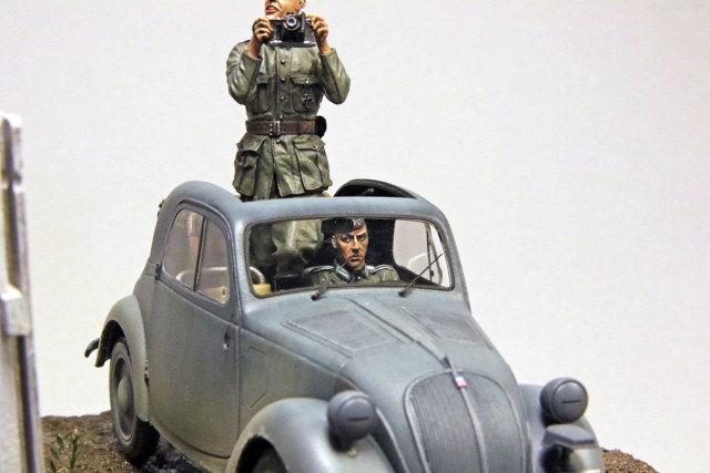 Природа настолько очистилась, что появилось время для любимого хобби:) Отличная модель крошечной машины от Tamiya так и напрашивалась на виньетку, а открытый верх открывал широкий простор для фантазии. Выбор пал на набор от Stalingrad miniatures S-3562 German staff car crew, c дополнением в виде голов от Hornet. Вишенкой на торте стал небольшой набор фототравления от Voyager. Подсолнухи от AMMO MIG.