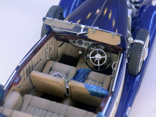 Для живости в салоне сделал на сиденье синий плед, для поездки в вечернюю прохладу, где-нибудь по дорогам Тосканы.