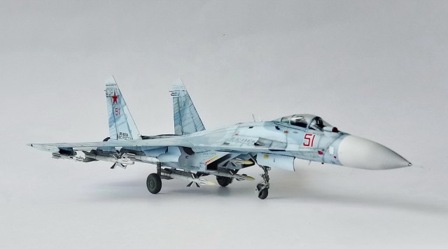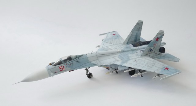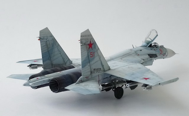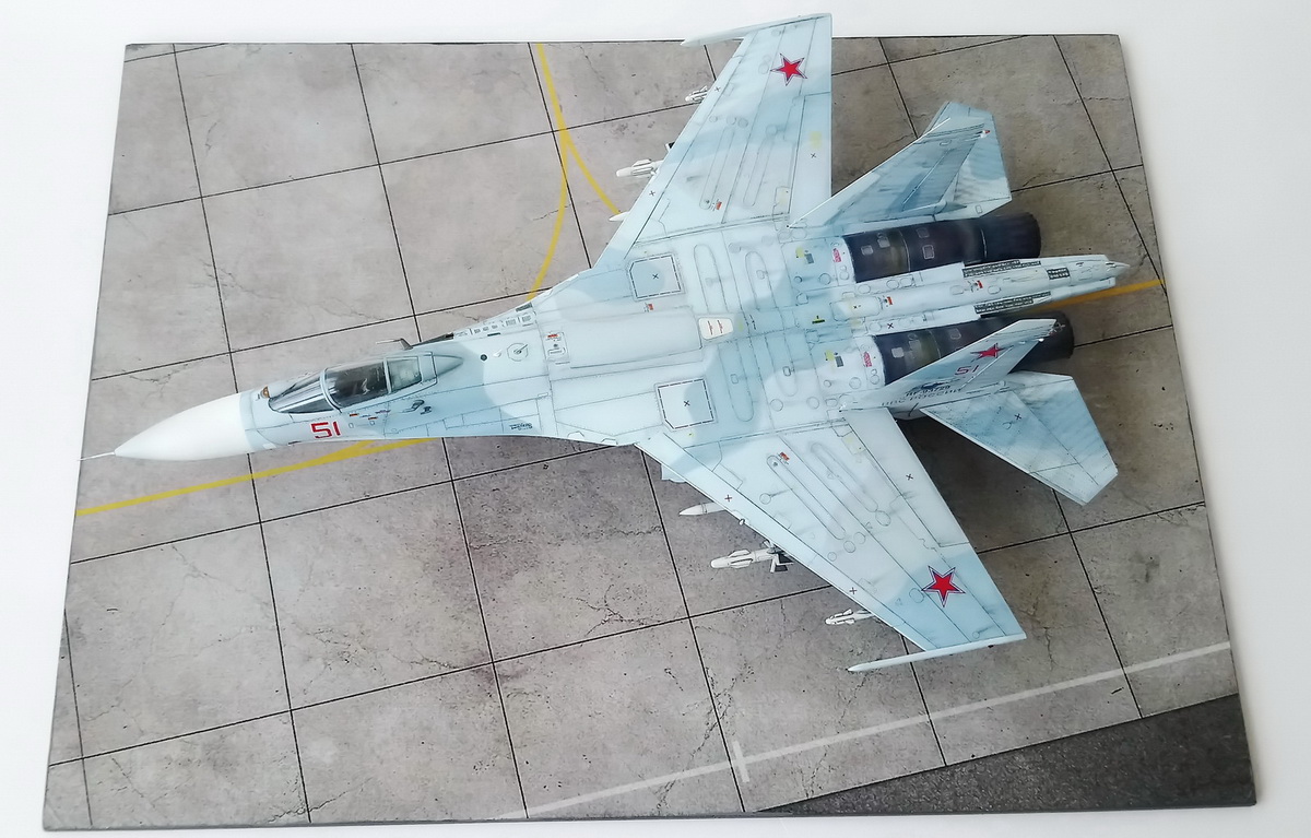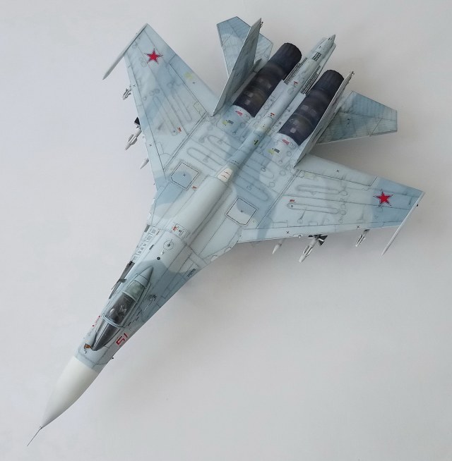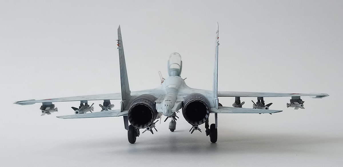 Модель смотрится! Лично у меня на беглый просмотр вопрос по соплам возник. Правое вверх смотрит, левое вниз - это ж не Су-35С с движками с УВТ