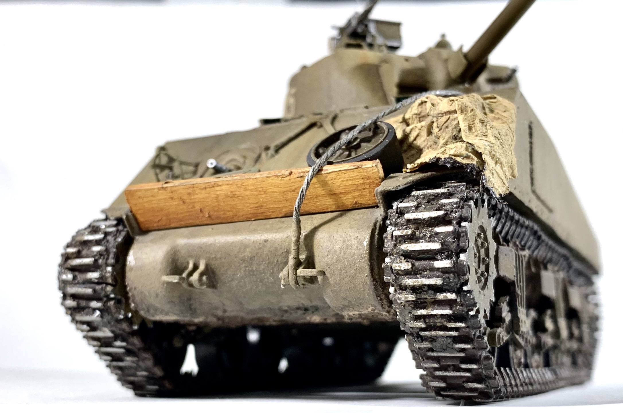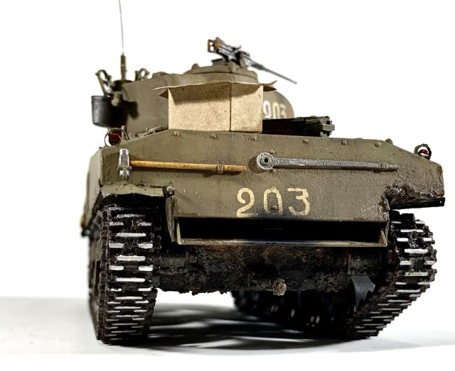 Задние огни окрашены неаккуратно и кажется еще и неверно. Задняя декаль приклеена неровно. Левая гусеничная лента лежит неровно.
