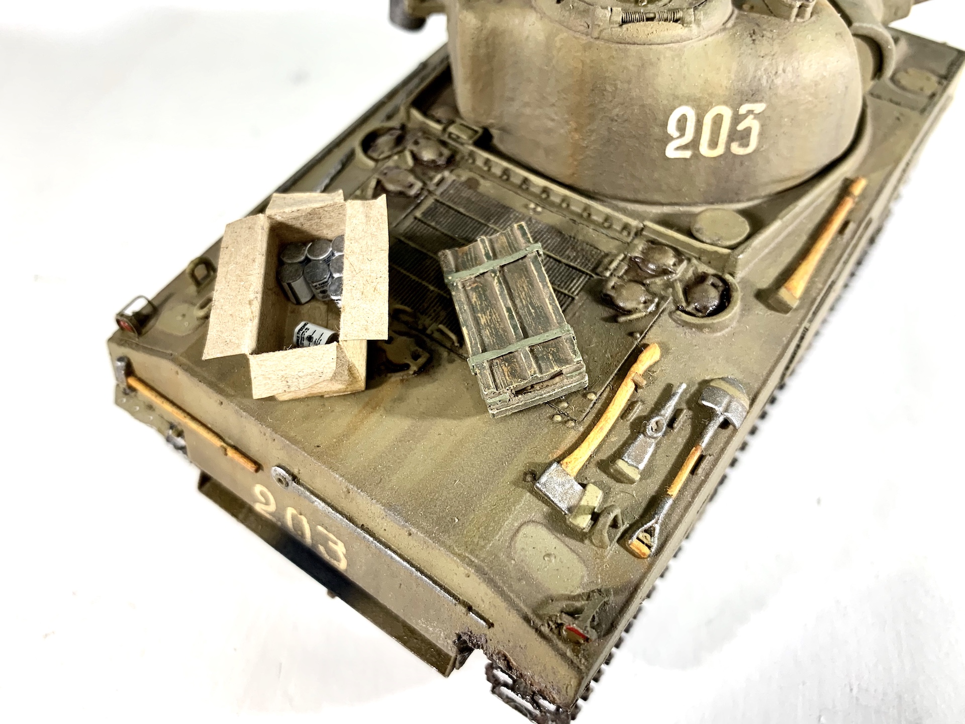 При сборке было ощущение, что производитель очень торопился запустить эту модель в производство и в следствии этого допустил множество упрощений, таких как зеркально гладкая башня с непонятными швами, отсутствие сварных швов на бортах корпуса и отсутствие имитации литой брони на бронировке трансмиссии. Также абсолютно на каждой детали был стык прессформ.