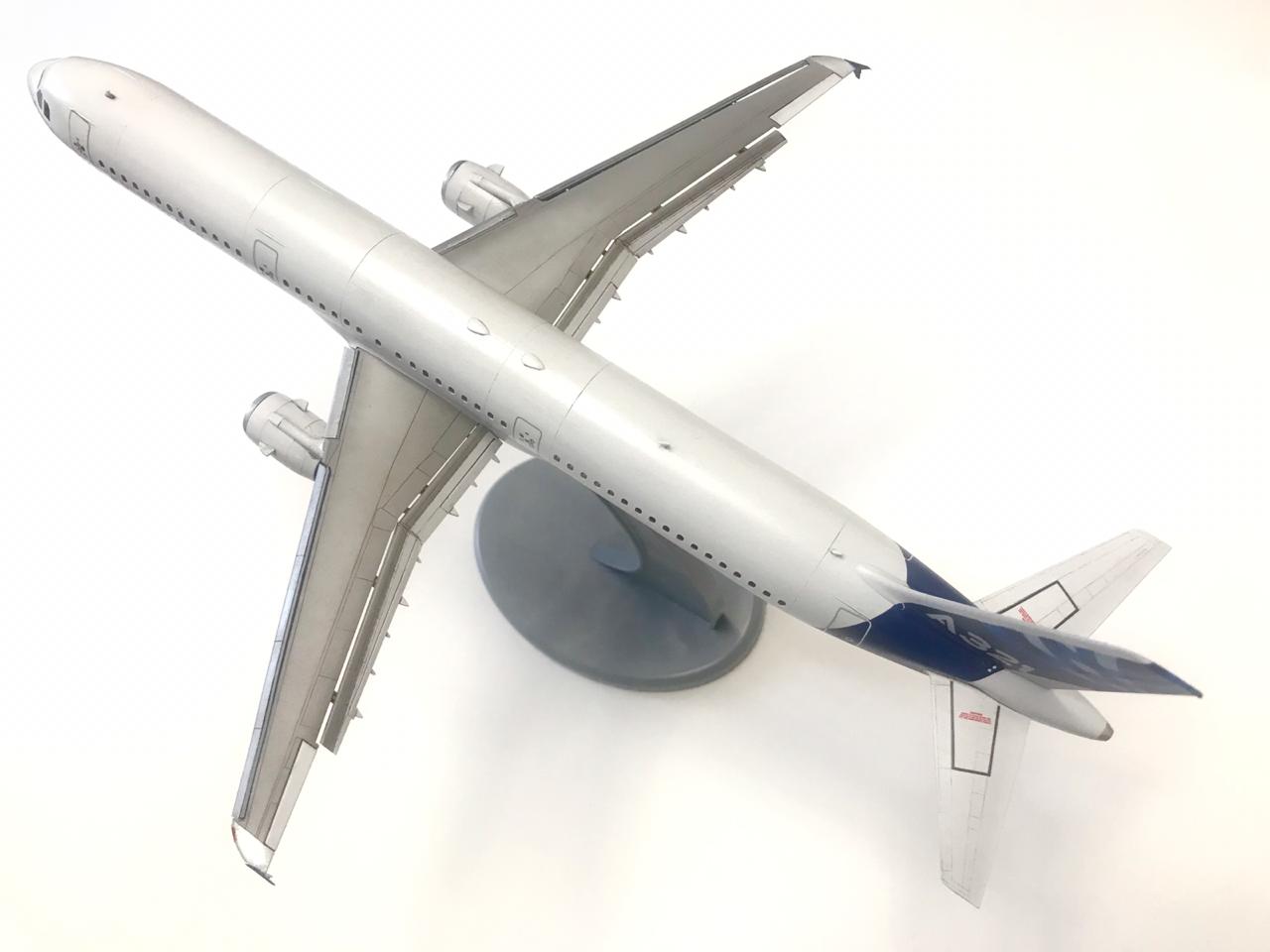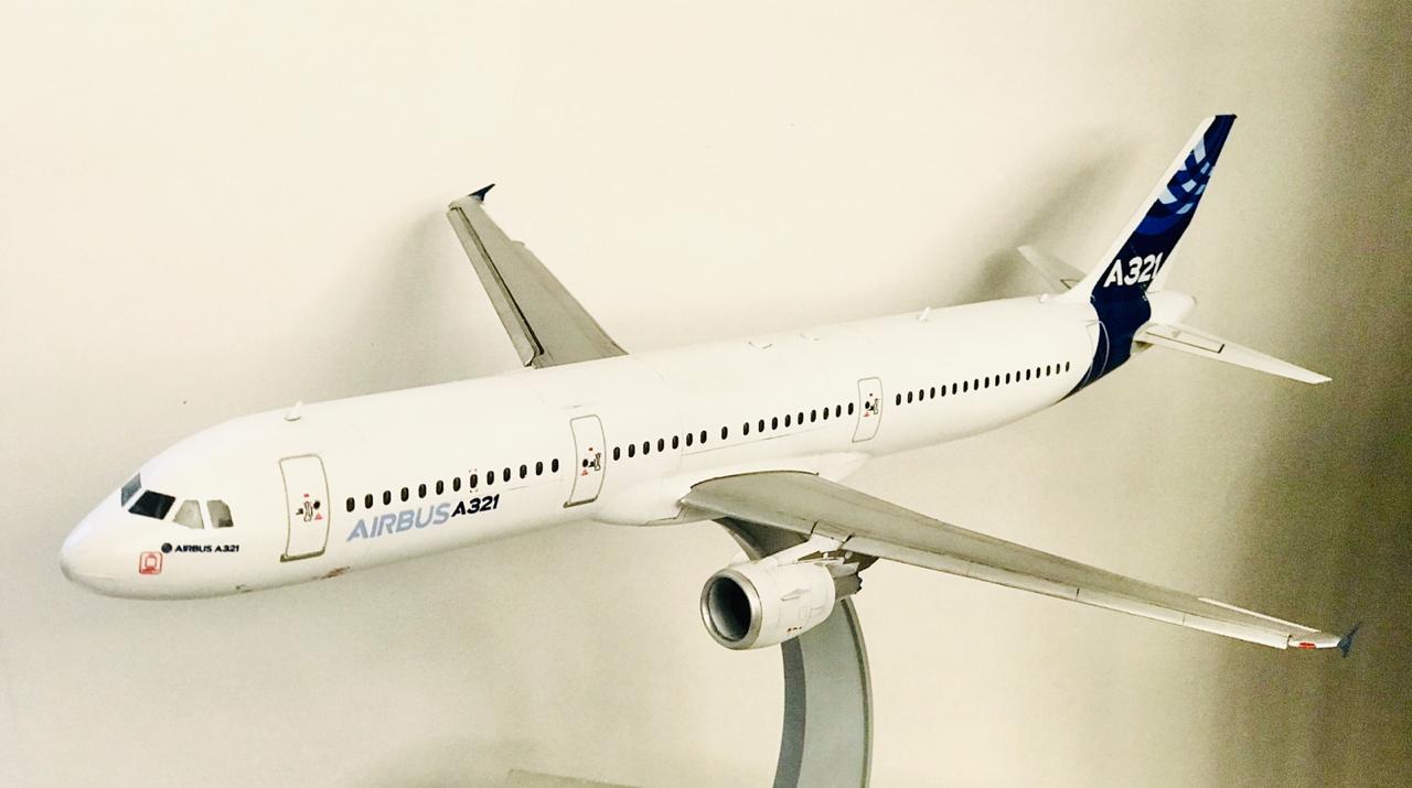 Представляю вам модель Аэробуса 321. Начинали делать с сыном. Приобщаю к нашему делу. Но окрашивать пришлось самому, не хватило терпения у подрастающего поколения.