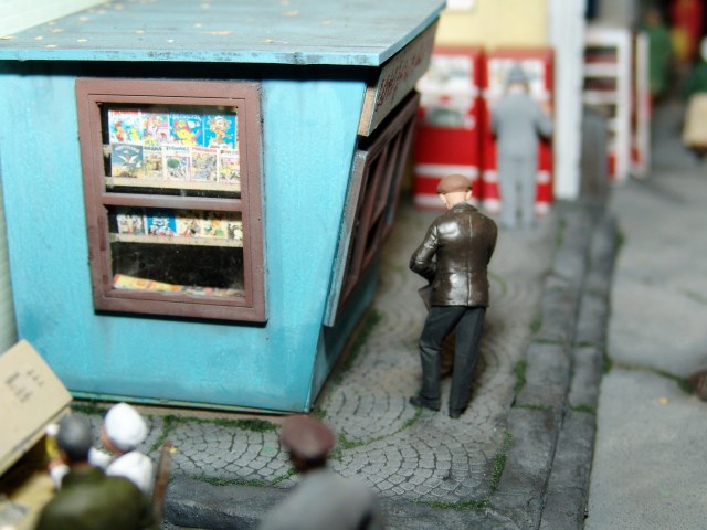 Юрий, в этом то и сложность любой более-менее сложной диорамы сделать композицию насыщенной на небольшом пространстве, так что бы все было логично по сюжету и удачно размещалось. Только на планирование расстановки и размещения уходит несколько дней, с просмотром десятков документальных фотографий улиц и кучей рисунков на бумаге..