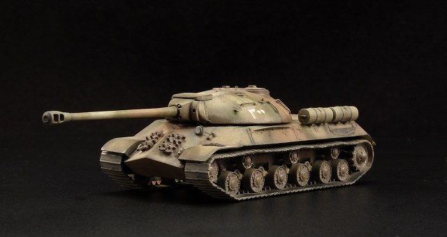 Заканчивая серию "сотого" масштаба, собрал модель ИС-3 модификации 1945 года. Ничем выдающимся на службе в Красной и Советской армиях этот танк не отличился. Можно отметить реакцию западных государств на появление ИС-3 на параде Победы в Берлине 7 сентября 1945 года. Это был шок. Возможно, появление этих машин в Германии, в том числе, повлияло на отмену операции "Немыслимое". Участие в подавлении венгерского мятежа в актив записывать не буду.