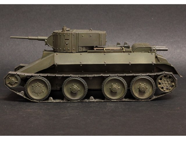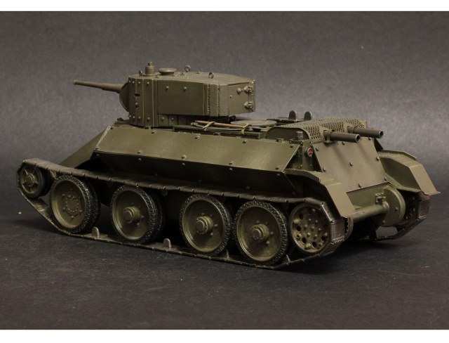 Без обид, но на таком фоне и с таким выбранным цветом первое впечатление, что это неокрашенный пластик. Потом только замечаешь покрашенные бандажи, фонарь. шанцевый инструмент
