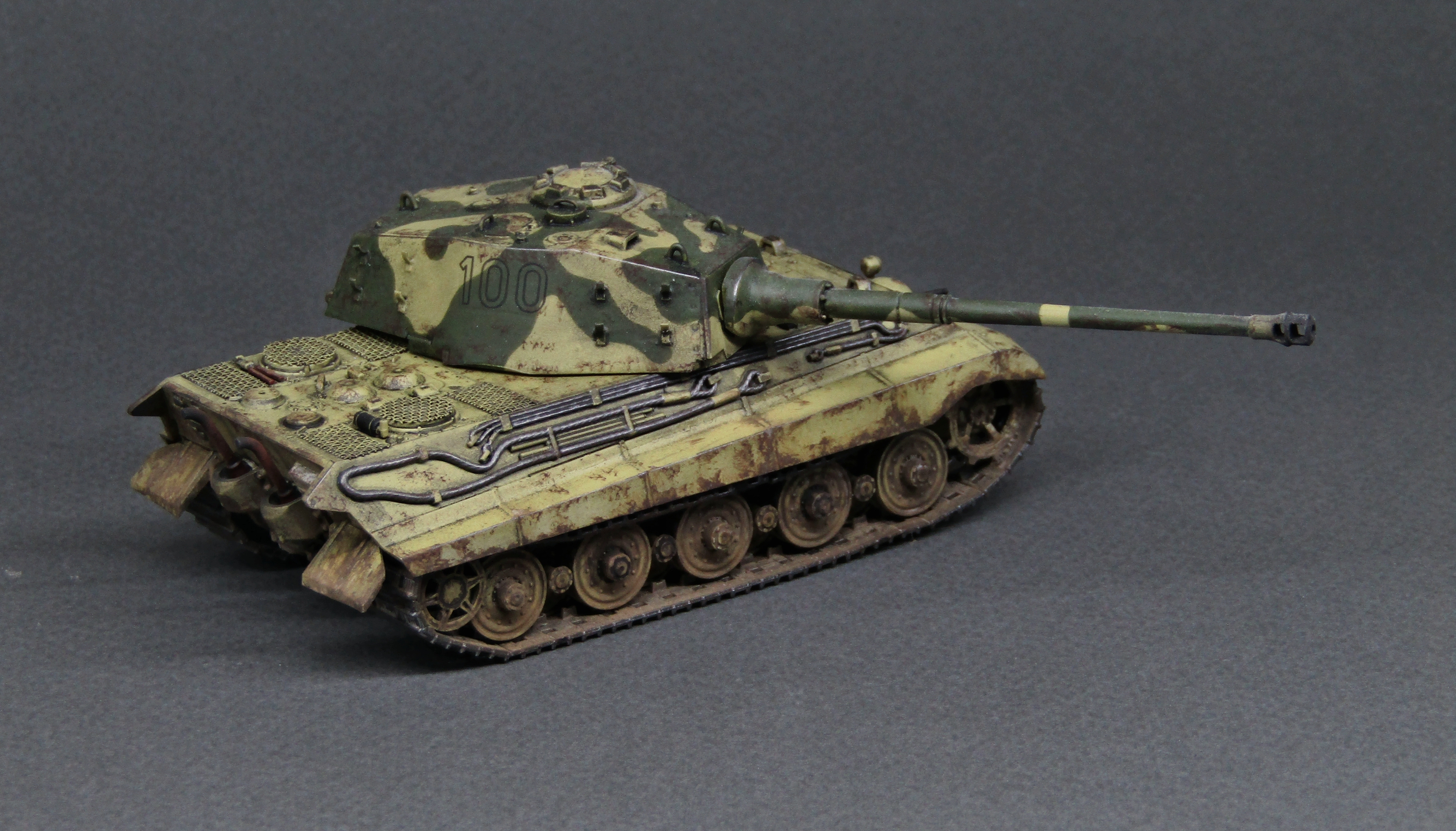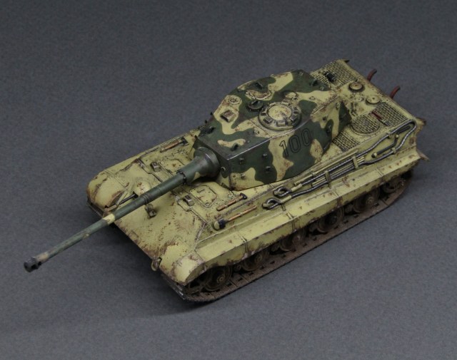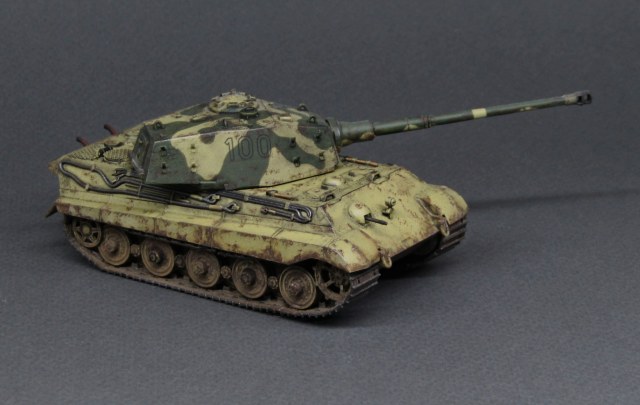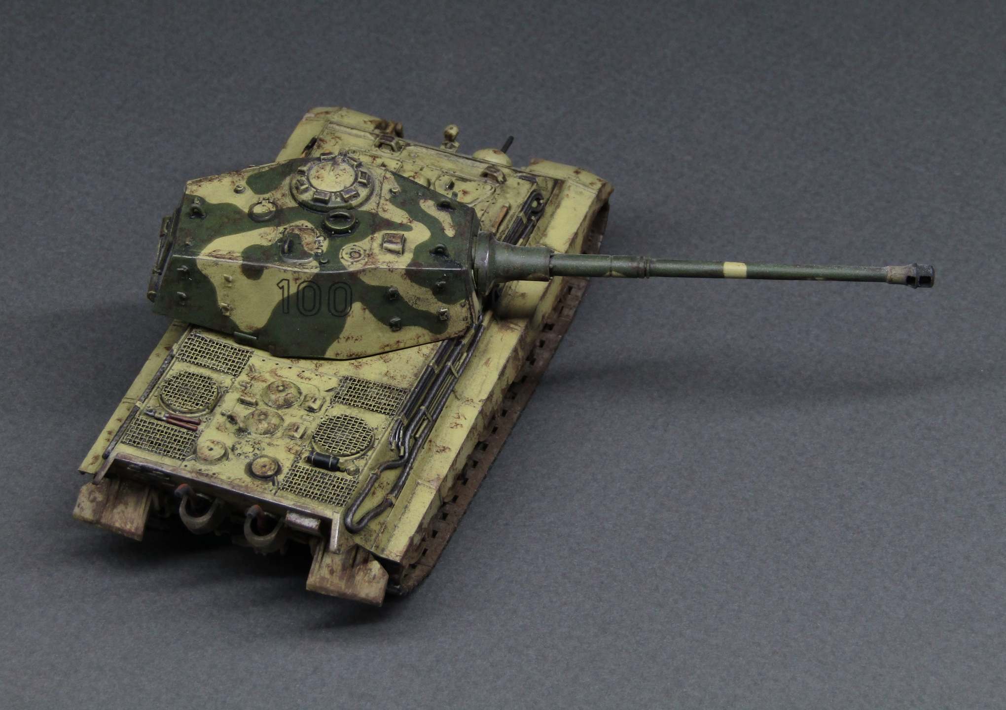 Приветствую коллеги! На этот раз захотелось немного повозиться с бронёй в 72-м масштабе. Набор всем хорошо известен, поэтому описывать не буду. За основу взял боковики королевского тигра Ausf. B оберштурмфюрера СС Липперта из 1-й роты 503-го батальона тяжёлых танков СС, Берлин, Май 1945 г. Для соответствия боковикам пришлось зашпаклевать отверстия на башне и повесить "петли" для запасных траков, также добавил сетки на МТО и заменил ручки на проволоку. Декали "100" заказывал у Алексея Бацких. Грунтовал серой Ганзой, красил акрилами от АКАН'а, смывал тамией. Добавил немного сколов и пигментов от Zip maket. Финишное покрытие матовым лаком от revell. Вот собственно и всё, приятного просмотра...
