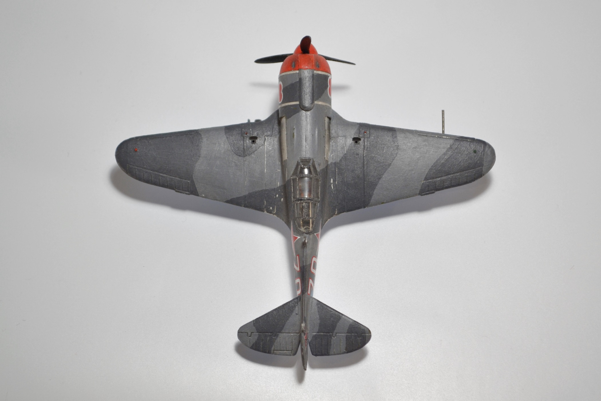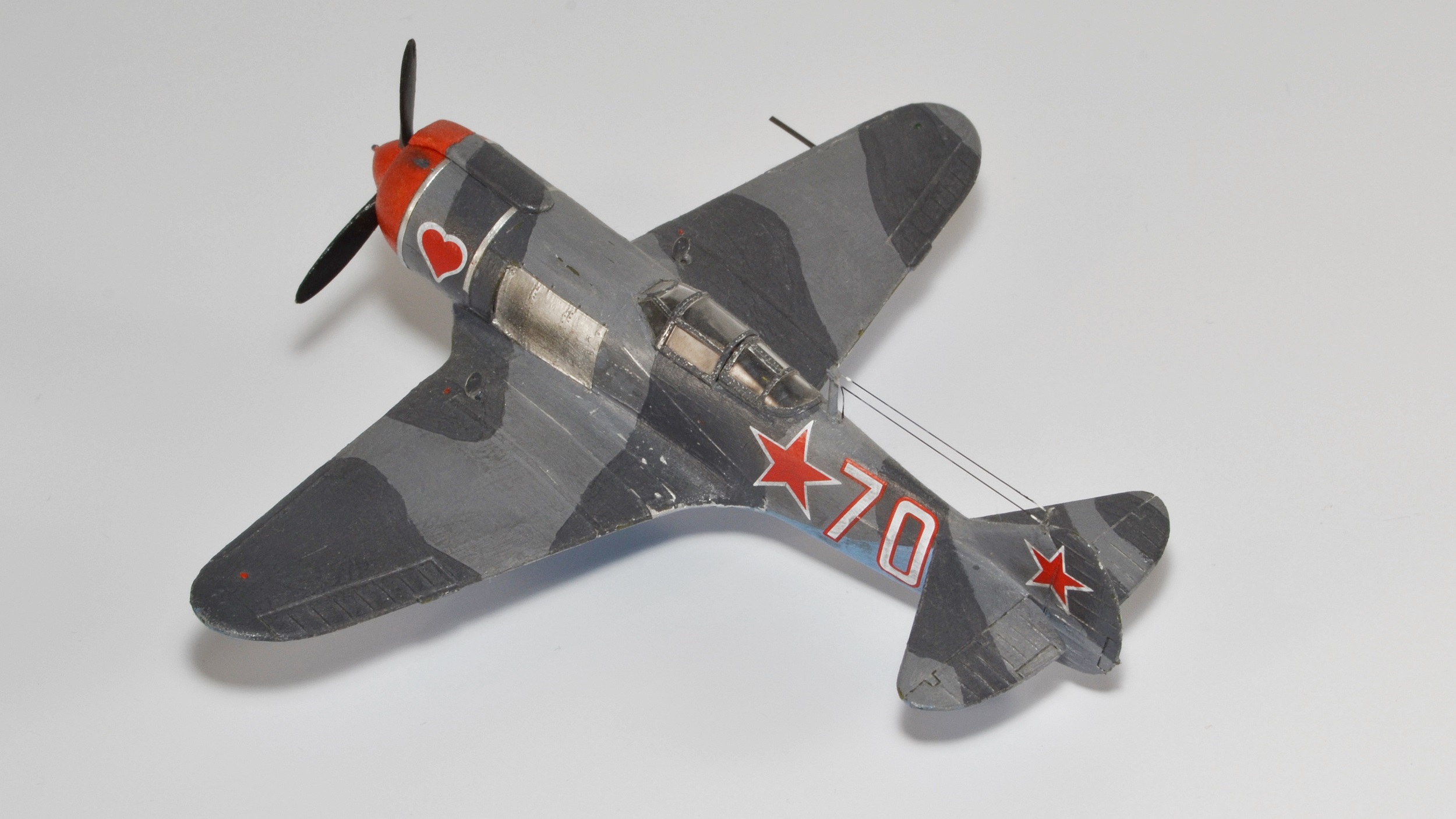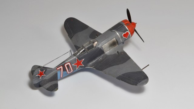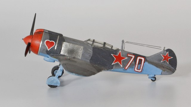 Продолжаю повествование о том, как набивал руку перед тем, как решился выложить что-то на всеобщее обозрение. 2017 год. Прикупил модель от Звезды. Повелся на дешевизну. Содержимое коробки, к сожалению, полностью соответствовало цене. Тем более, что собирая бумажную модель Ла-5, более-менее поизучал матчасть. Данный набор очень сильно расходился с прототипом, а в 72-м лавочкина вроде никто больше и не выпускает. Пришлось немного дорабатывать. Сделал ниши шасси из блистеров от таблеток, наклеил жаропрочные панели по бокам, переплет фонаря, открытые лючки, имитация солдатиков, стяжные ленты на капоте. Стало чуть-чуть получше. Результат перед вами. Спустя какое-то время слепил (по-другому не скажешь) аэродромных техников - к приобретению подтолкнула картинка на коробке с изображением Макарыча из всеми любимого фильма.