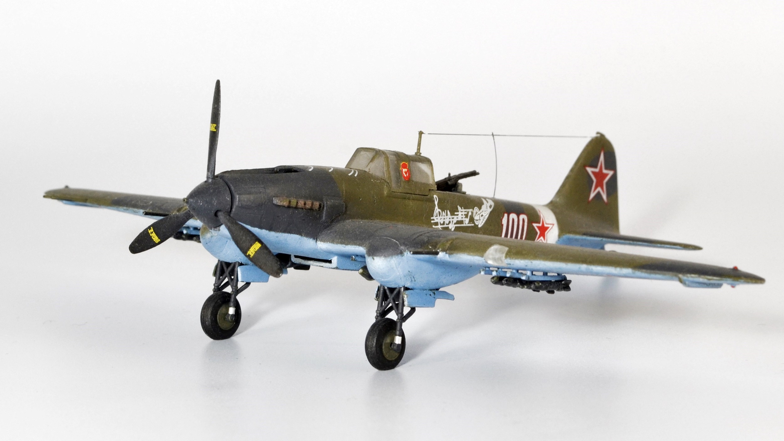 Начало октября 2017 года. Придя к выводу, что моделизм в моей жизни уже надолго, решил приобрести компрессор с аэрографом. Вау-эффекта, конечно-же не произошло, но модели сразу стали на порядок лучше. Ил-2 - первая из них, покрашенная аэром. Сначала хотел наклеить декаль "Мститель" со стрелой, но, присмотревшись к фотографиям, увидел, что тот борт был модификацией М3, со скошенным крылом. Так что использовал вариант с нотами, Емельяненко, чью книгу читал аккурат в то время. Возможно, со временем вернусь к этому самолету, соберу модель поаккуратнее. Продолжение следует! Всего наилучшего!))