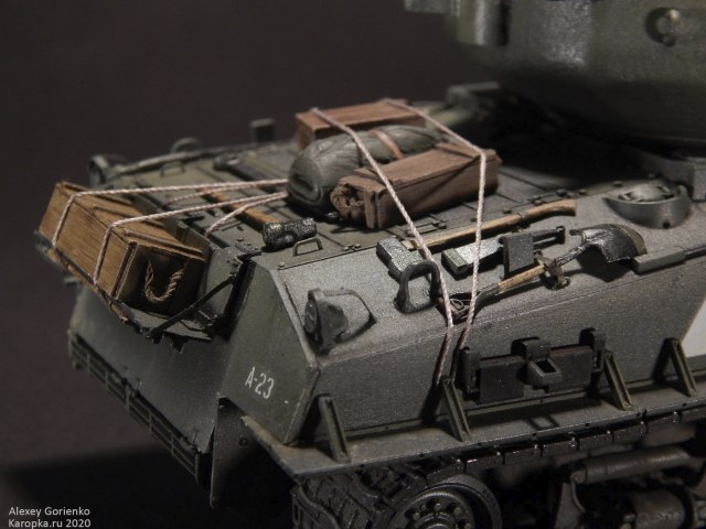 Спасибо! Да, вот поэтому я изначально хотел без веревок вовсе. Я еще на прошлом Шермане намучился с тем, что даже несмотря на дополнительную покраску в серый цвет они бликуют на фотографии как белые.