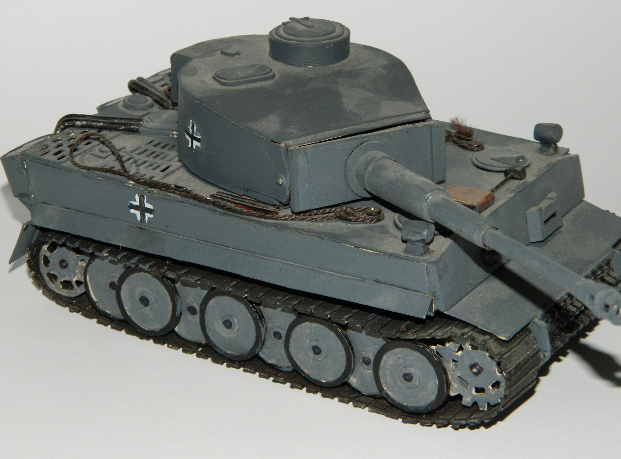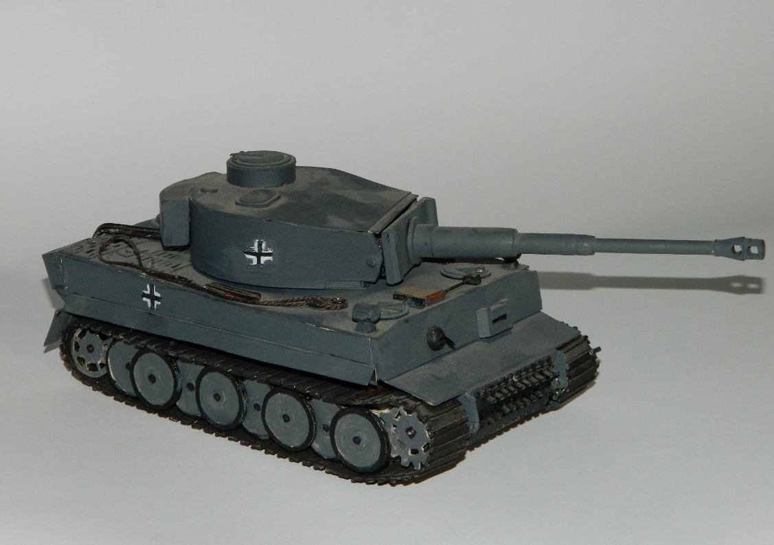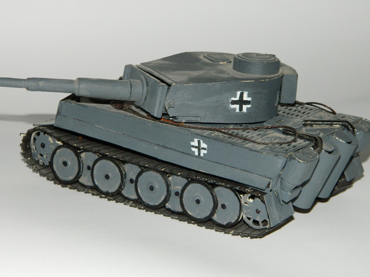 Всем привет , моя старая и единственная модель танка Тигр-1 , выполнена из школьного белого картона, некоторые вставки из пластика такие как маска орудия, дульный тормоз , верхний брони лист. Чертежи печатал на принтере. На работу ушло 3 дня.