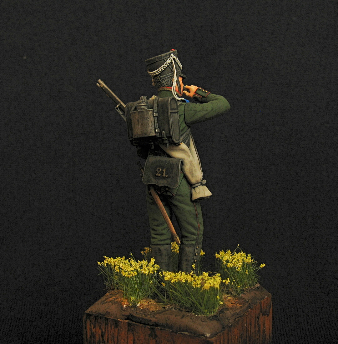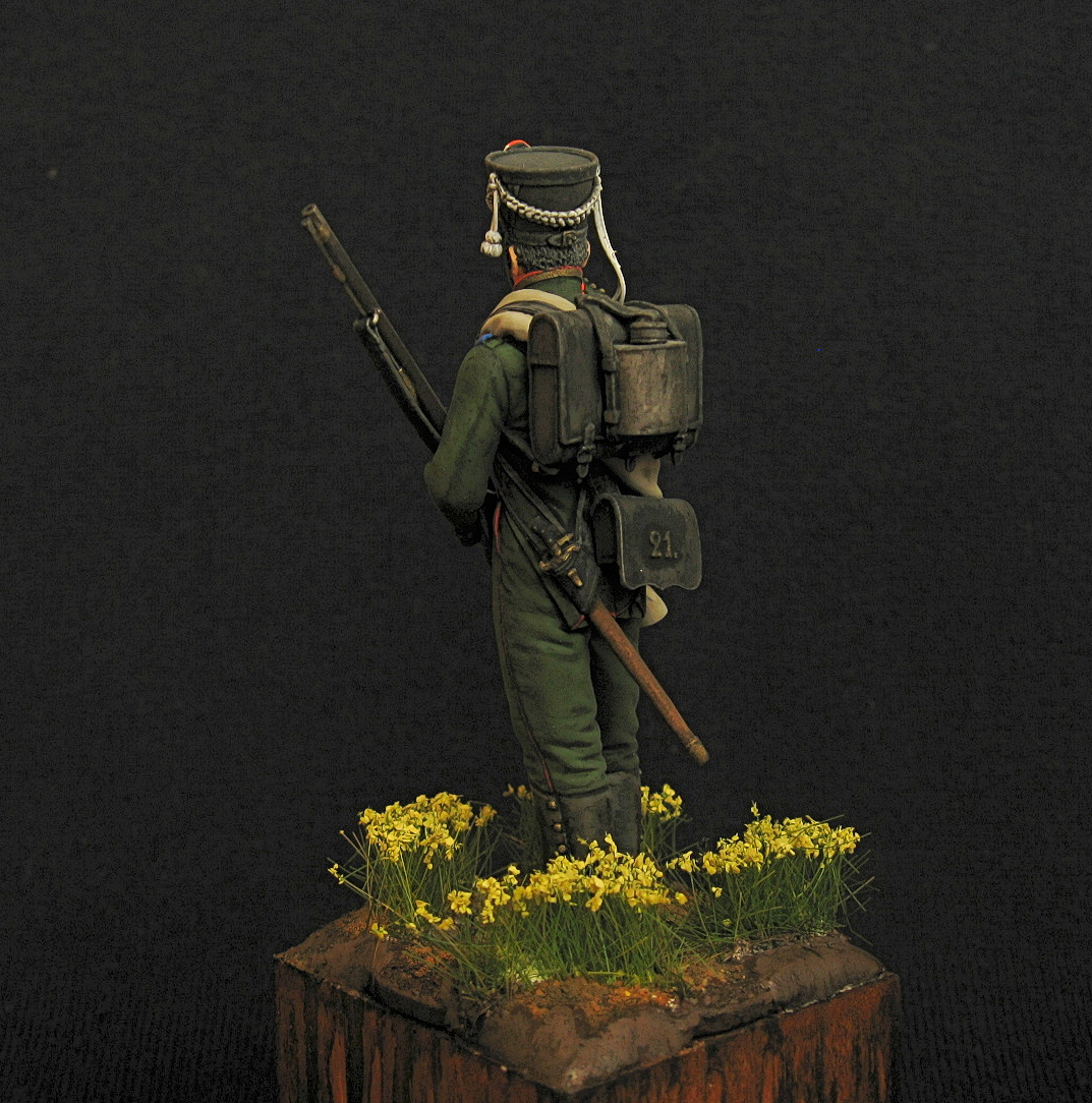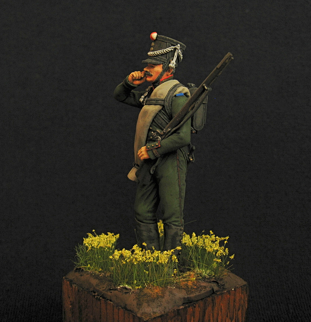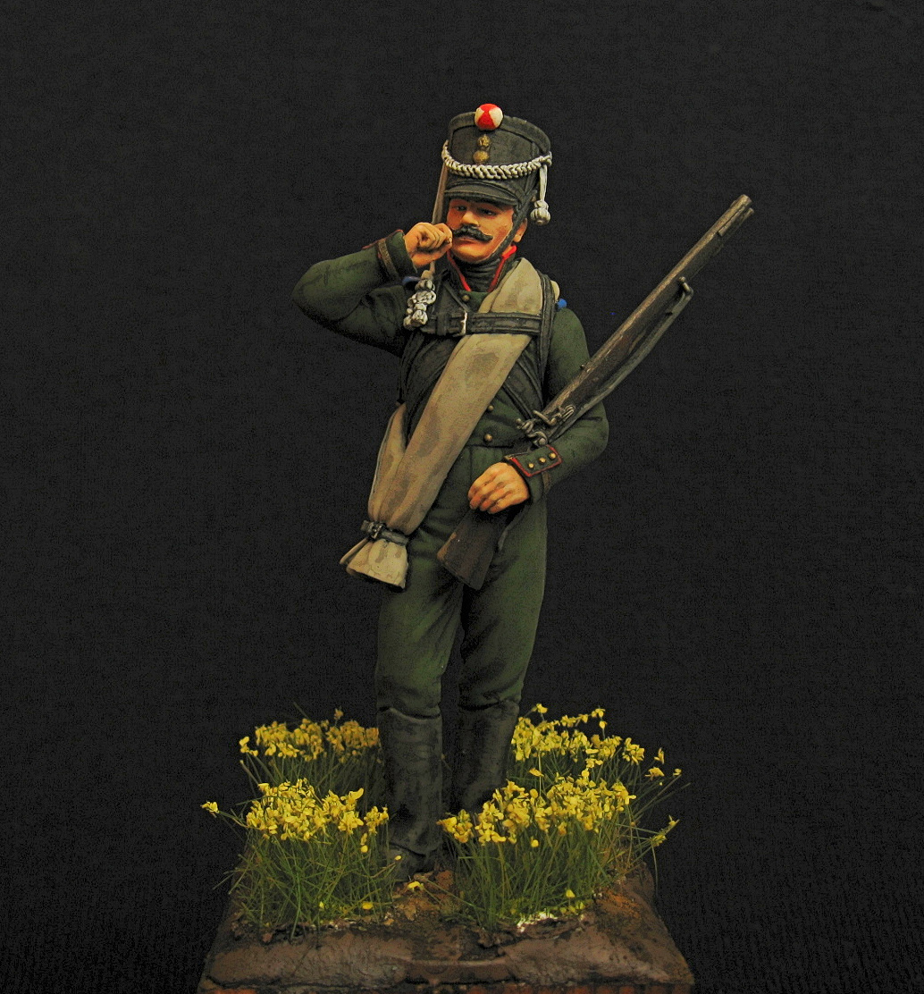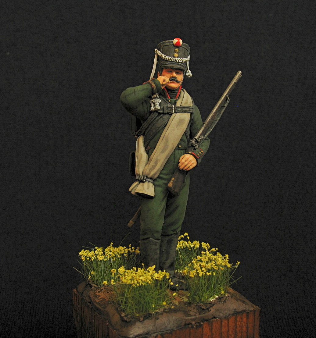 Здравствуйте. Первая фигурка в масштабе 75 мм. Аванпост. Представлен унтер-офицер егерьской роты. Акрил, эмаль.