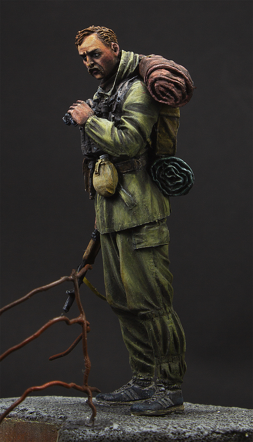 Все очень классно! Очень! Я точно так расписать не смогу!Но согласен с вышесказанным, нет вот той атмосферы сталкера.Такое ощущение ,что фигурку спецназа ГРУ вы поместили во вселенную сталкера. Может дело в экипировке? Повторюсь исполнение класс!