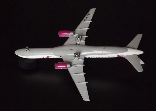 Скажу сразу, что это заказная супербюджетная модель, поэтому, исключительно – искаропка, без заморочек… От себя пришлось добавить только БАНО из прозрачного литника, ножевые антенны от А-320 Звезды, дождевые лотки из литника, фары носовой стойки шасси из страз.
