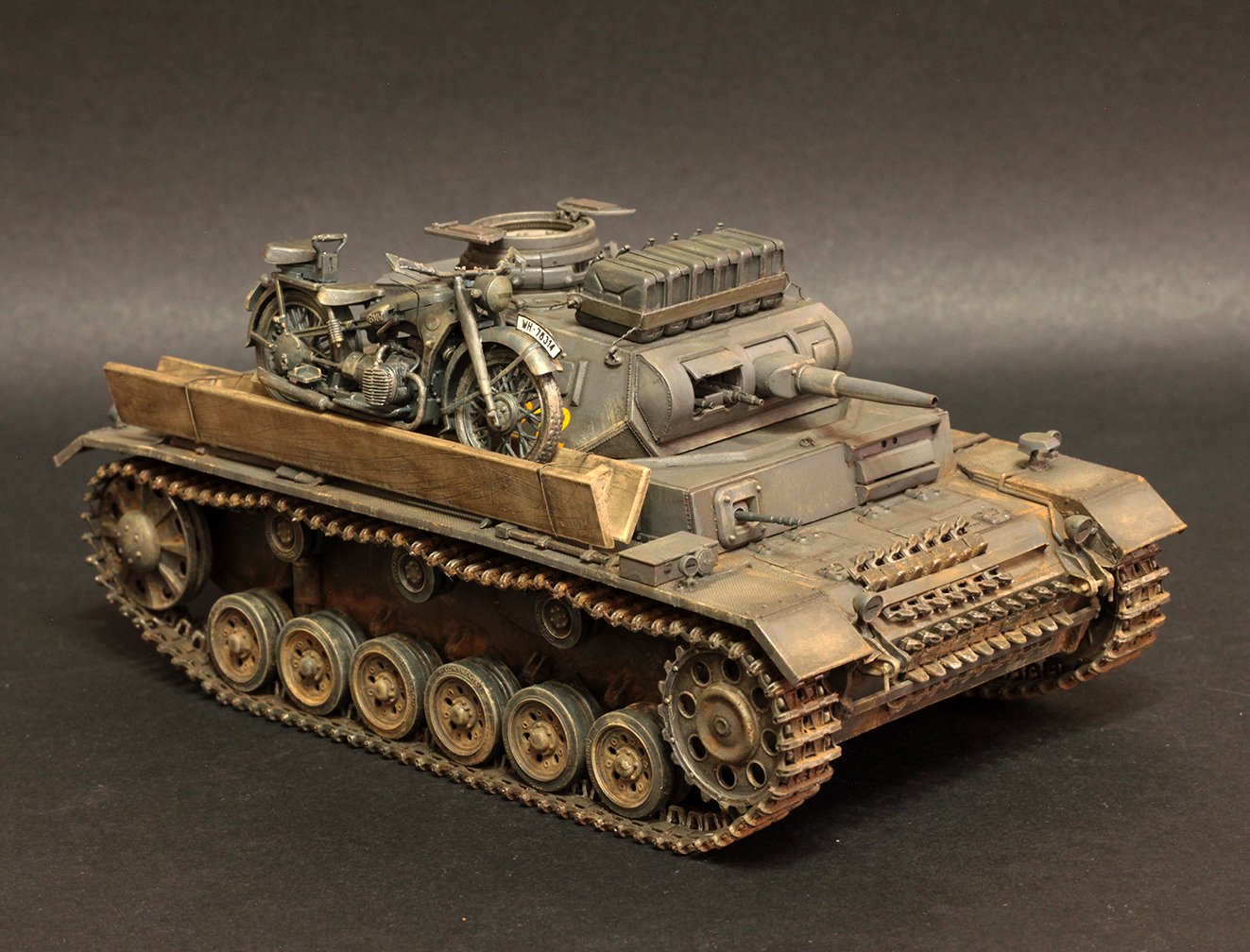 Хорошая работа! Но вот мотоцикл надо как то цветом выделить, а то он практически одного цвета с бронёй...