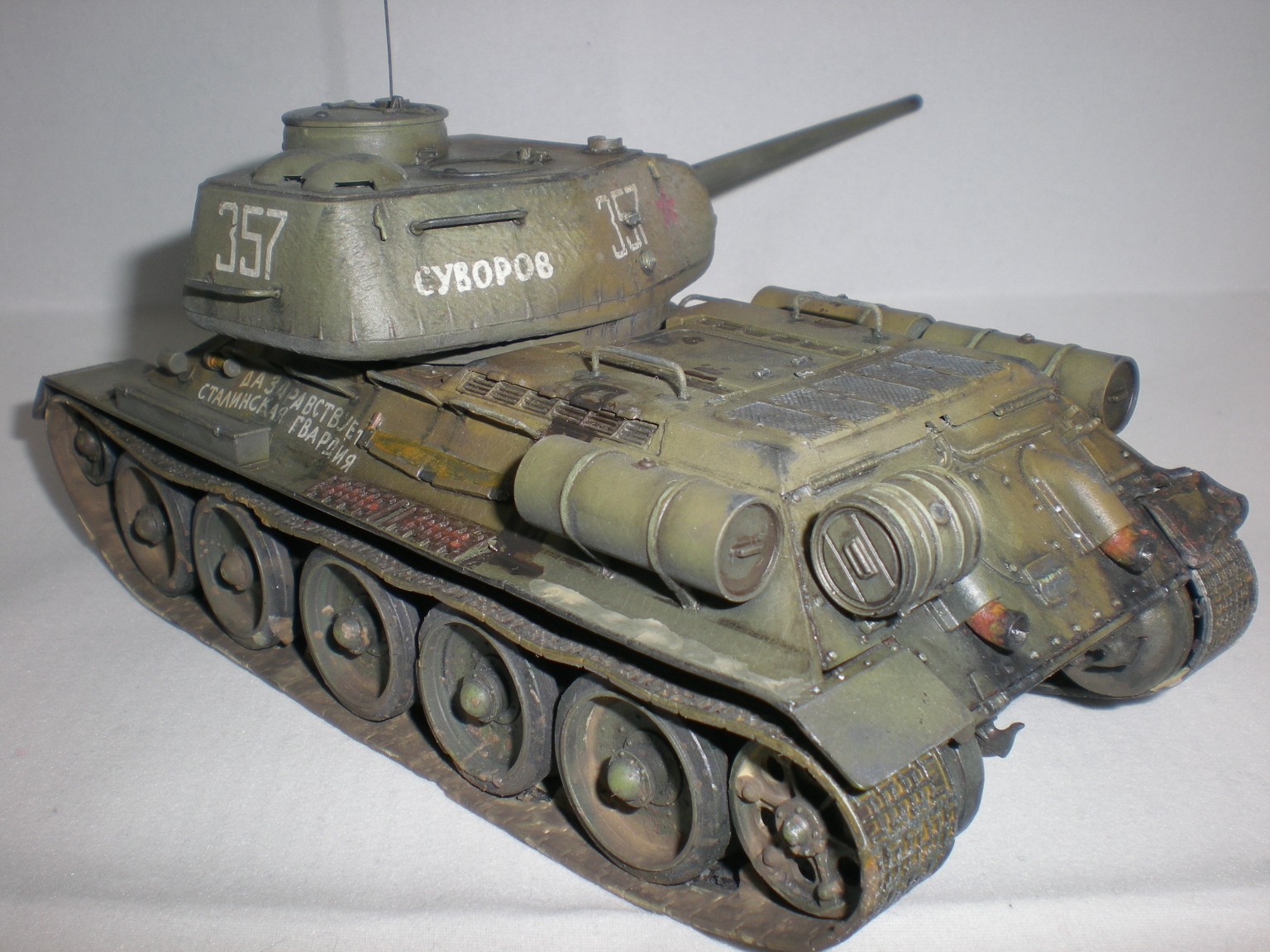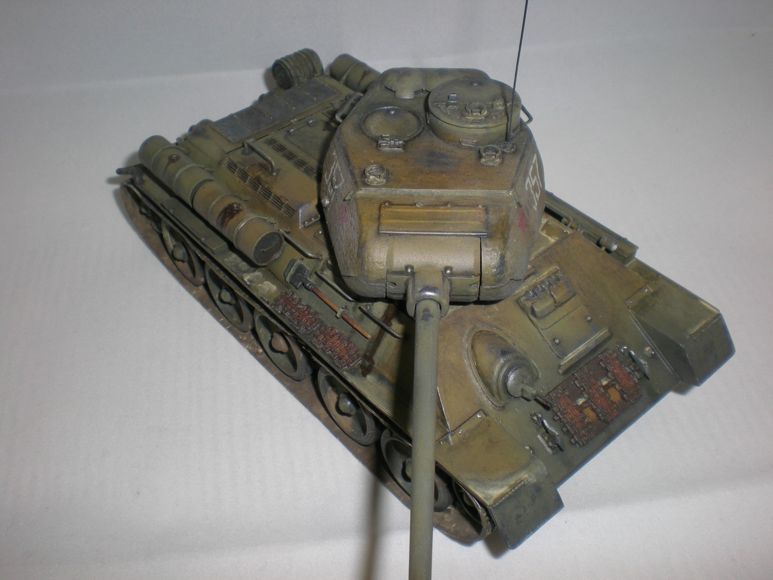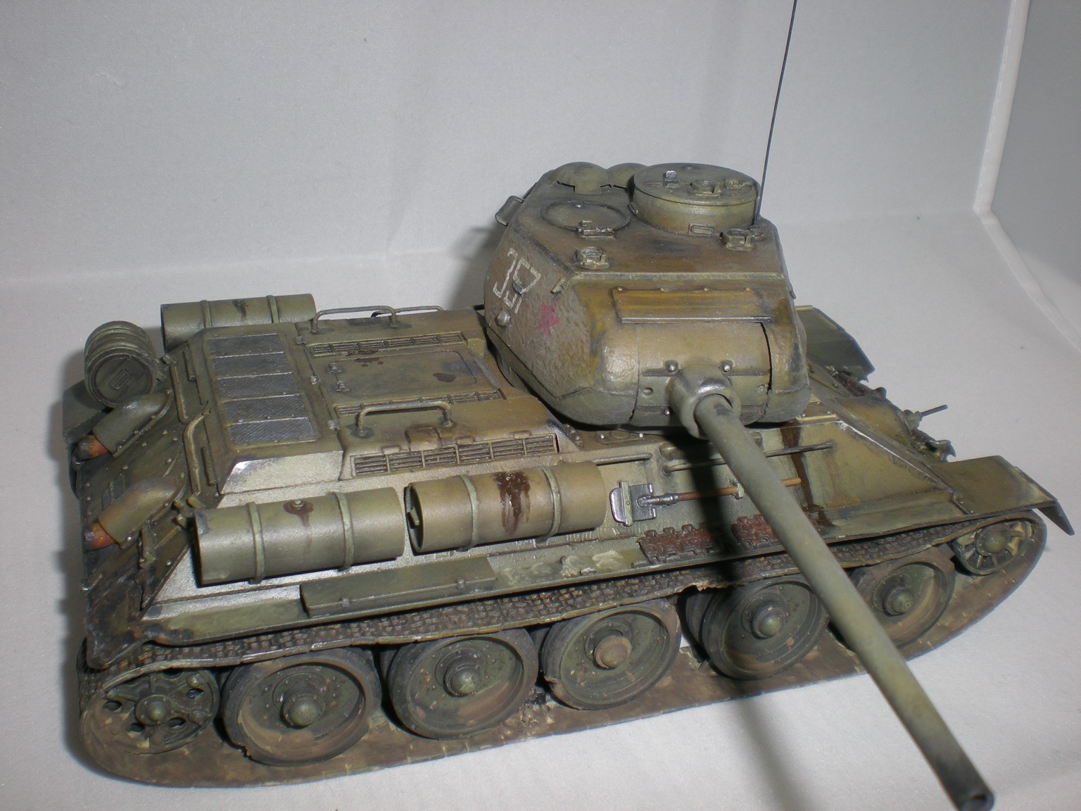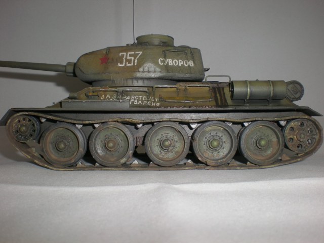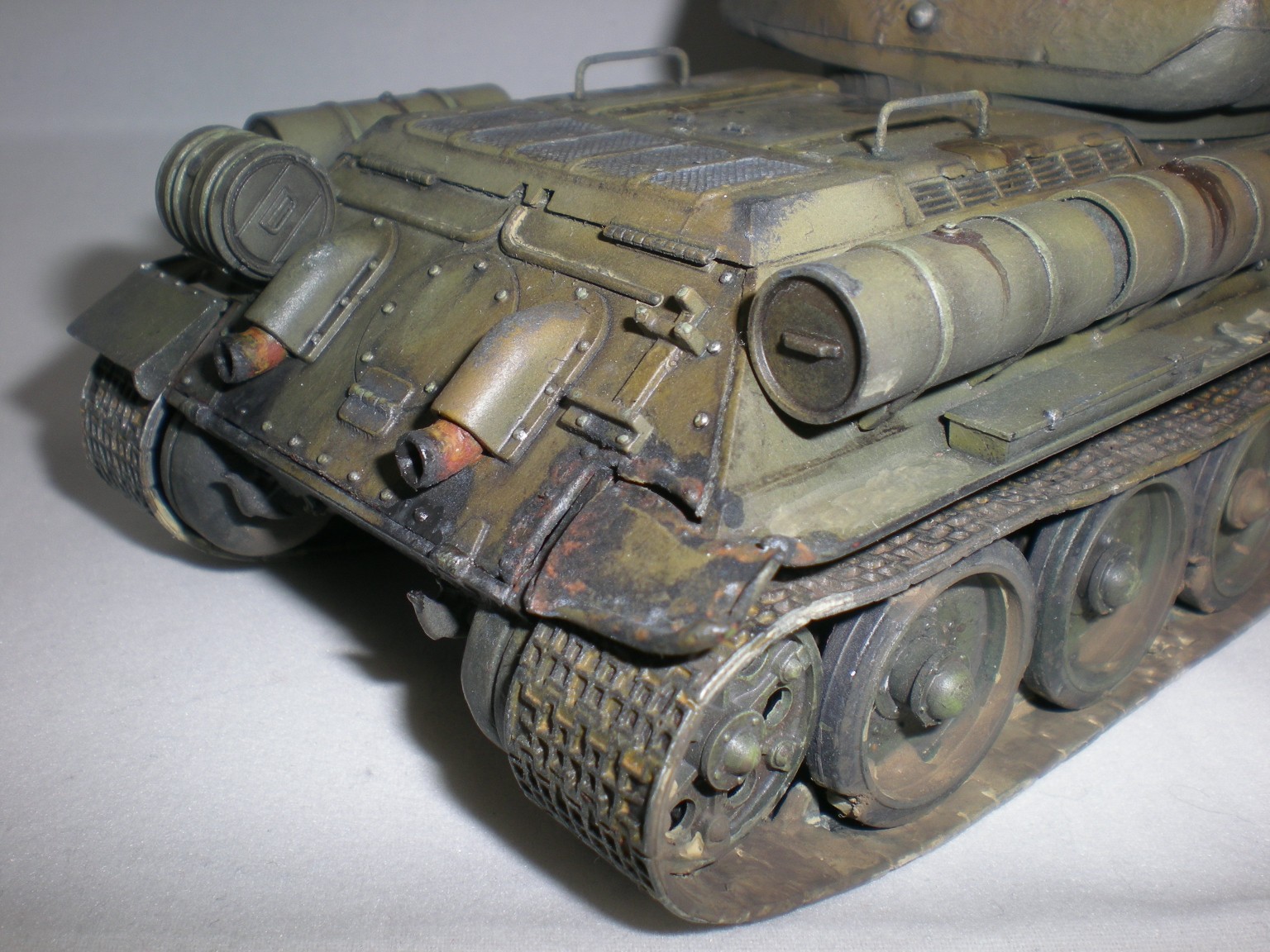Это была очередная практика...2ая или 3яя. Сейчас, конечно вижу убогость траков. Ждёт своей очереди ещё одна собранная 34ка и уже прикуплены к ней траки.
