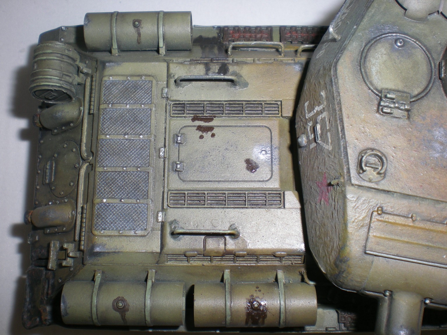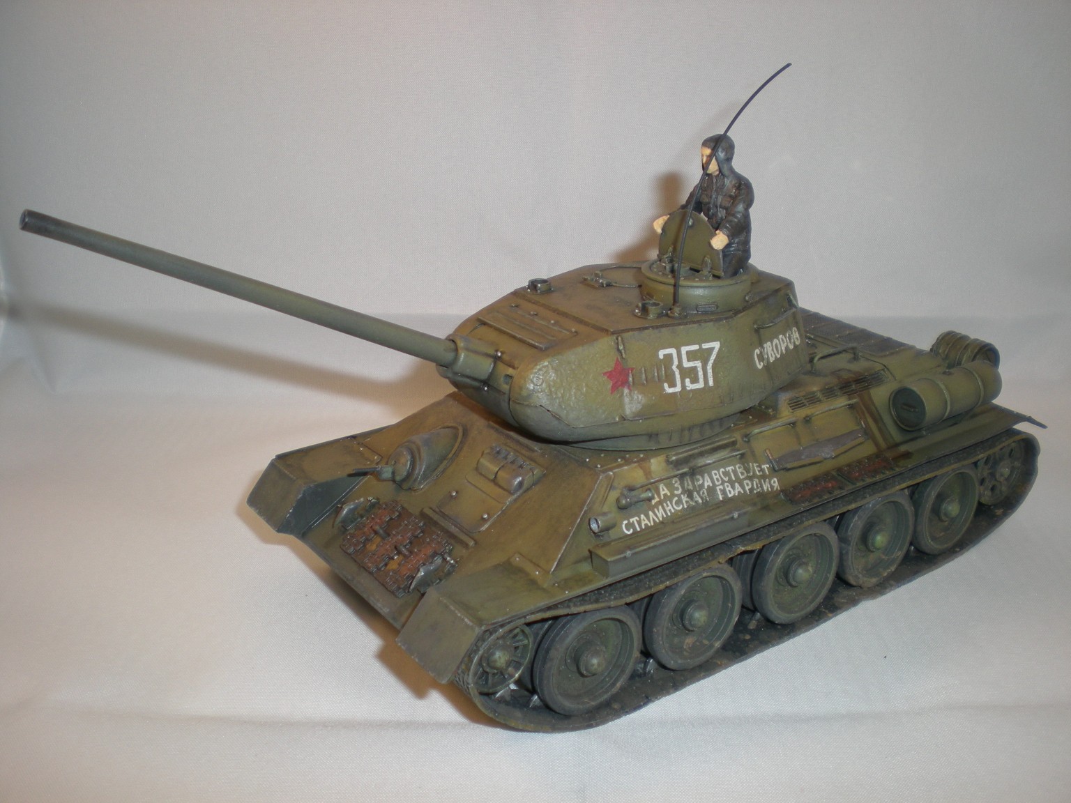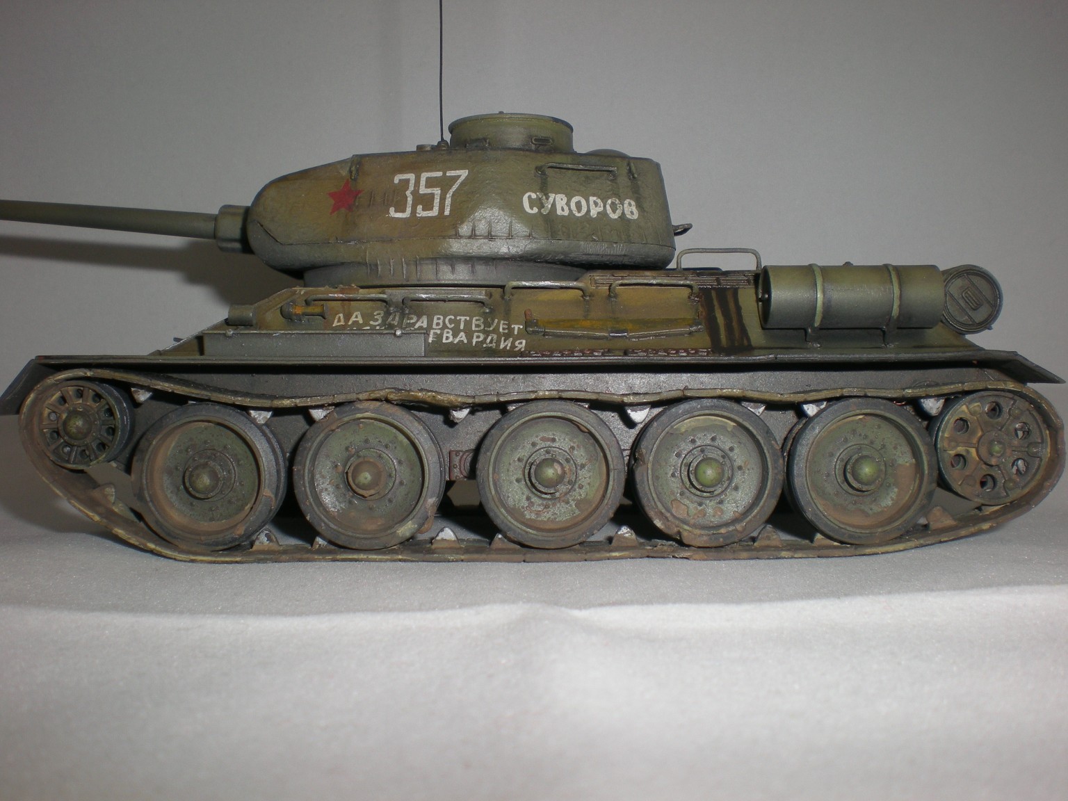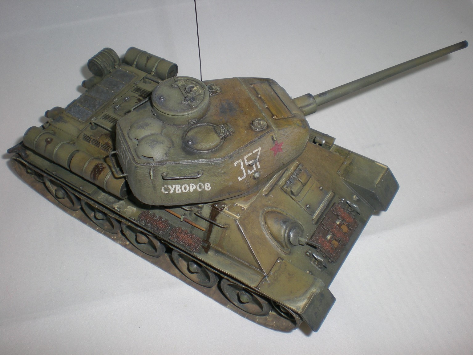 Это была очередная практика...2ая или 3яя. Сейчас, конечно вижу убогость траков. Ждёт своей очереди ещё одна собранная 34ка и уже прикуплены к ней траки.