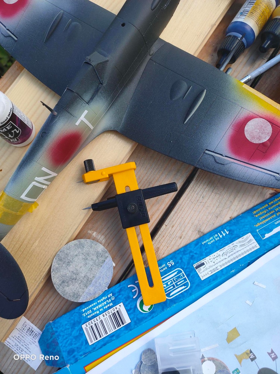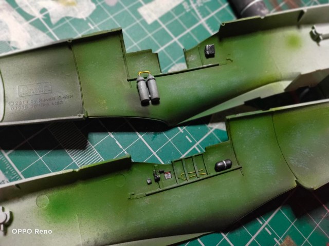 Общее впечатление не однозначное. Не понятно, зачем такие сложности с нанесением кокард по трафарету? У настоящих они накрашивались поверх камуфляжных пятен. И если сначала задуть синим, а потом красным, трафаретов меньше и соосность соблюсти легче. Кстати о камуфляжных пятнах, что то они слишком по мотивам. Стойки шасси родные в наборе только на выброс, так что за победу над ними однозначный плюс. Другие замечания уже высказали.