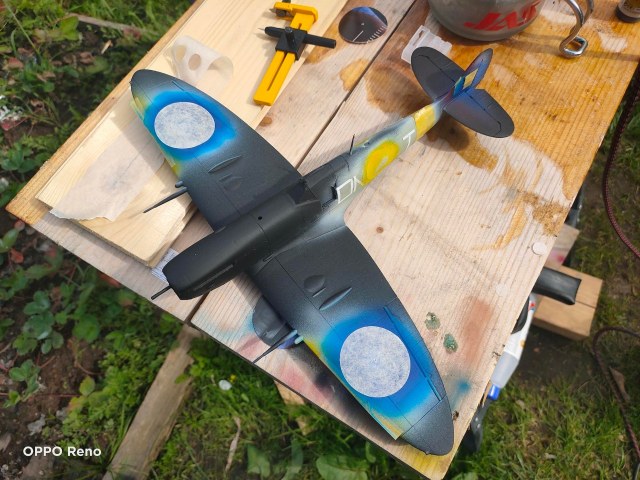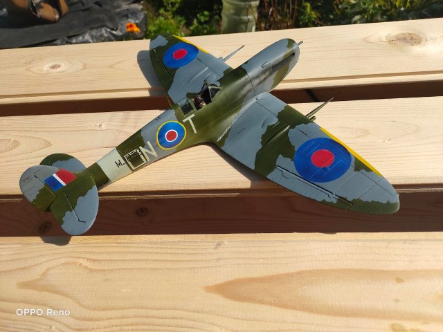 Сложно сделать выводы по пяти фотографиям общего плана и двум фотографиям крупного плана. Что сразу бросилось в глаза, и что уже отметили выше - фантазийные границы камуфляжа, что для Спитфайра нонсенс.