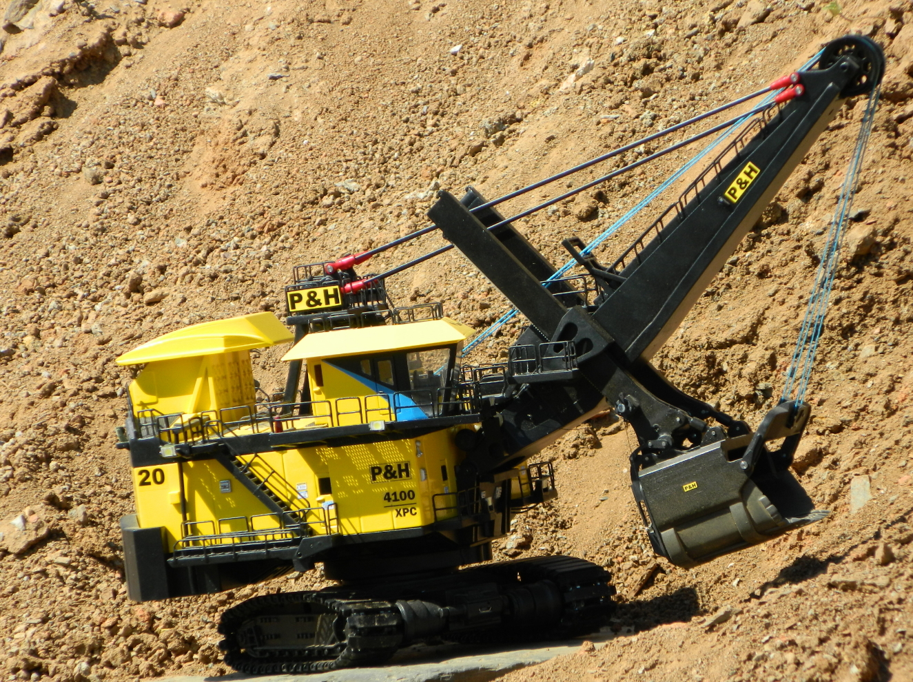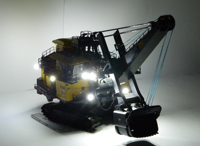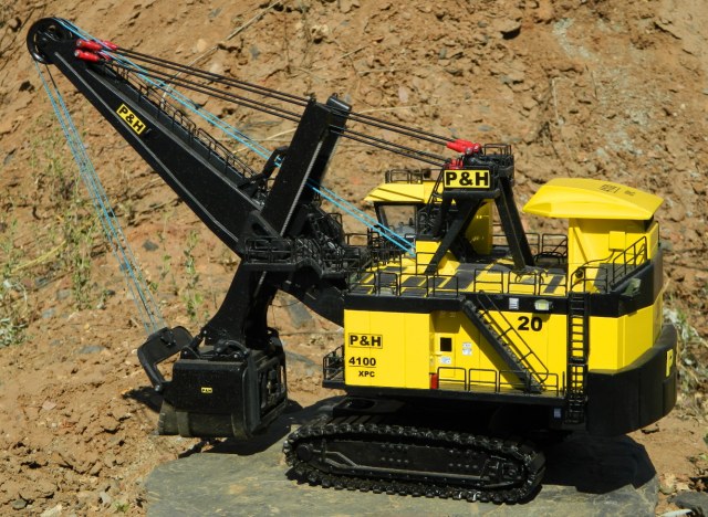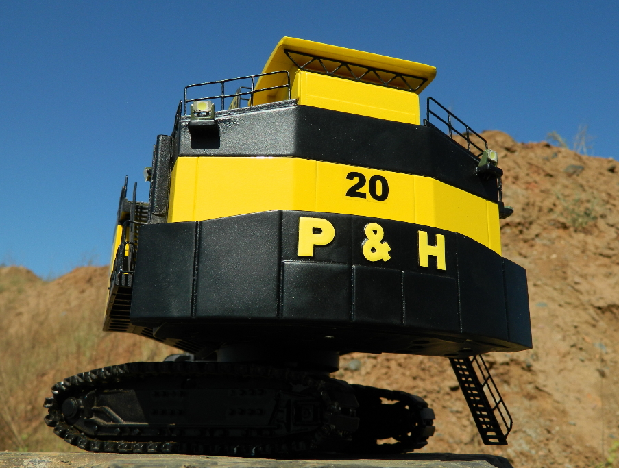 Модель довольно точно скопирована внешне, материал было найти очень трудно , а увидеть модель данного экскаватора не представлялось возможным. В США можно купить такую модель, только заводскую.