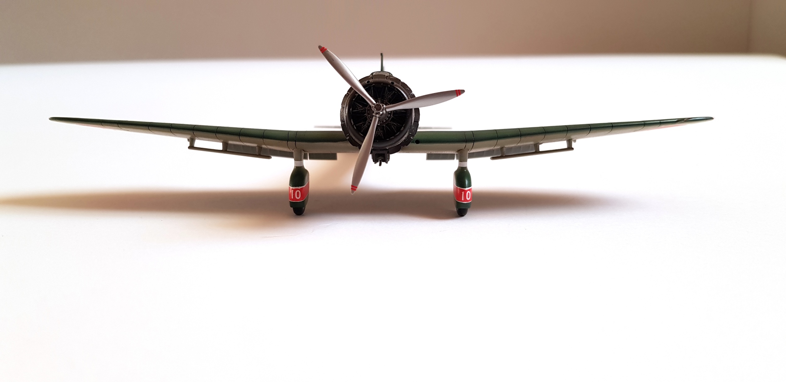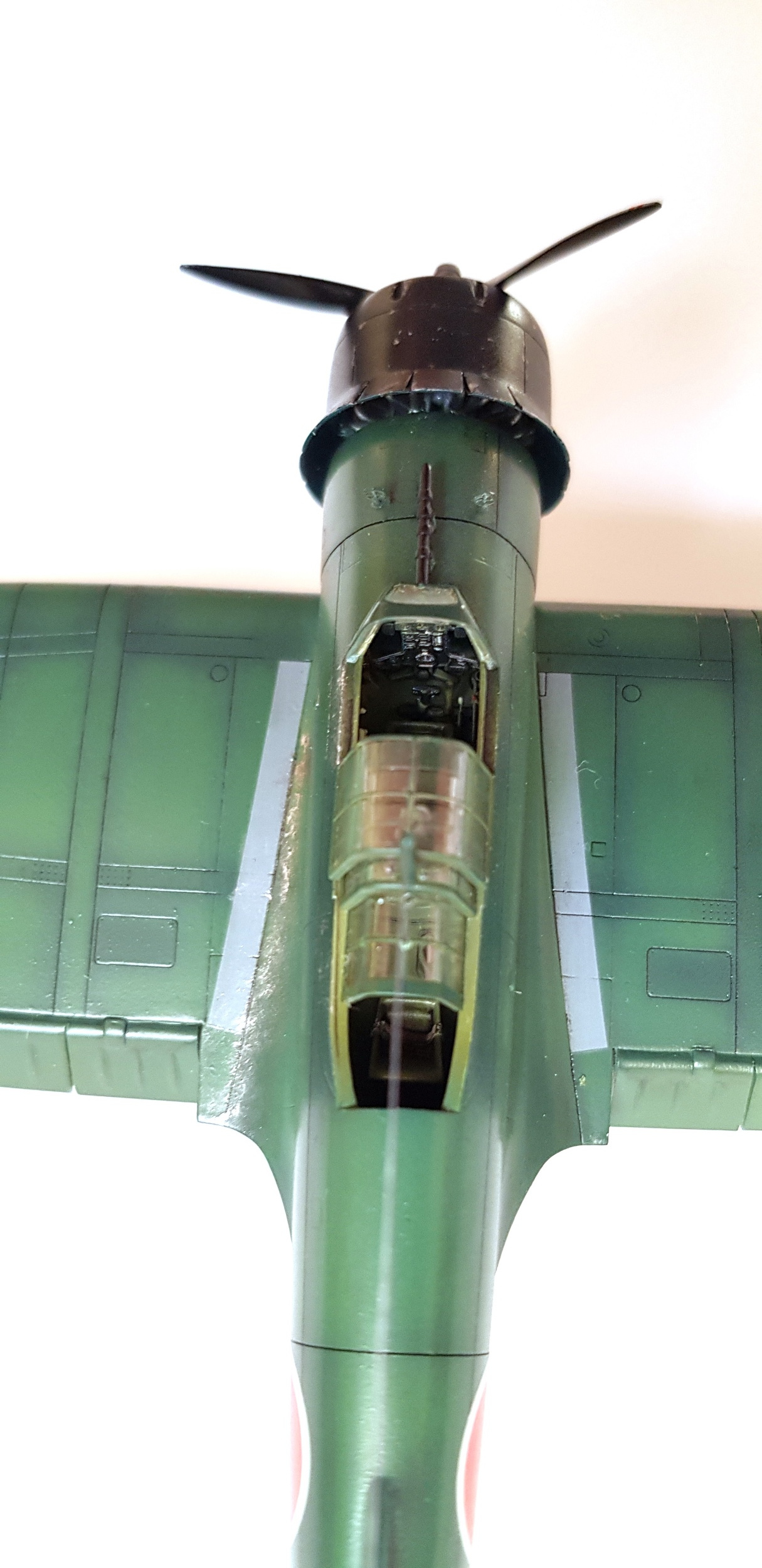 С глянцем возможно, но я уже тоже озвучивал причину... не стану повторятся. А прешейдинг агрессивным не считаю, это моё мнение как и работа, я вижу это так как и фотографии в интернете и множество статей на этот счёт что тон не однозначный и реальный самолёт тоже имел свойства к изменению характера поверхности. Посмотрите листы обшивок и статьи от японских специалистов на этот счёт. Ранние машины за исключением накадзимы, грунтовали в грасный, красили в серый после чего тот давал кремовый оттенок похожий на немецкий рлм2, потом машины перебрасывались на острова, как этот борт и в полевых условиях красились в зелёный, это не современное производство и желовек с краскопультом идеально слой не положит, по логике и технике, уделив внимание больше краям и швам. Я не стану спорить, напишу раз, это моё мнение... мы люди творческие, и мне нравится моя работа которая чувствуется оживлённой а не залитой в 1-2 цвета без тона и ощущения метала как и пламени под капотом! Спасибо за критику