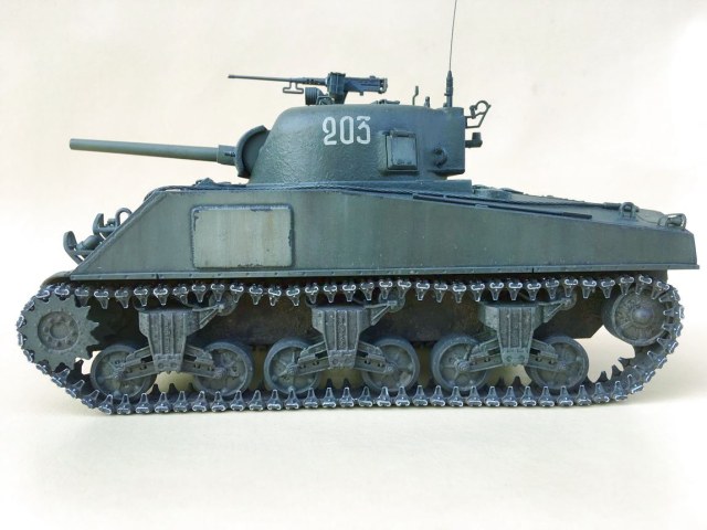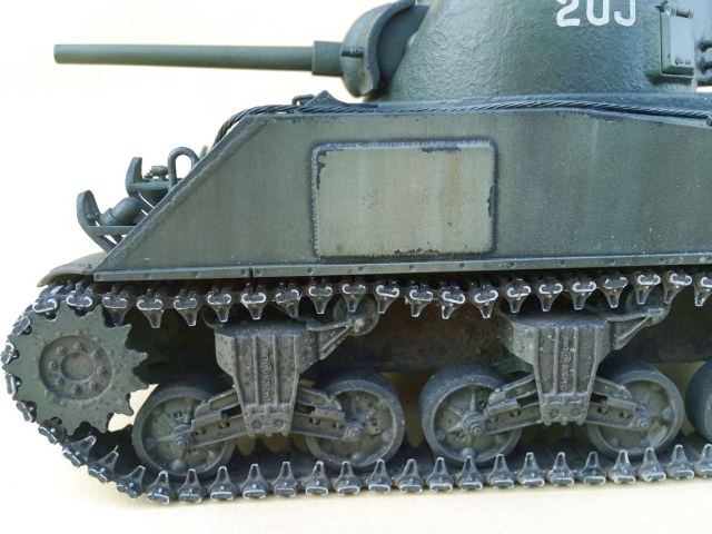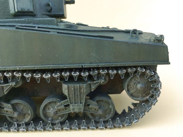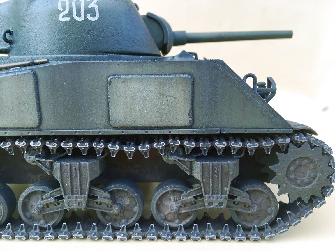 Вот насчет гусениц - слишком сильно они висят, так и напрашивается вынуть 1-2 звена. Плюс, пару Шерманов назад меня научили фокусу с натяжением ленты при помощи оси ленивца - заклевать оси только когда натянул ленты и они смотрятся как надо.