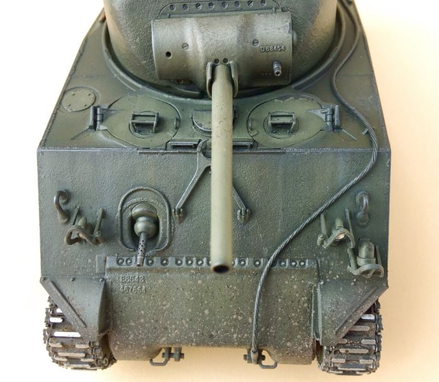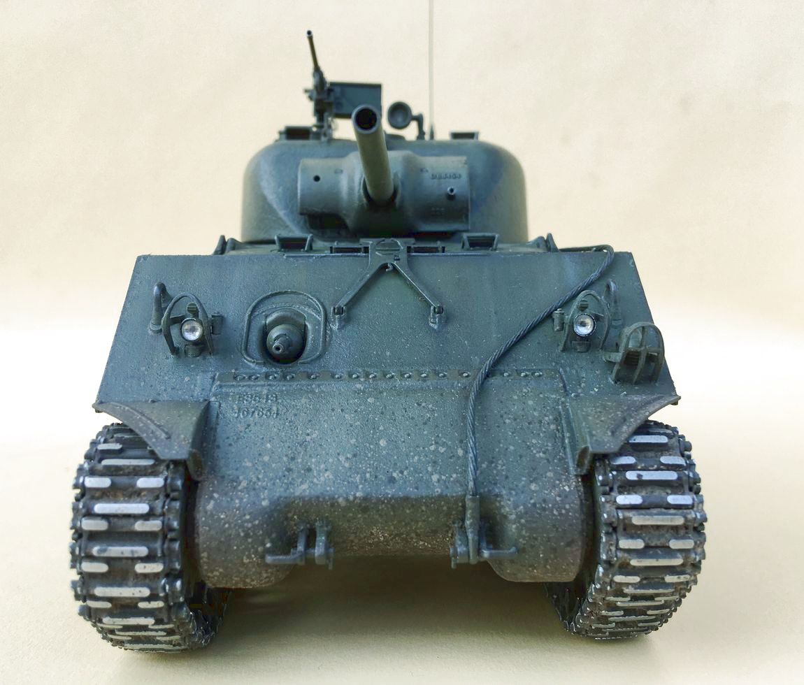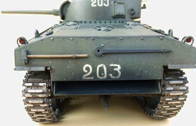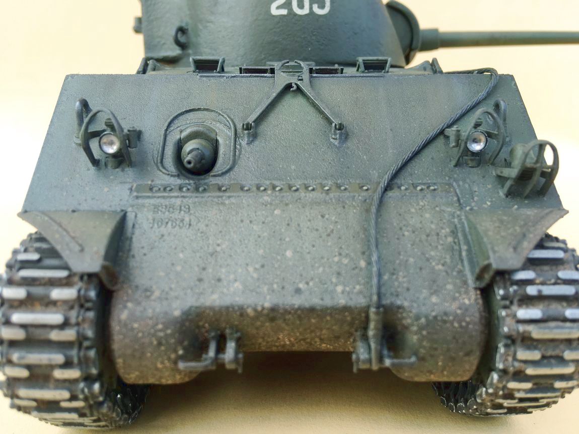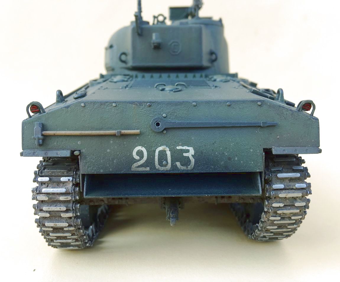 Пару траков справа и слева убирайте, на Шерманах не было провиса, меняйте задние фонари или лучше ставьте на них травленые накладки, ограждение фар и сигнала меняйте на травло. Не реклама, но Микродизайн к нему реально родной, причём хорошо подошло их травло и к тамиевским Шерманам. В наборе полный фарш, тогда как нечто аналочичное от Абера стоит в 2,5-3 раза дороже.