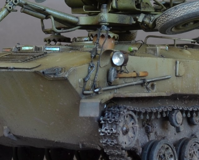 - В сборке особых проблем не было.При постройке использовал травление Эдуард.Траки МастерКлаб.От себя добавил сварные швы из литника.Троса из проволки.Фары Эльф.