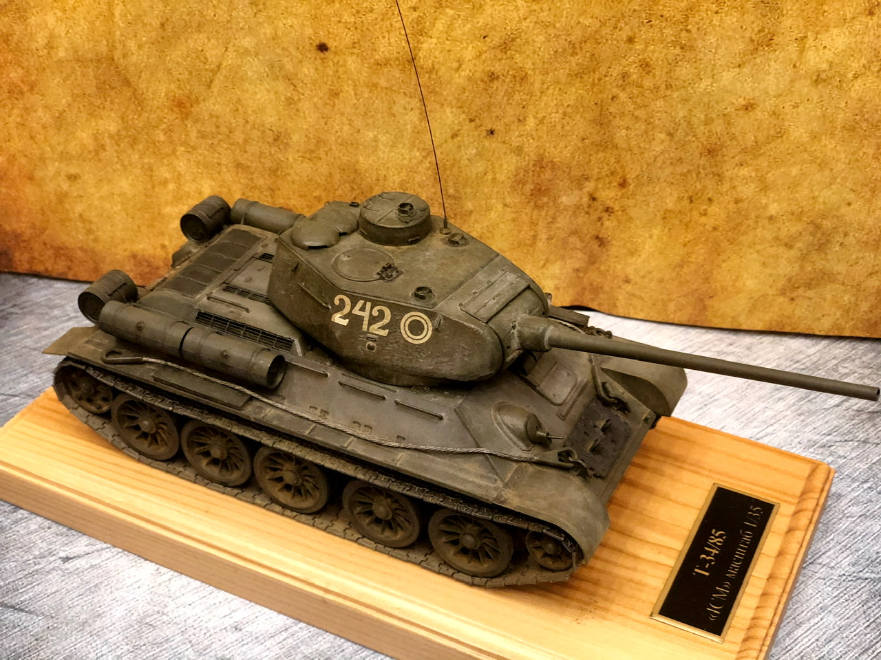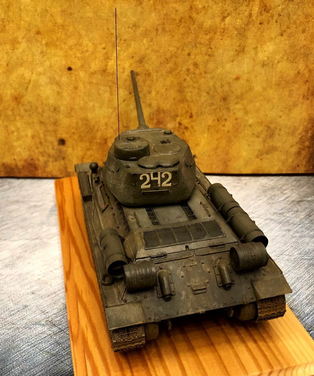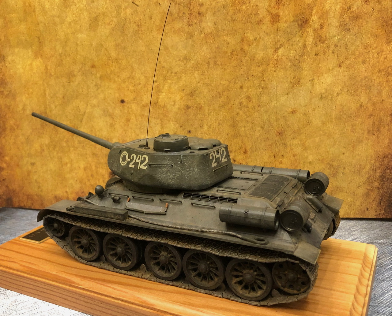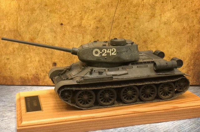В общем, хорошая модель получилась. Но куда-то подевались литьевые и сварные швы на башне. А вот подставка и фон совсем к модели не подошли, ИМХО.