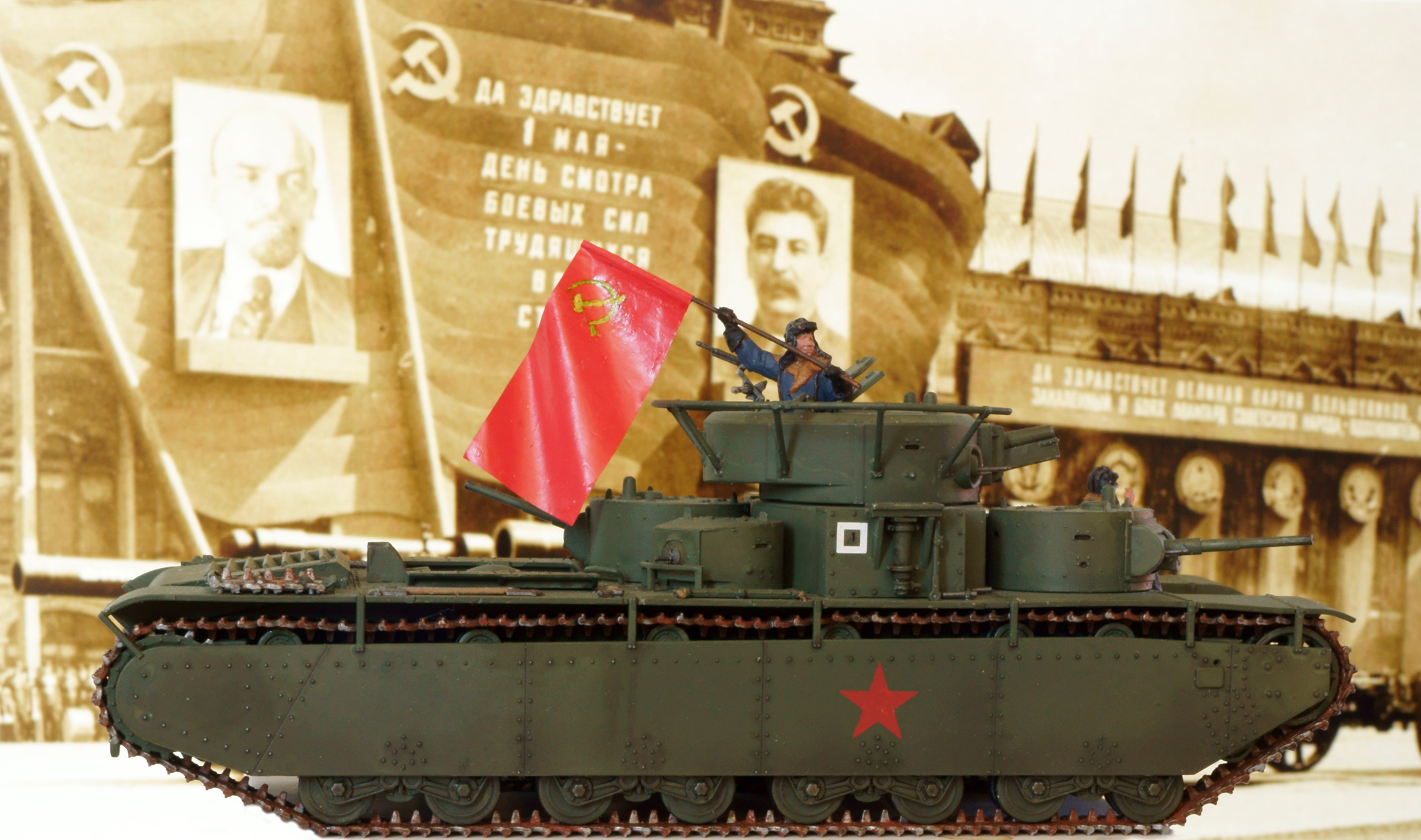 в плане реалистичности согласен, но он так от даже на коробке звезды нарисован, поэтому не интересно)) плюс флаг бы пришлось просто на палке закрепить. что тоже, конечно, реалистичней, но не хватает пафоса военного парада.