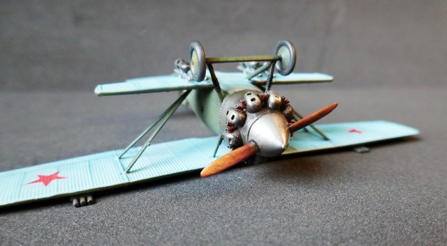 окраска очень даже понравилась, отмечу лопасти и смывку. жаль что декали не поискали, хотя бы даже на каропке в теме соответствующей. а что помешало выставить ровно верхнее крыло?