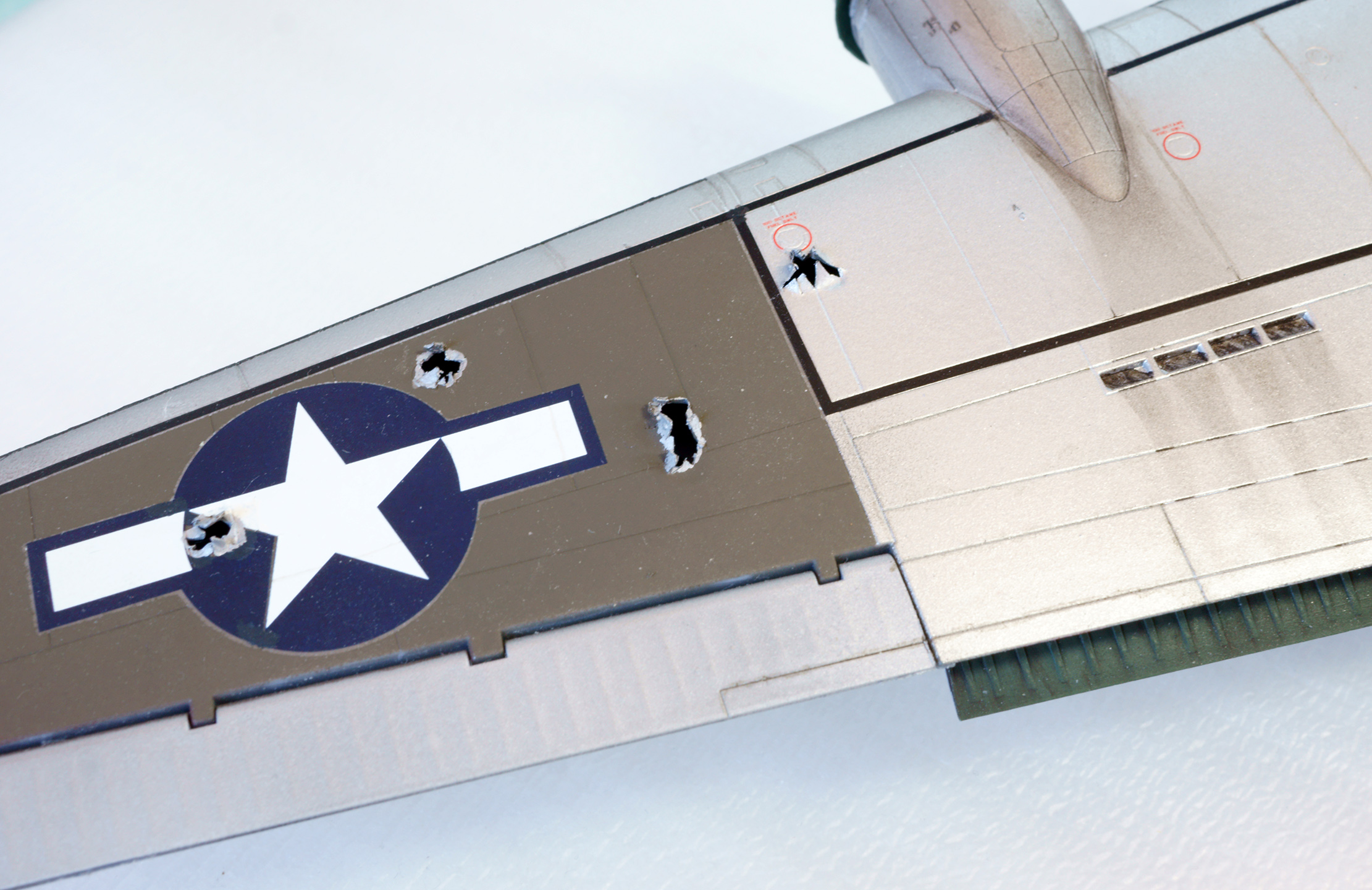 Я это все к тому, что интереснее смотрелось бы, возможно, если насверлить много дырок, сделать решето, ну вот как на фото в комментах. Вроде попал под огонь истребителя, они ведь и правда в первую очередь старались стрелков снять.