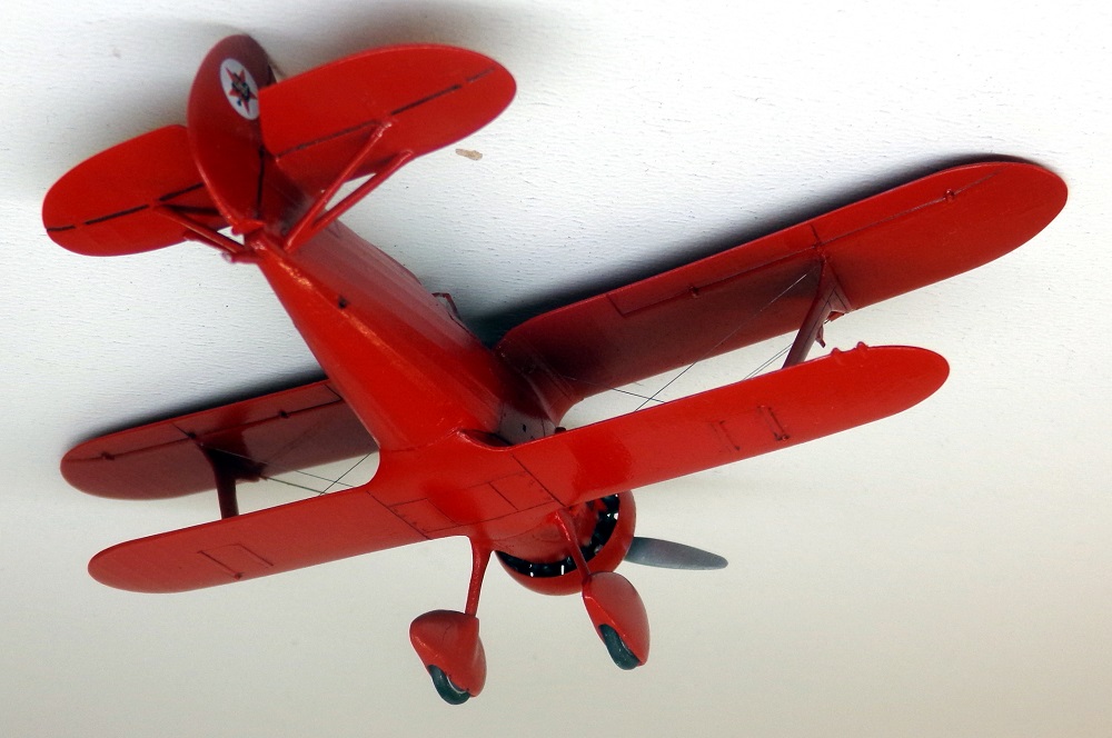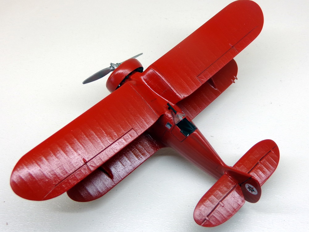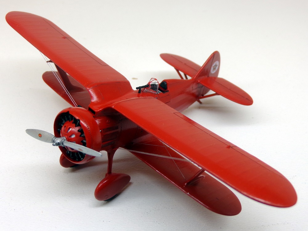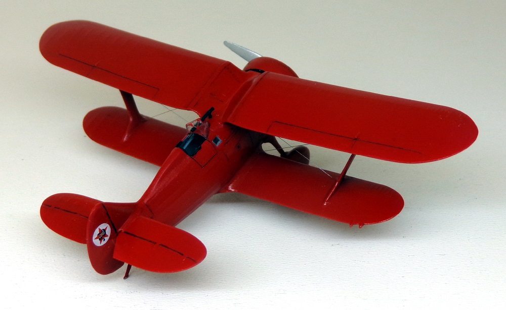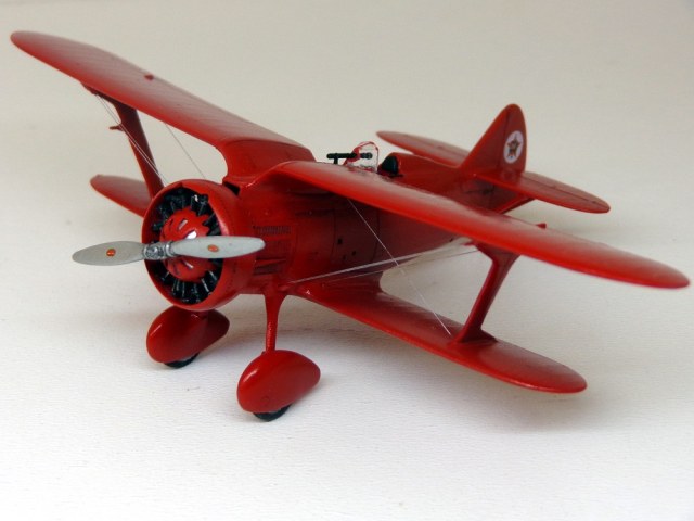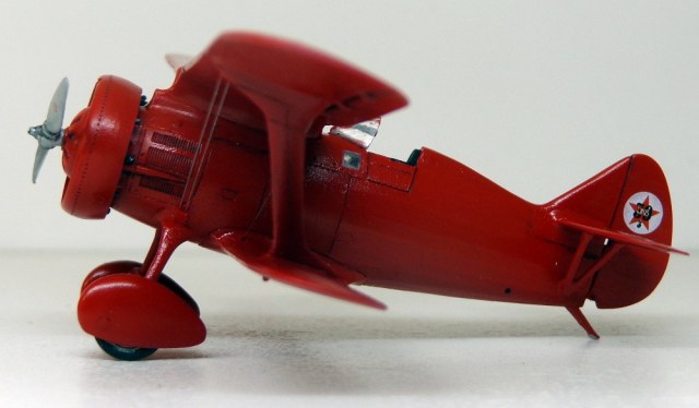 Поначалу хотелось прежде сделать "Чатос", дабы наконец "расставить все точки над "i", воспроизвести хоть один на свете республиканский И-15 в достоверном облике, с черными подкосами, стойкам шасси и проч. Но так как с изготовлением бипланов я не могу похвастать успехами, решил выбрать пока вариант попроще, да кроме того расширить мой "чкаловский уголок". Модель показалась легкой в сборке, на пару вечеров, но на самом деле всё как-то не очень складывалось. Кабина с каркасом не влезала внутрь, мотор с обтекателем не вставали как положено, стойки шасси пришлось утоньшать. Козырек выглядит переразмеренным и "сел" как-то неудачно, хотя я его подпиливал снизу, но видимо надо было больше. В общем вместо двух вечеров получилось недели две. Покрасил своей любимой нелюбимой тамиевской Х-7. Расчалки - леска 0,06мм. Материалов по самолету оказалосьь в избытке, сохранился и старый экземпляр "Крылышек" №2 за 1984 год, и "Полигоновский" альбом 1992-го года (фото прототипа как раз оттуда) и даже ещё масловская книжечка 2001 года. Во сколько всего, только делай!