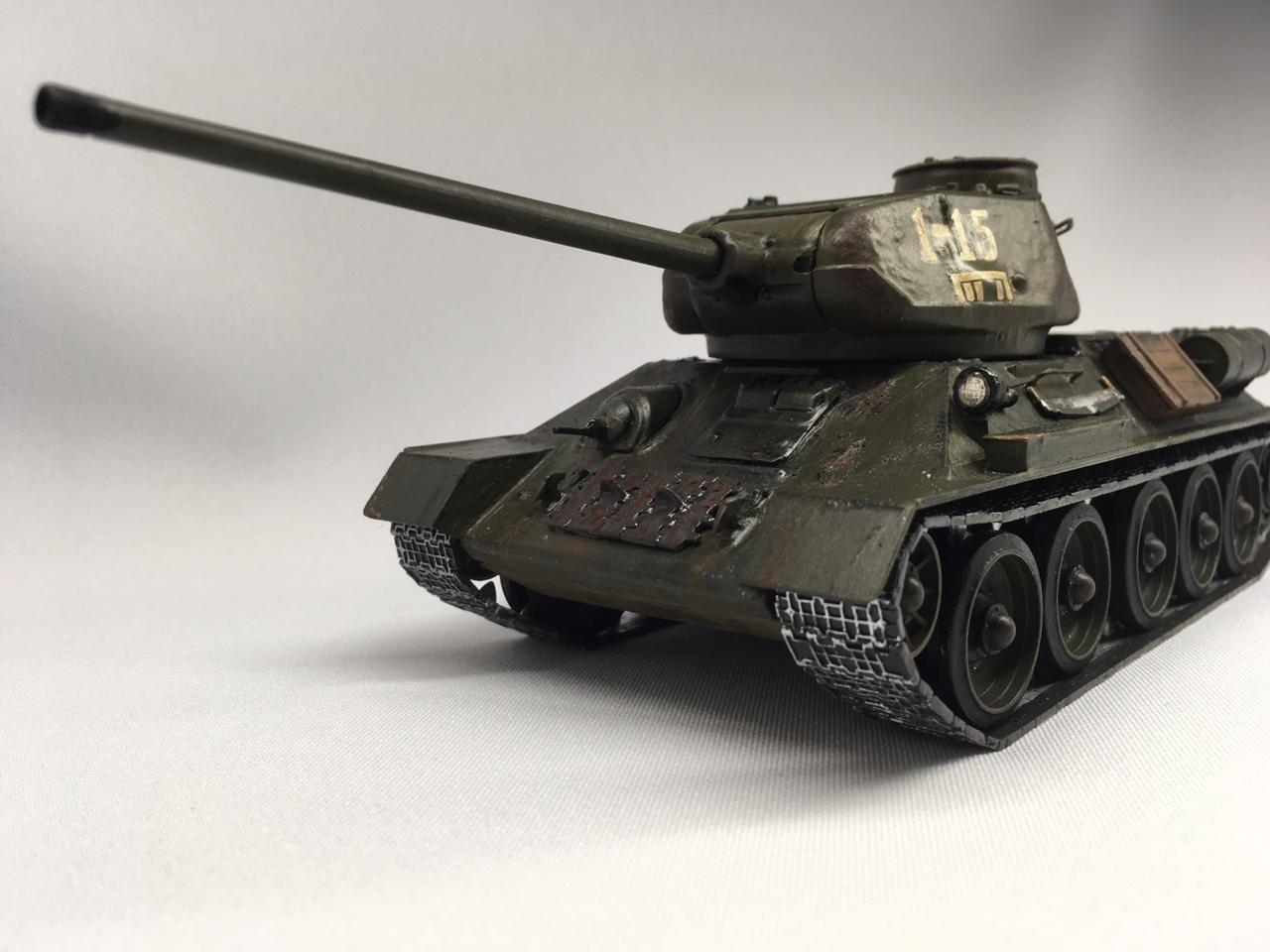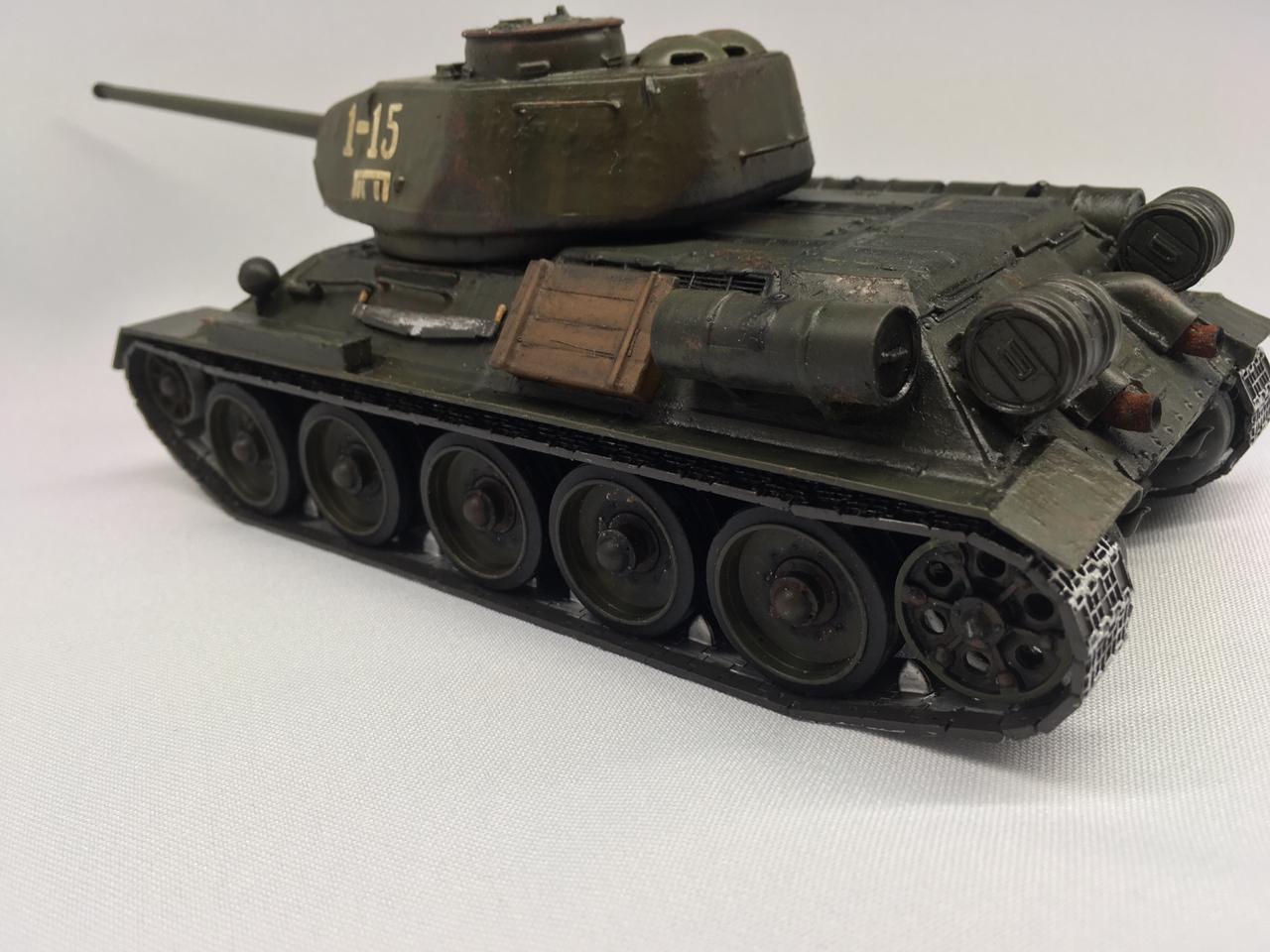 Здравствуйте! Представляю танк Т-34 от Звезды, решил дать ему вторую жизнь, так получилось что это он стал подопытной моделью,при первой покраске я впервые пробовал нанесение эффектов типа ржавчины и грязи и переборщил, получилось мягко сказать не очень (последние фото),и вот дошли руки его перекрасить и попробовать работать с маслом, ну еще поменял виниловые траки на траки от Макет. Так как пришлось смывать старую краску и эффекты покраска получилась с «косяками», потому что все полностью смыть не получилось,ну вот что вышло.