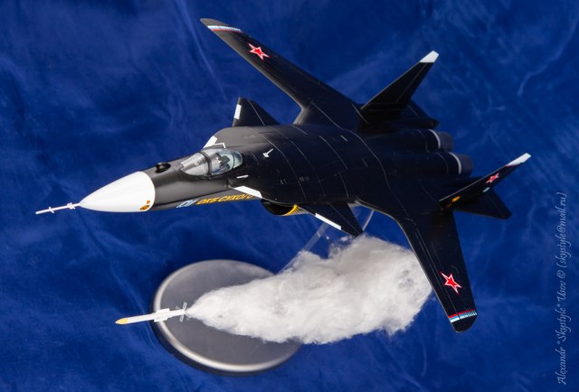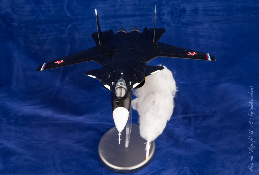 и лично мое мнение - ракету убрать. с ватой перебор и вылетать она из-под брюха должна, а не из-под крыла. но тогда и люк открытый надо... короче - ну ее нафик)) без нее - красивая украшалка на письменный стол.